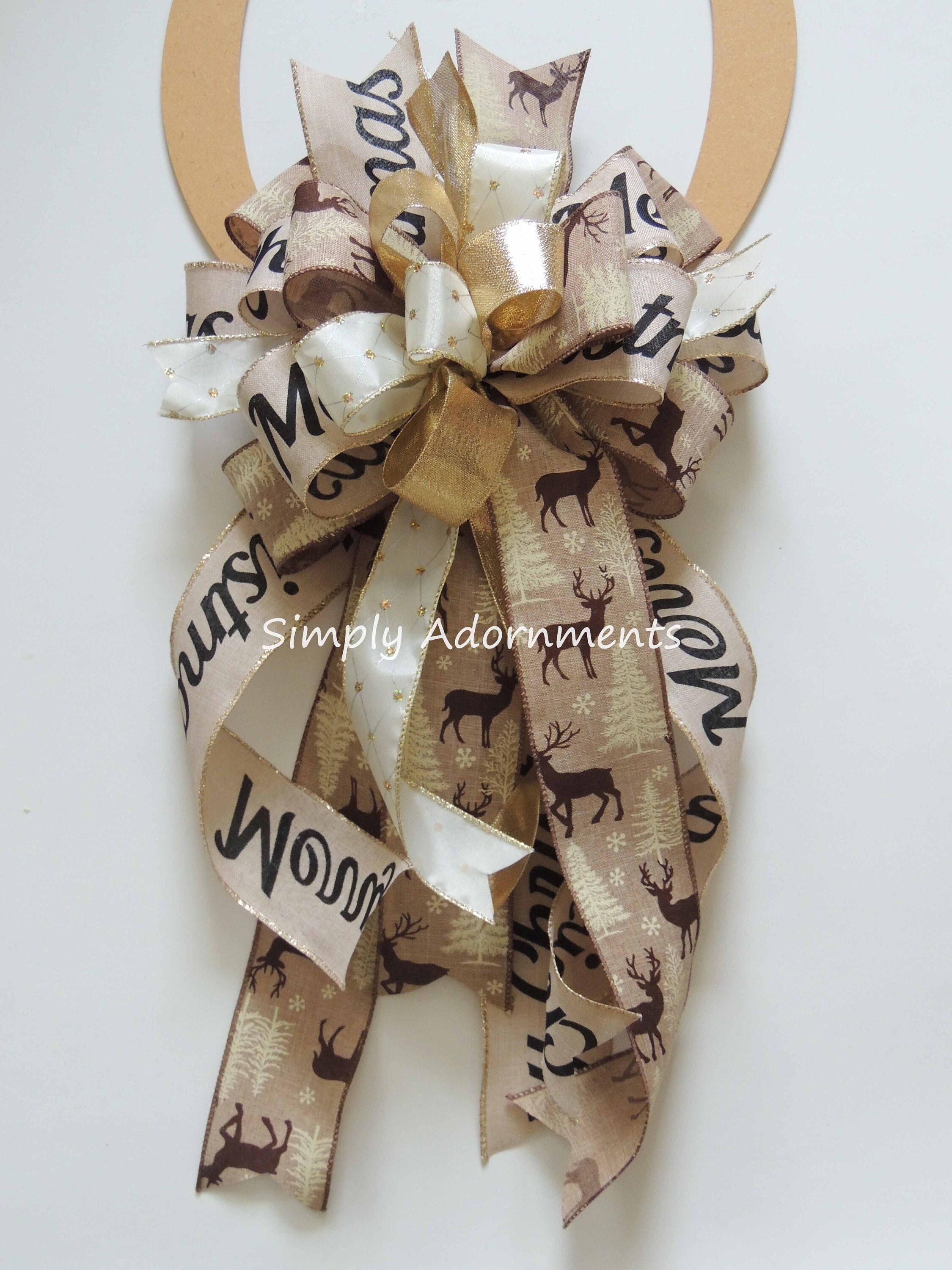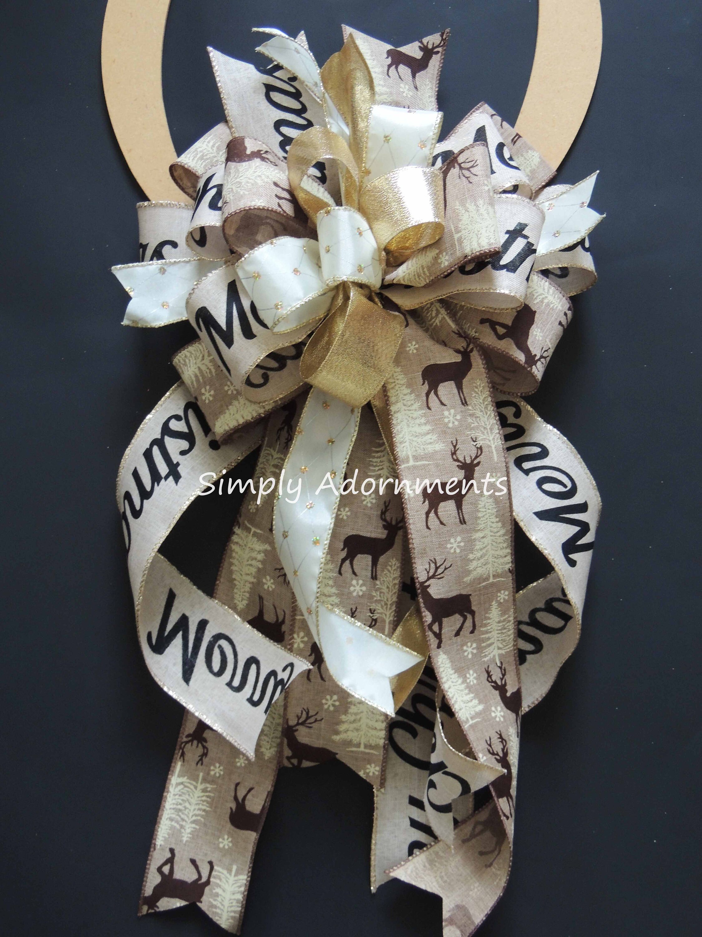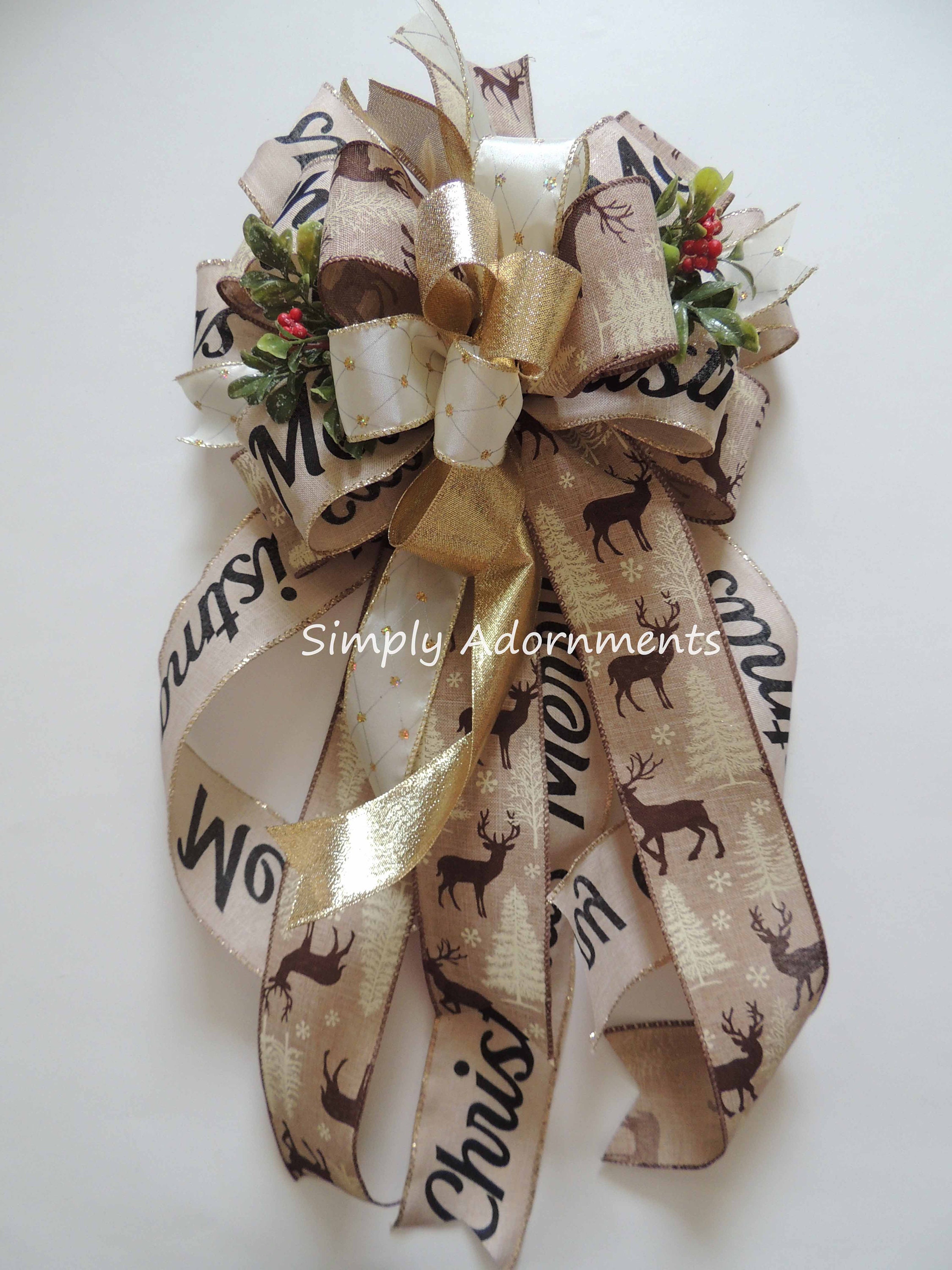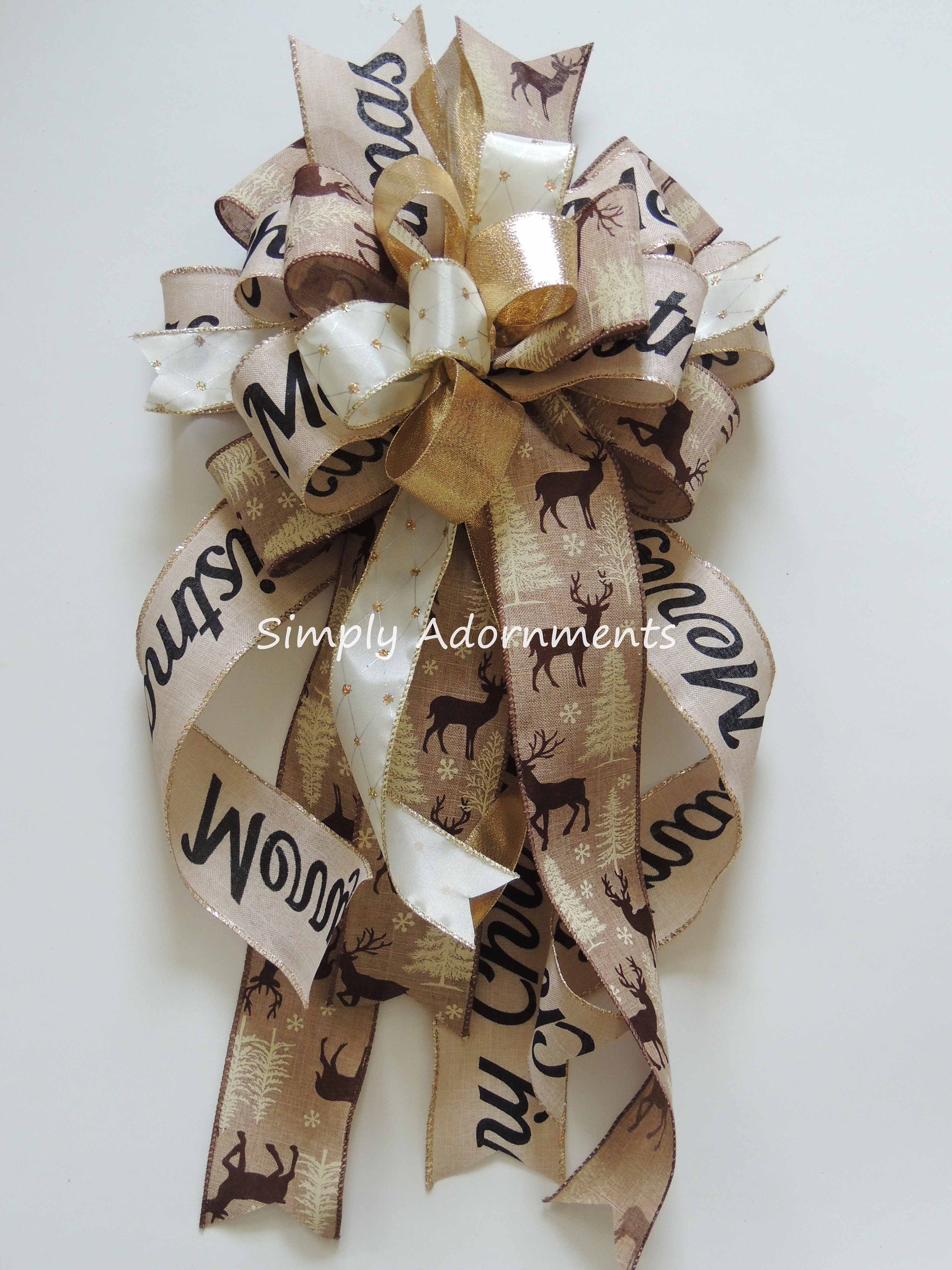 Farmhouse Christmas Bow, Farmhouse Christmas Scripts Bows, Christmas decorative bow, Reindeer Christmas Tree Topper, Rustic Reindeer Tree bow, Christmas Lantern Bow