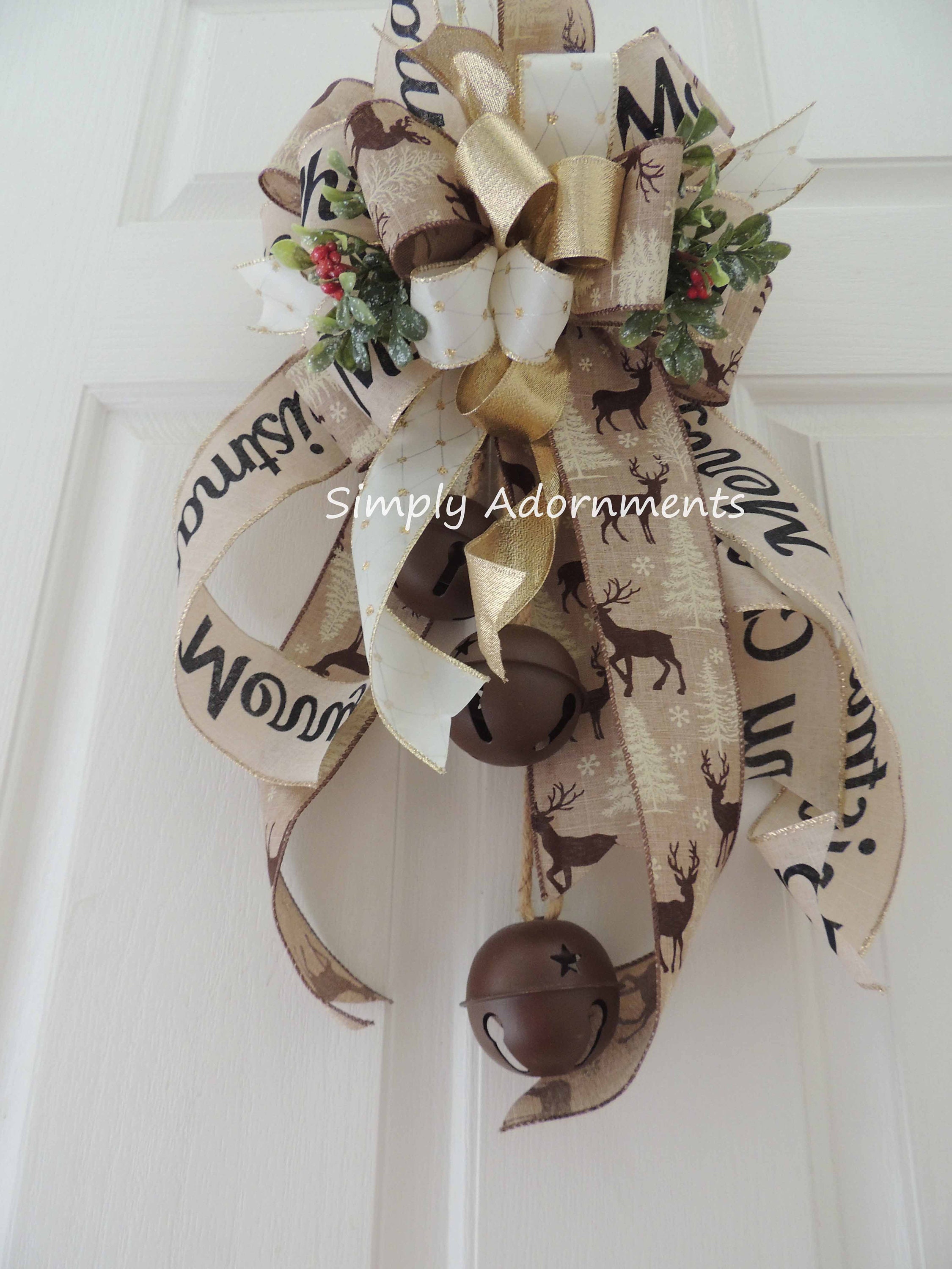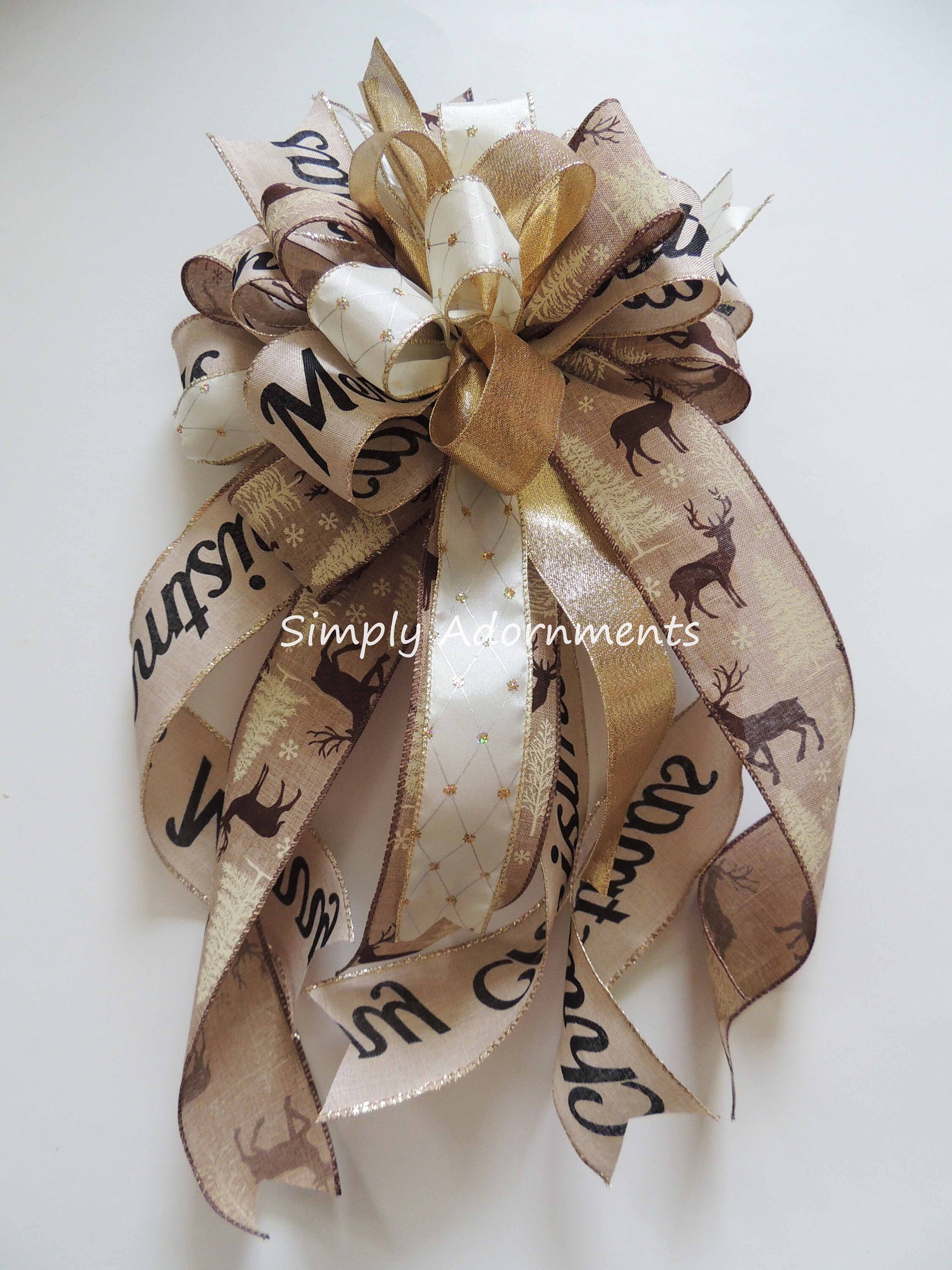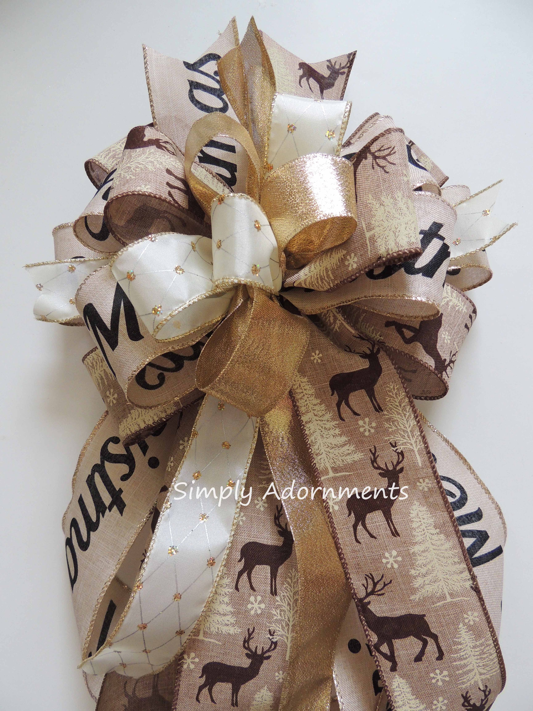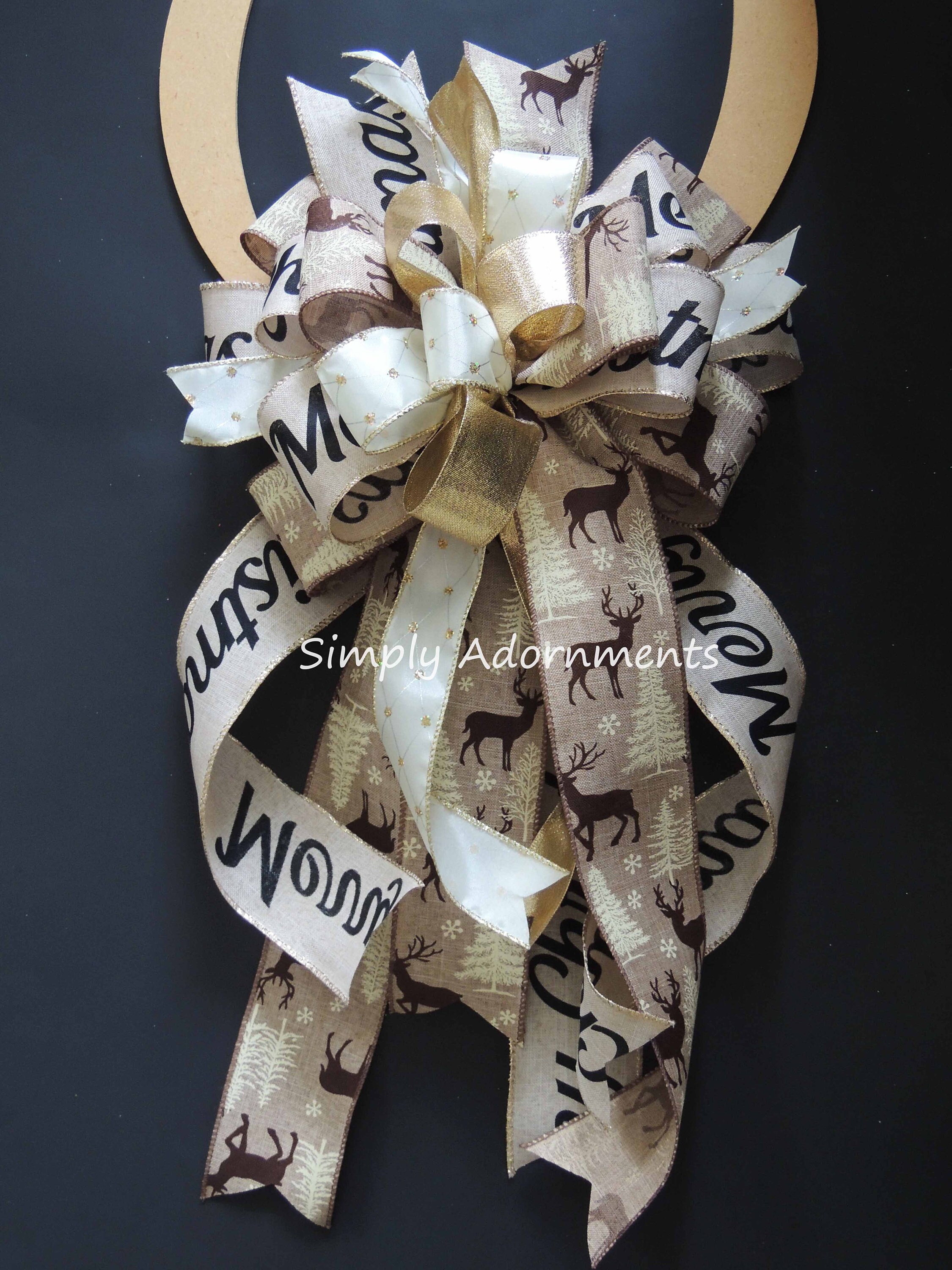 Farmhouse Christmas Bow, Farmhouse Christmas Scripts Bows, Christmas decorative bow, Reindeer Christmas Tree Topper, Rustic Reindeer Tree bow, Christmas Lantern Bow