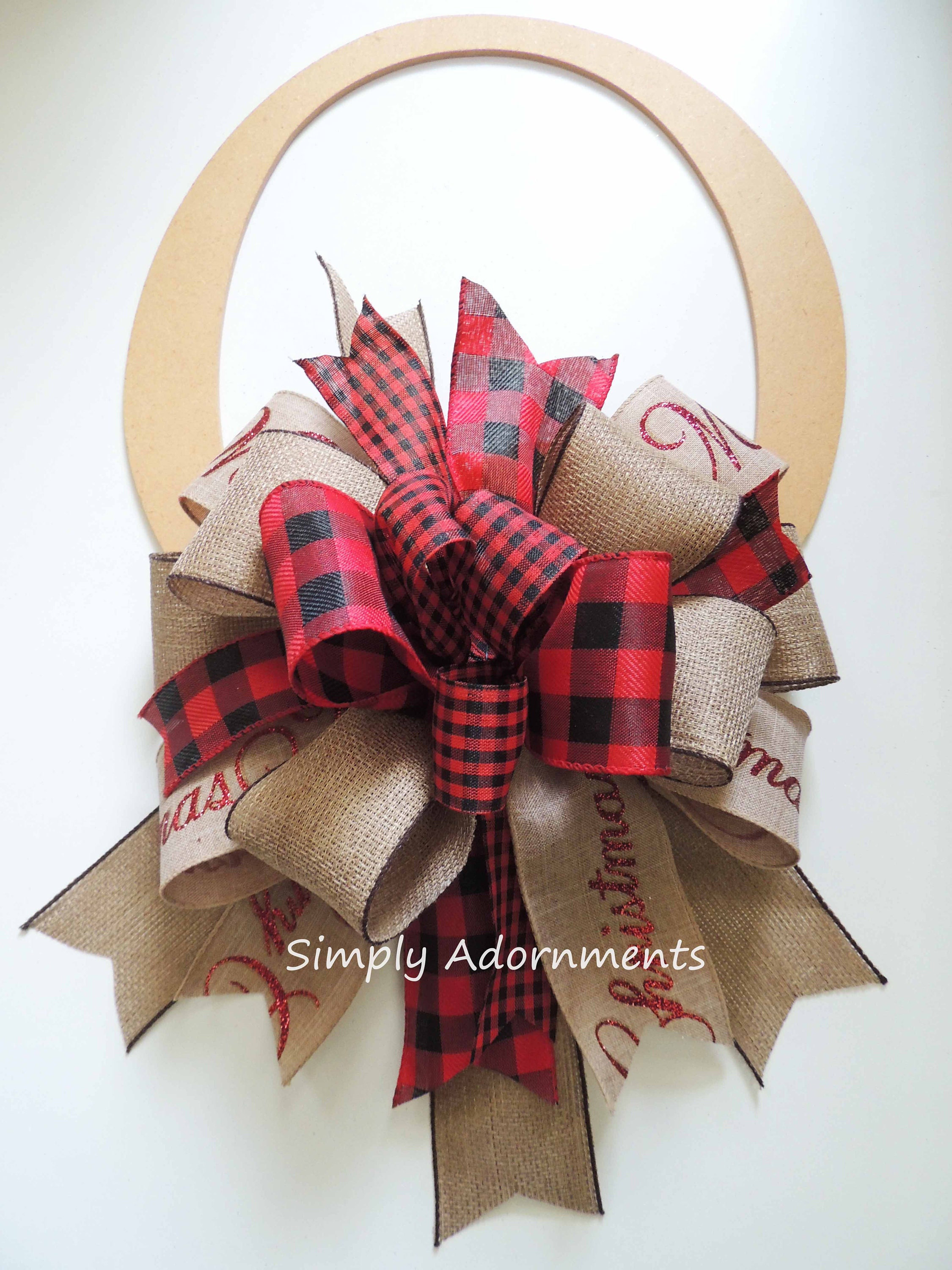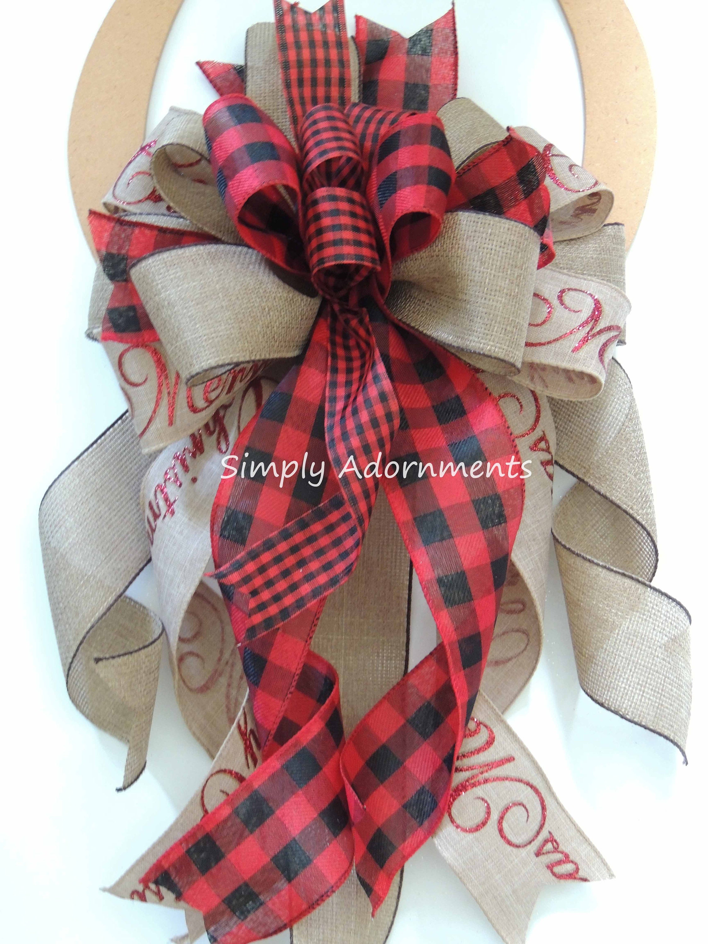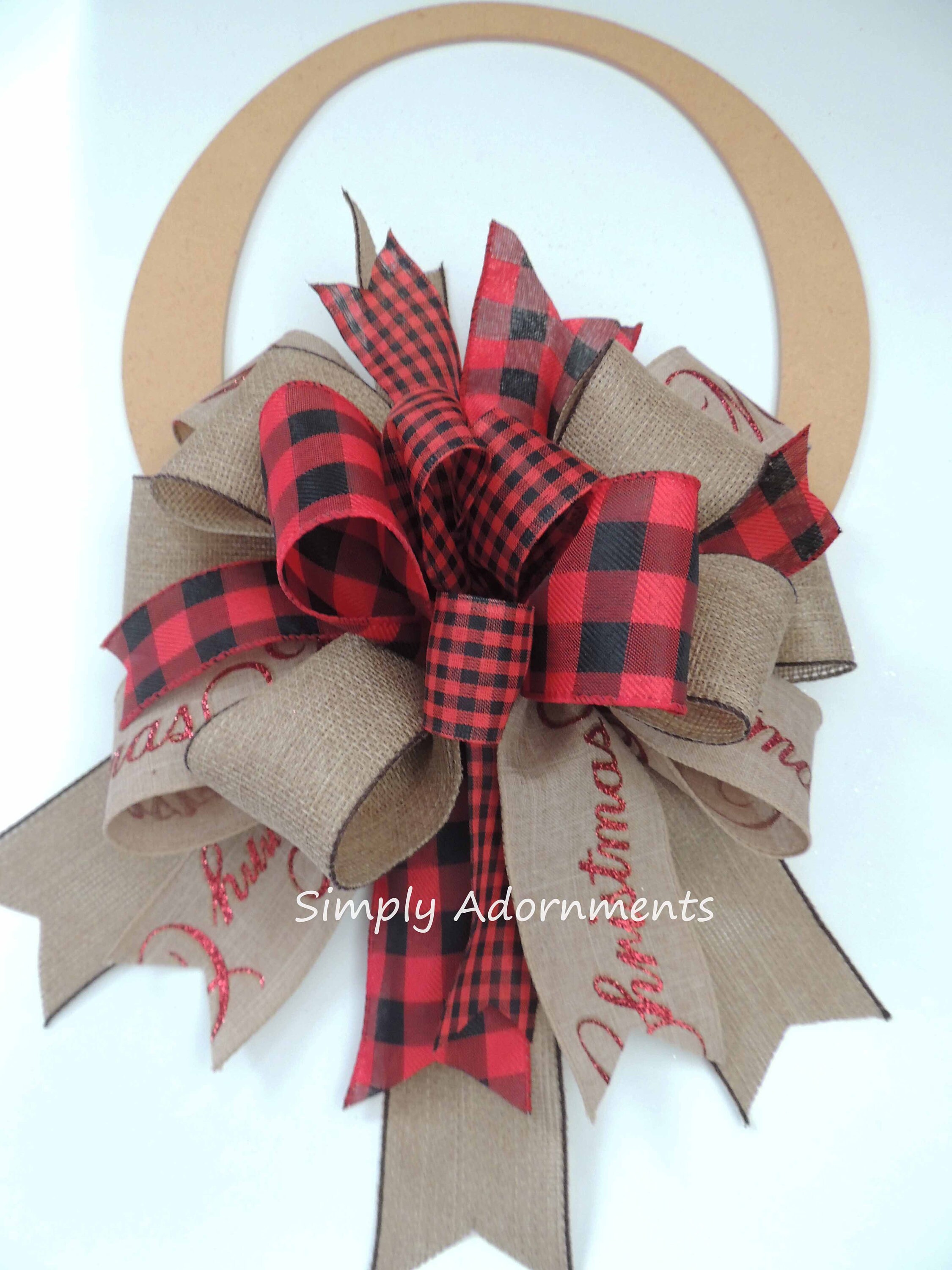 Red Black Christmas Check Bow, Farmhouse Christmas wreath Bow, Red black Christmas tree Bow, Farmhouse Christmas Tree Topper, Xmas gift bow