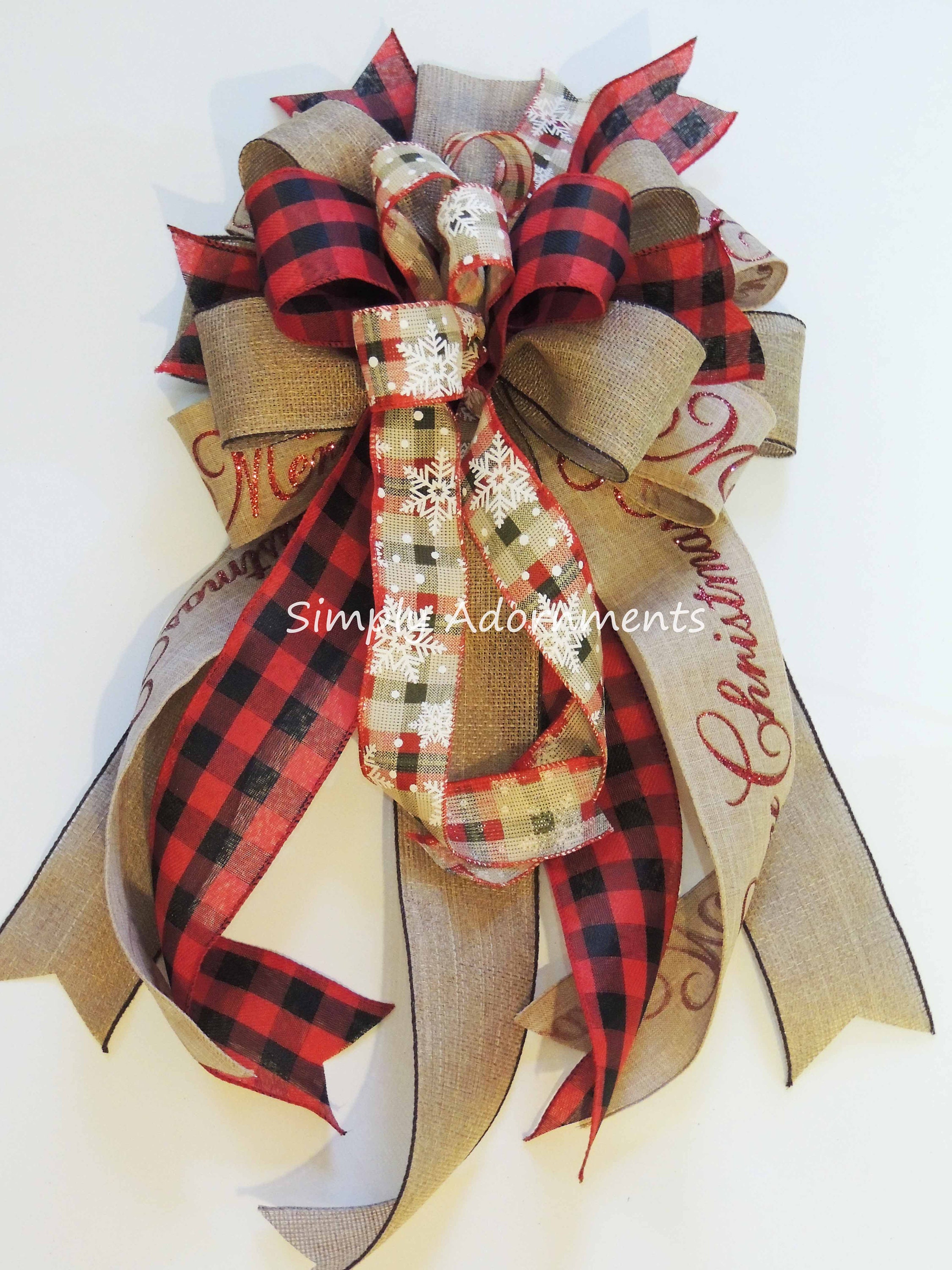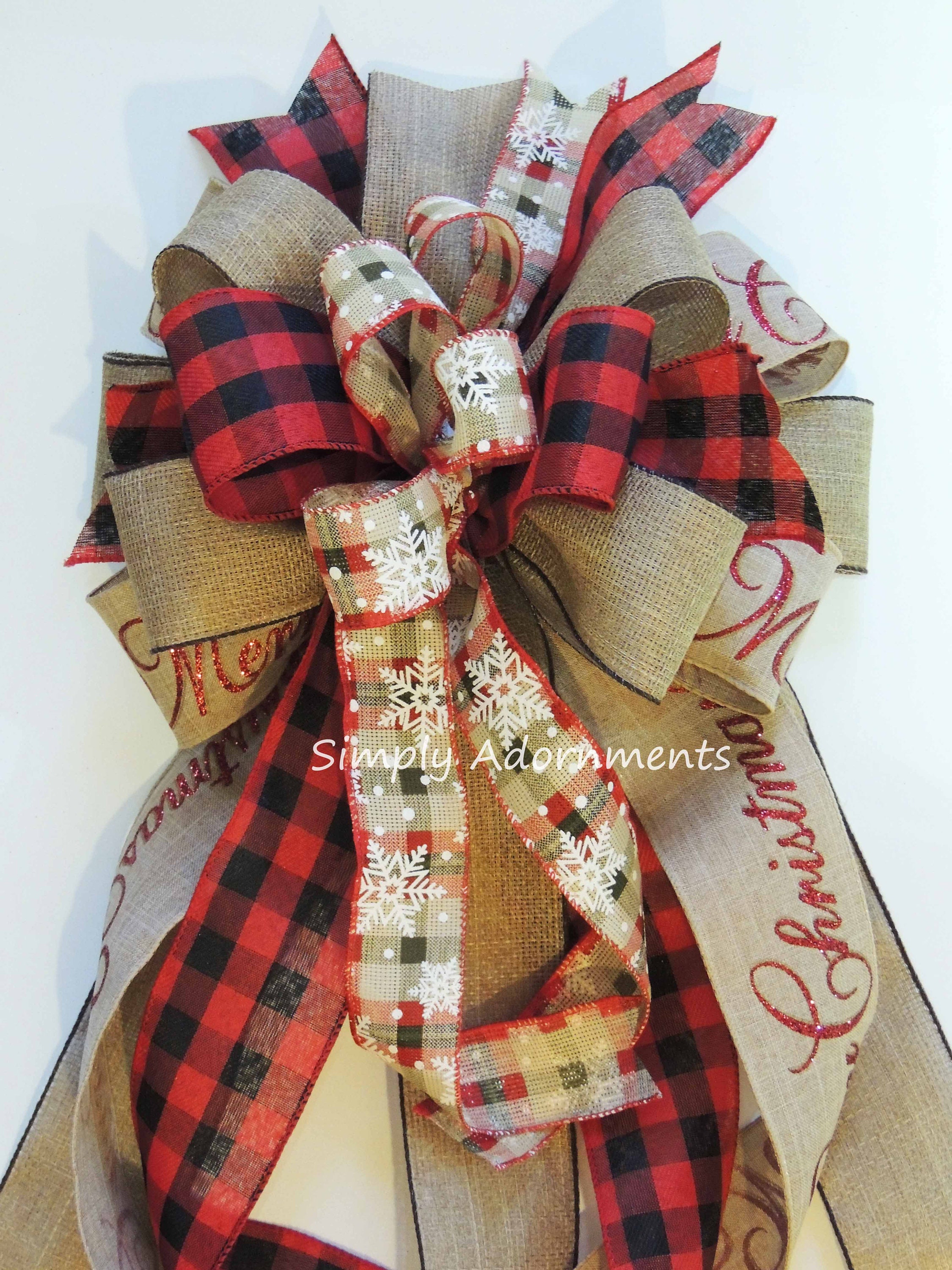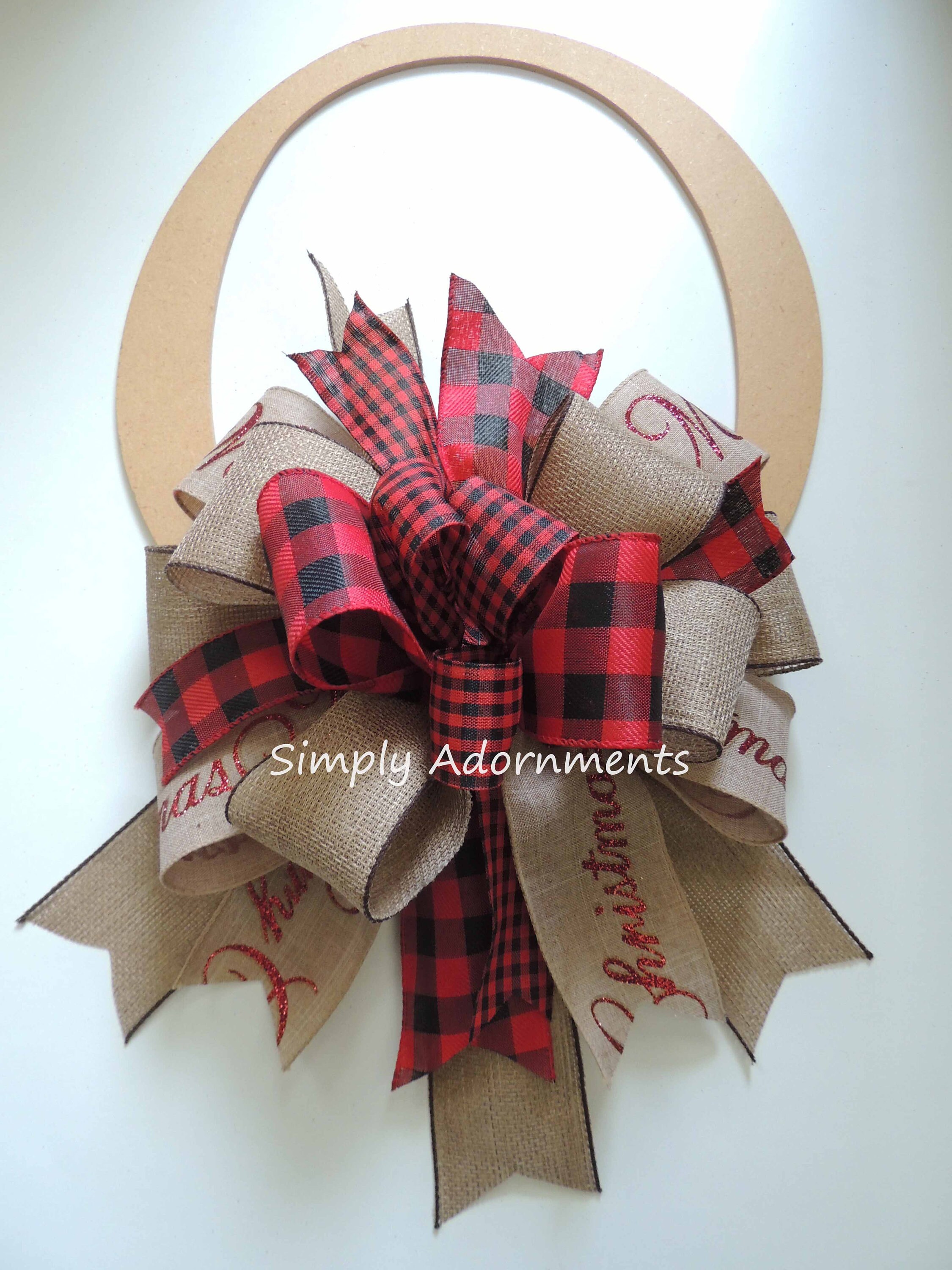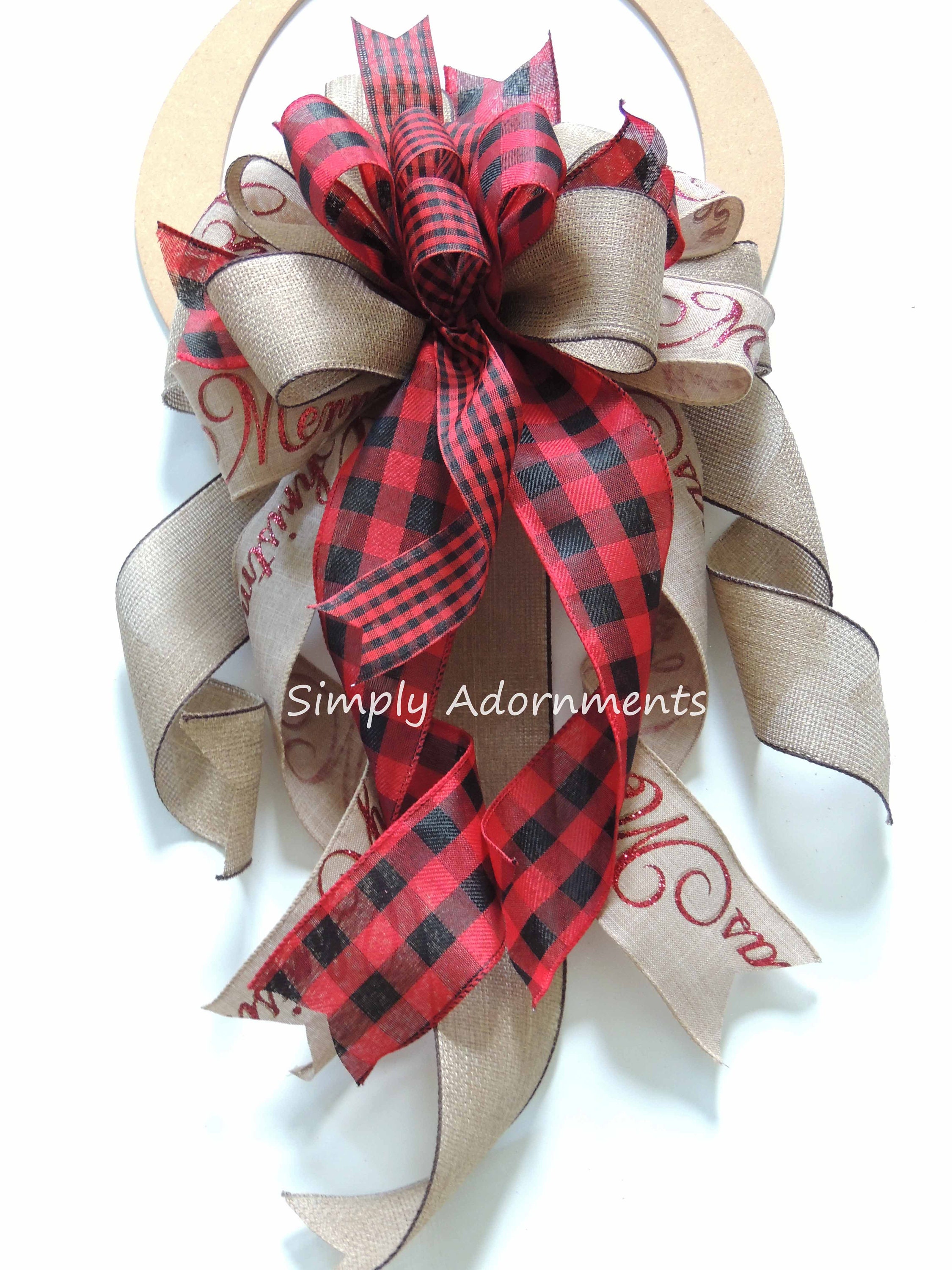 Red Black Christmas Check Bow, Farmhouse Christmas wreath Bow, Red black Christmas tree Bow, Farmhouse Christmas Tree Topper, Xmas gift bow
