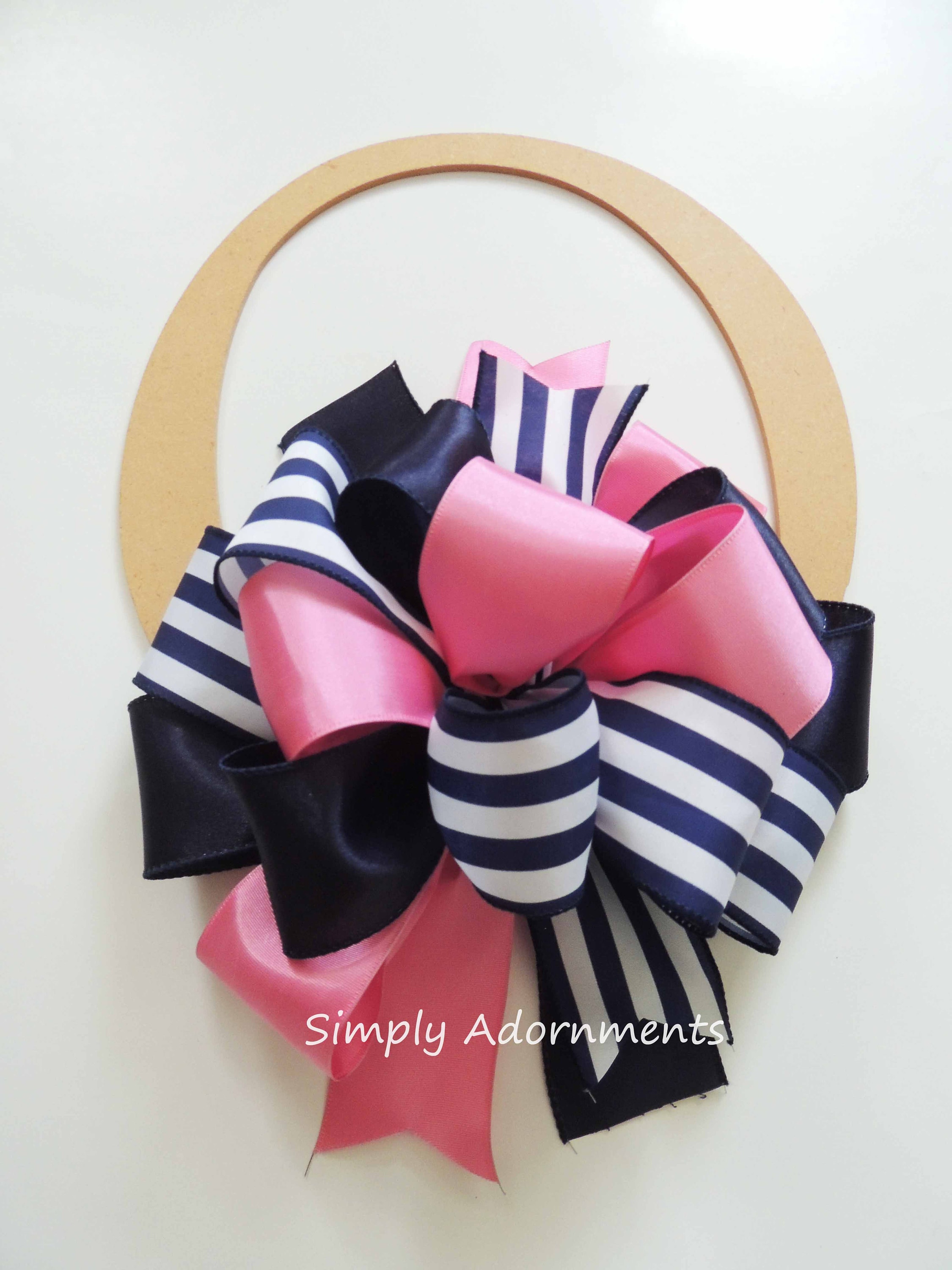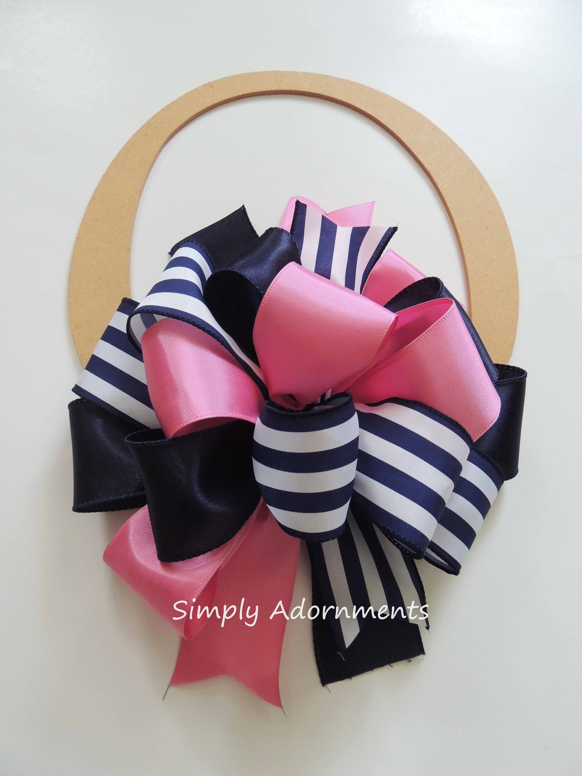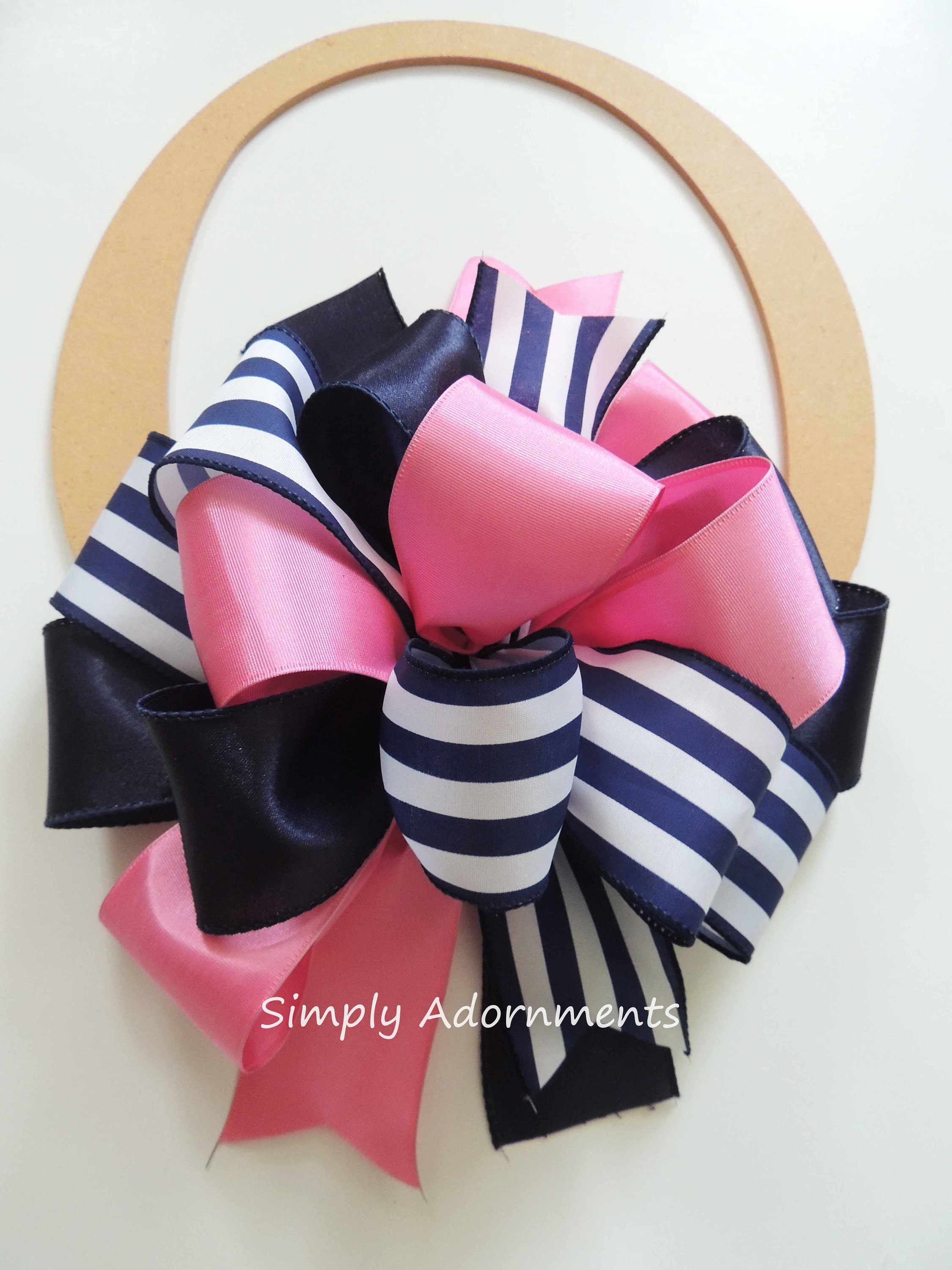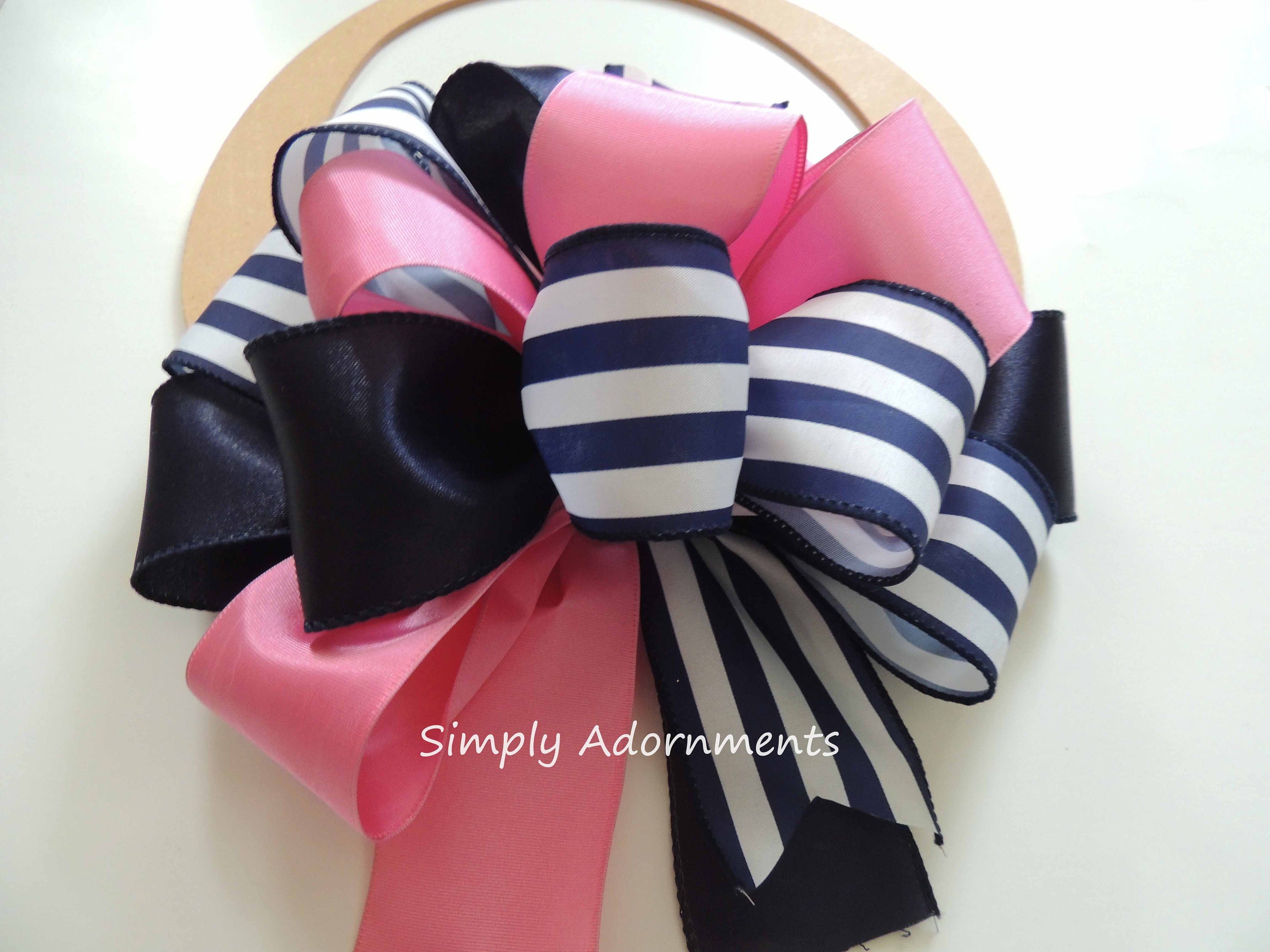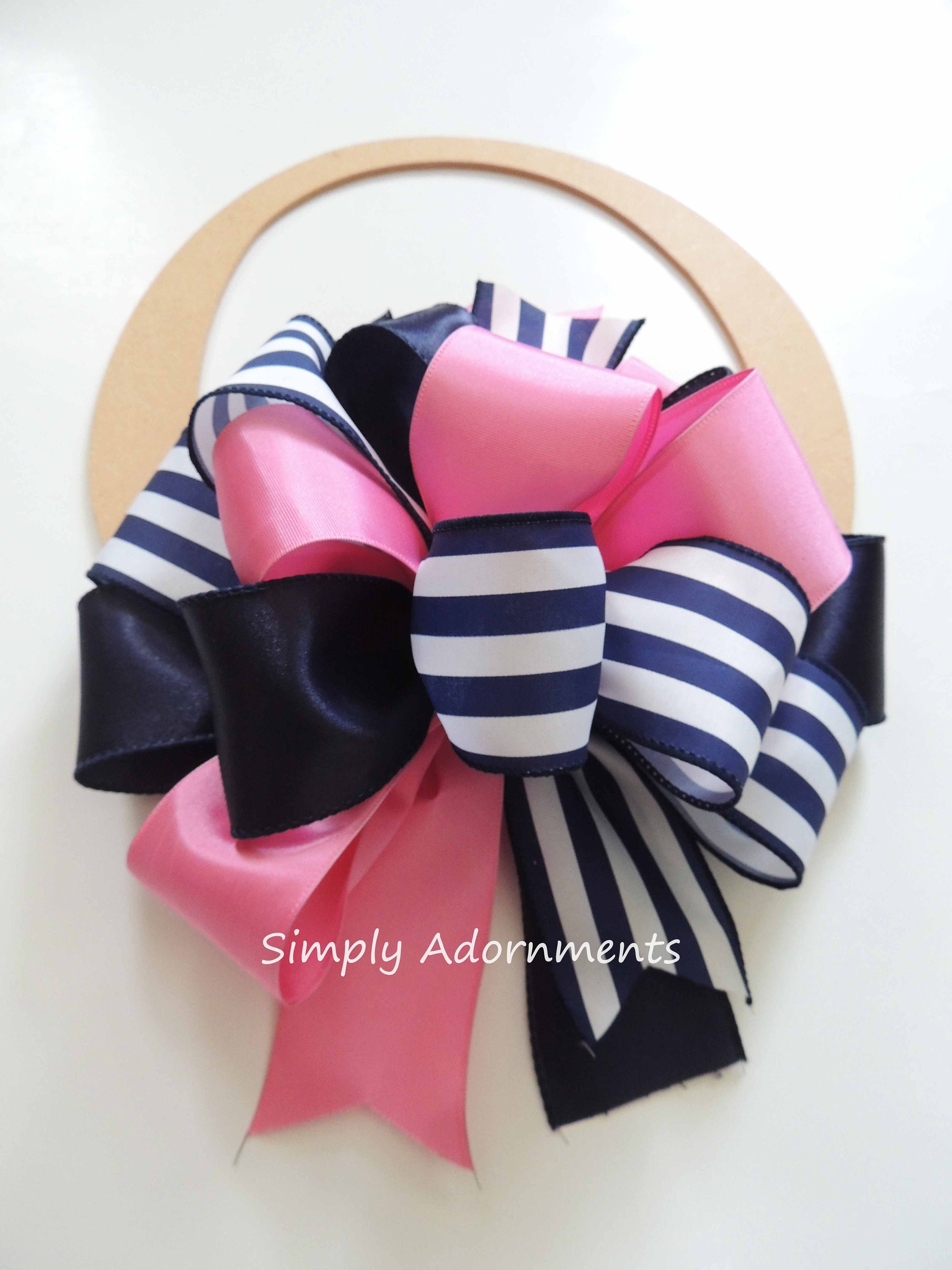 Navy Pink Door Bow, Navy Pink wreath bow, Nautical Navy Pink Home Decor, Summer Beach Bow, Navy Pink Lantern bow, Porch Sign bow, gift Bow
