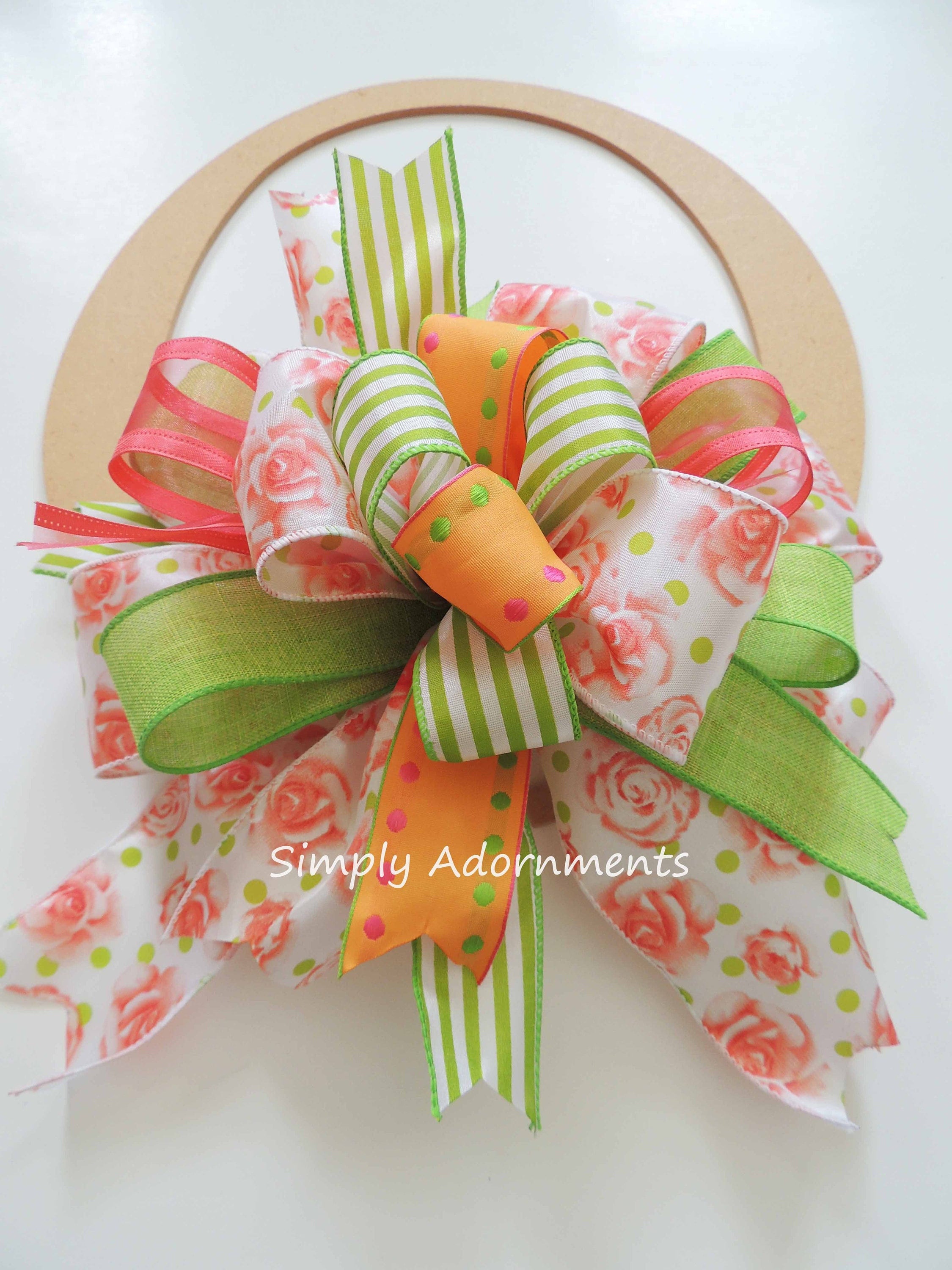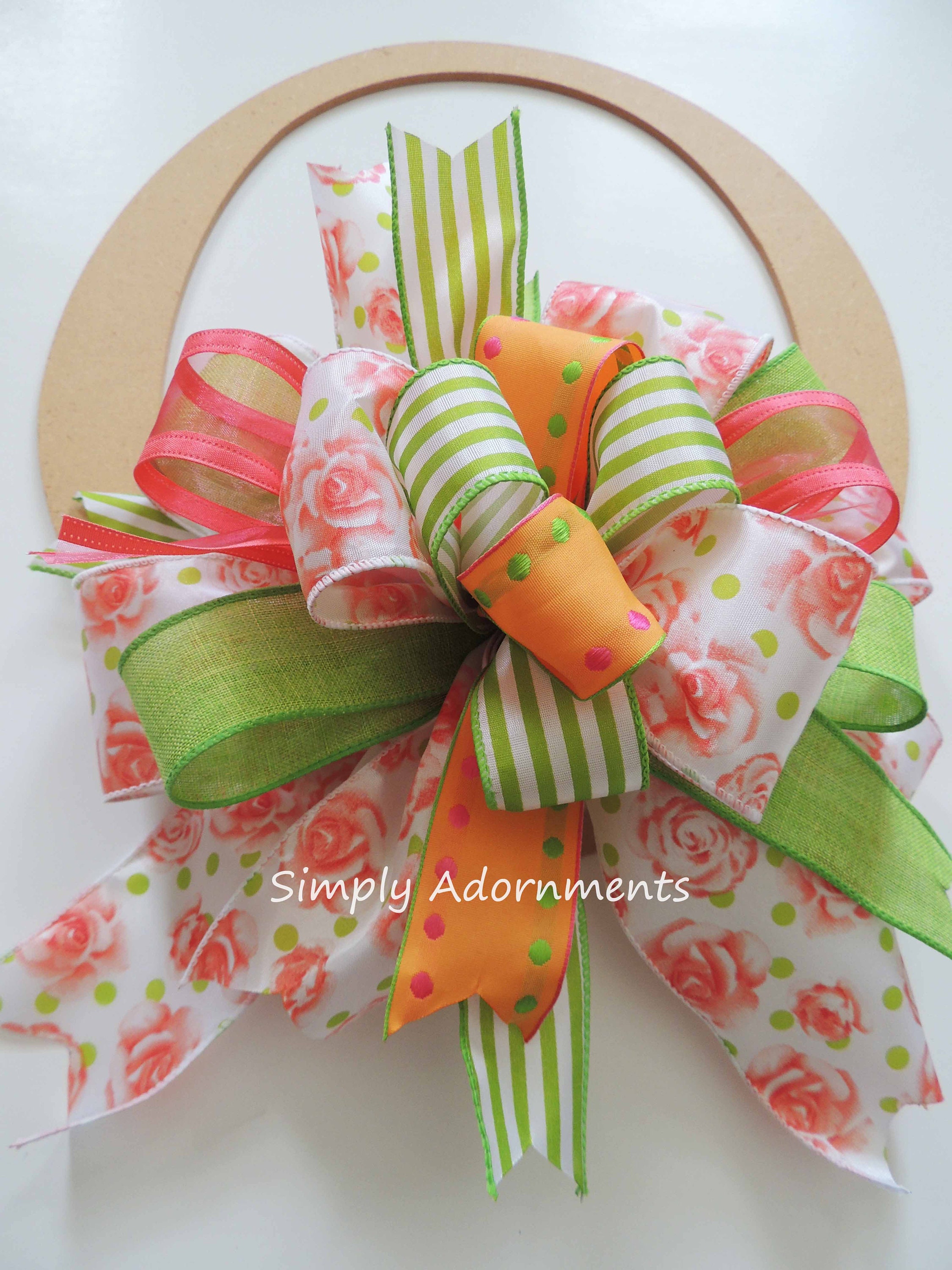 Pink Lime Spring Floral Wreath Bow Pink Green Door Hanger decor Pink Plaid Lime Daisy Wired Ribbon Wreath Bow Pink Birthday Party Decoration.