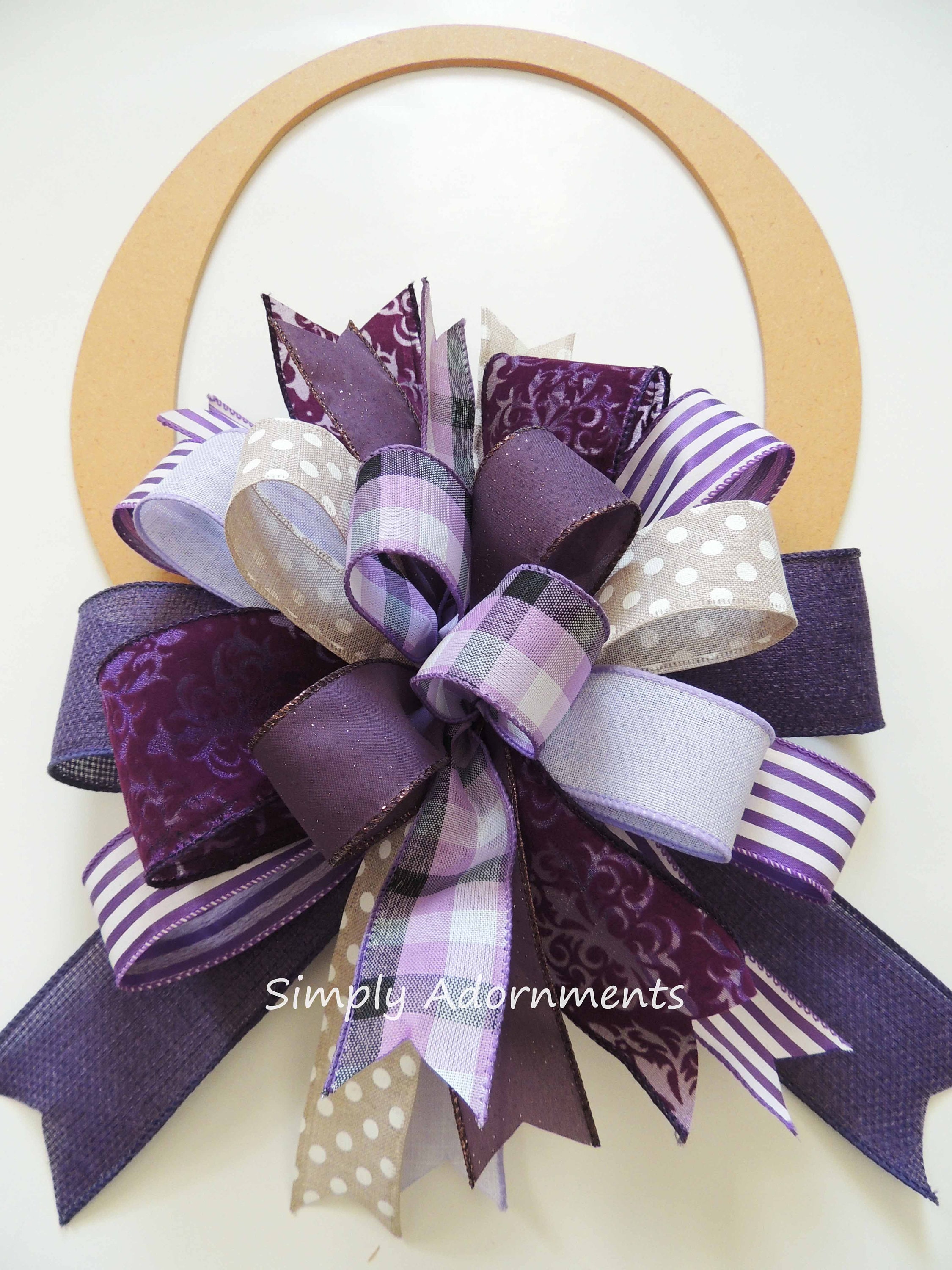 Purple tan Bow, Purple Door Bow, Purple theme party decor, Purple Lantern bow, Purple Fall Bow, Purple stripes Check bow, Gift wrap Bow