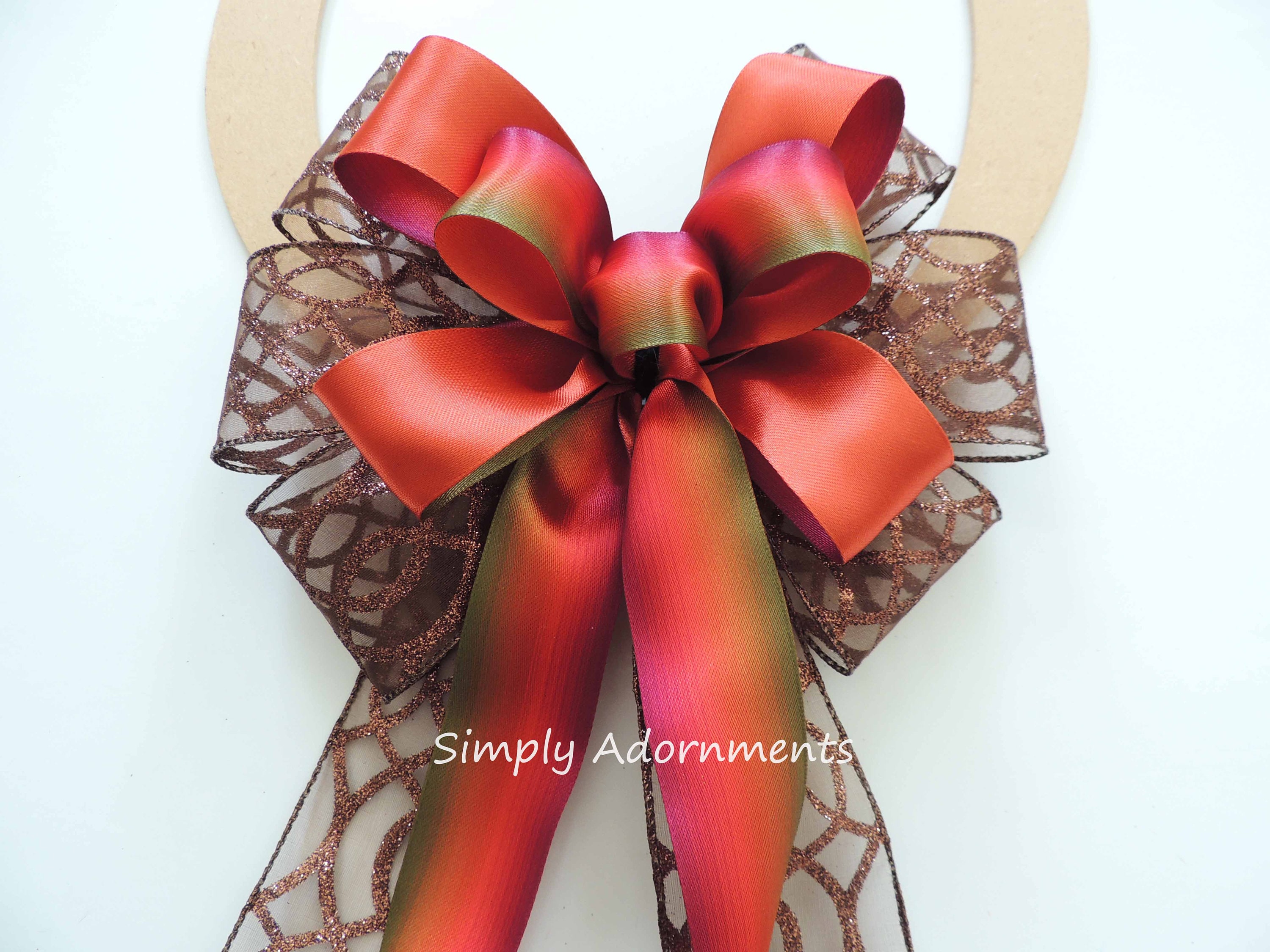 Fall Ombre Colors Bow, Fall Ombre Wreath Bow, Fall Brown Burnt Orange Pew Bow, Ombre colors Thanksgiving Bow, Fall Ombre Wedding bow Pew Bow