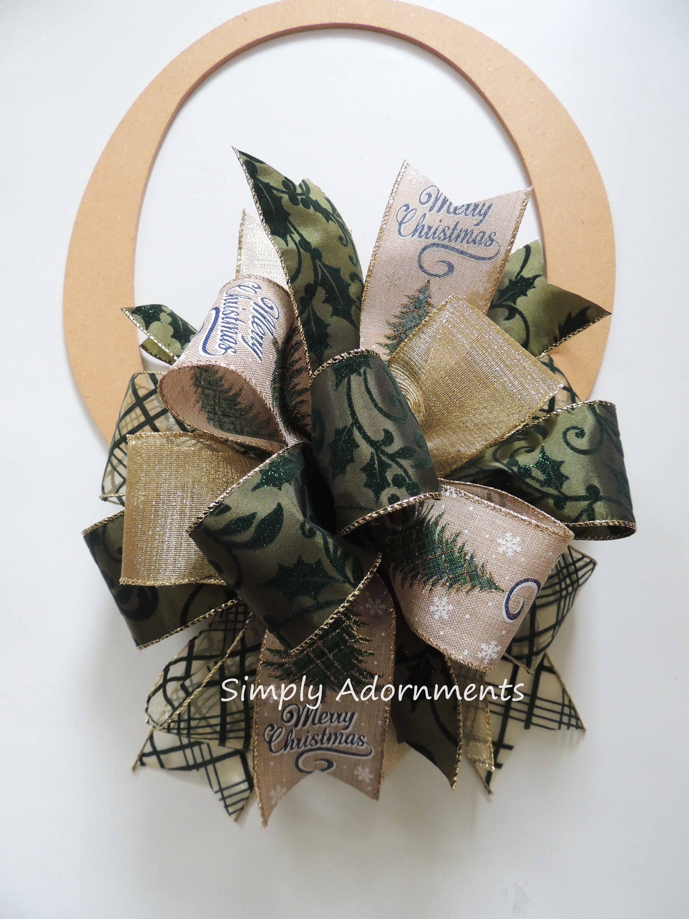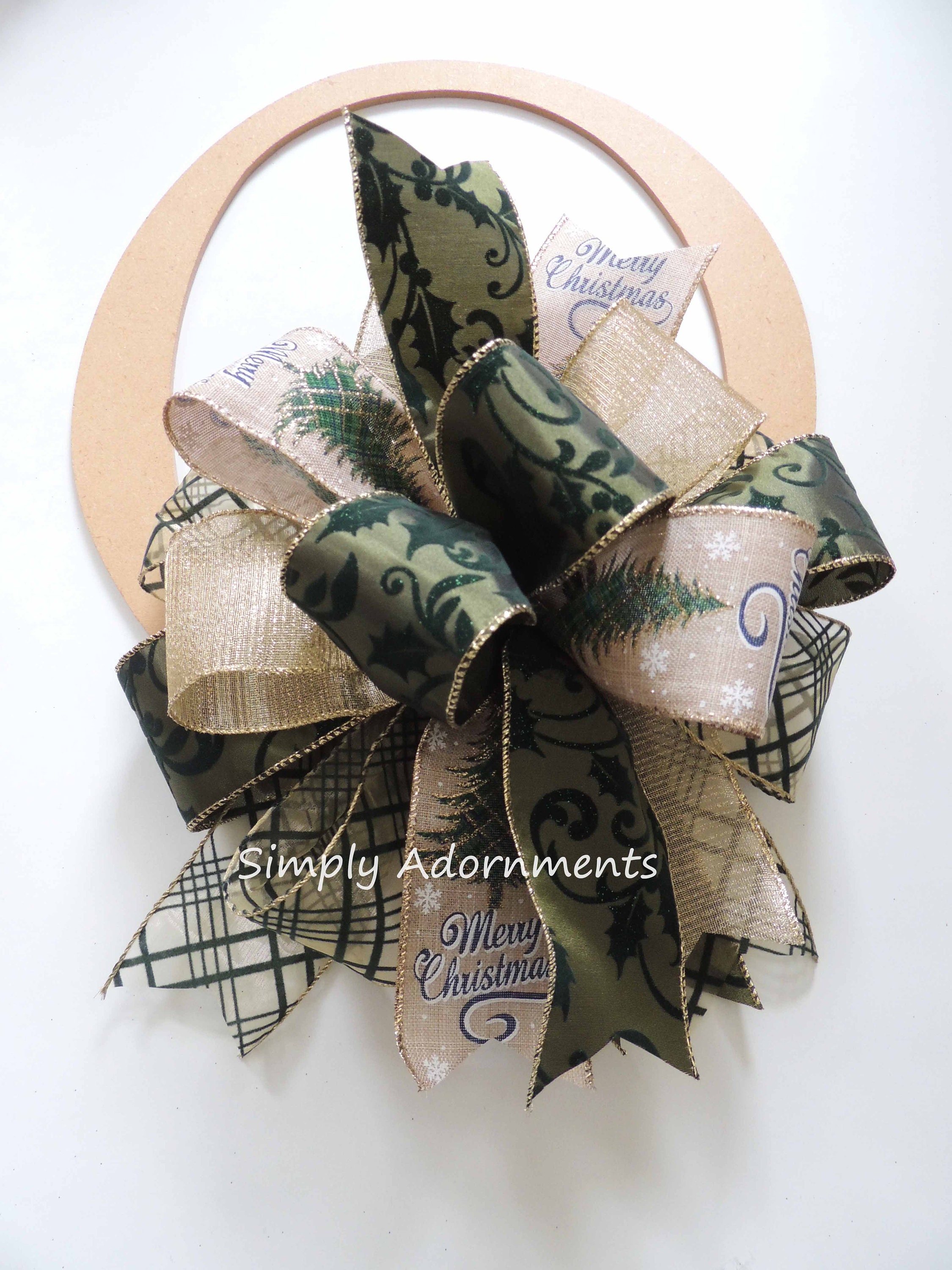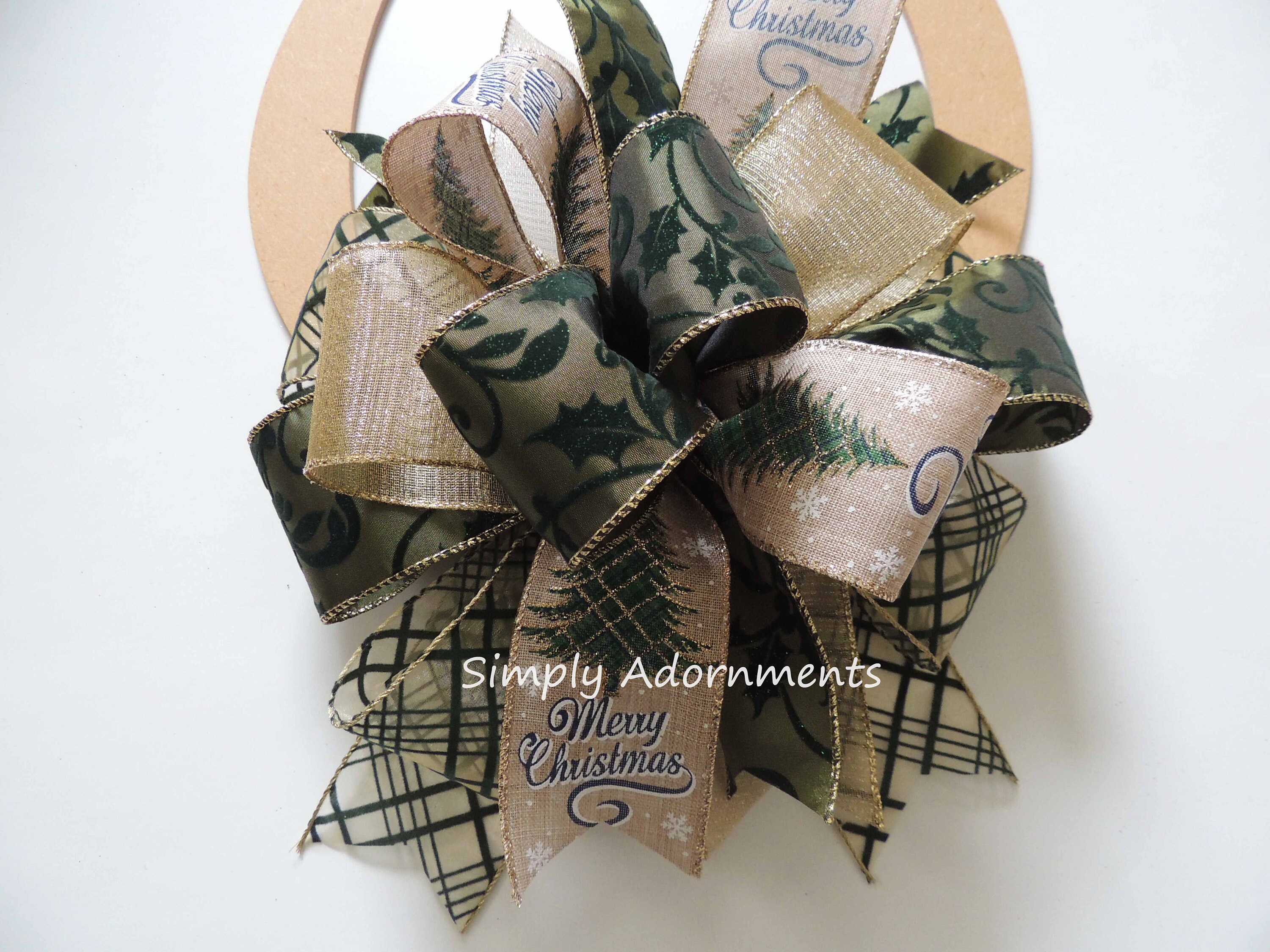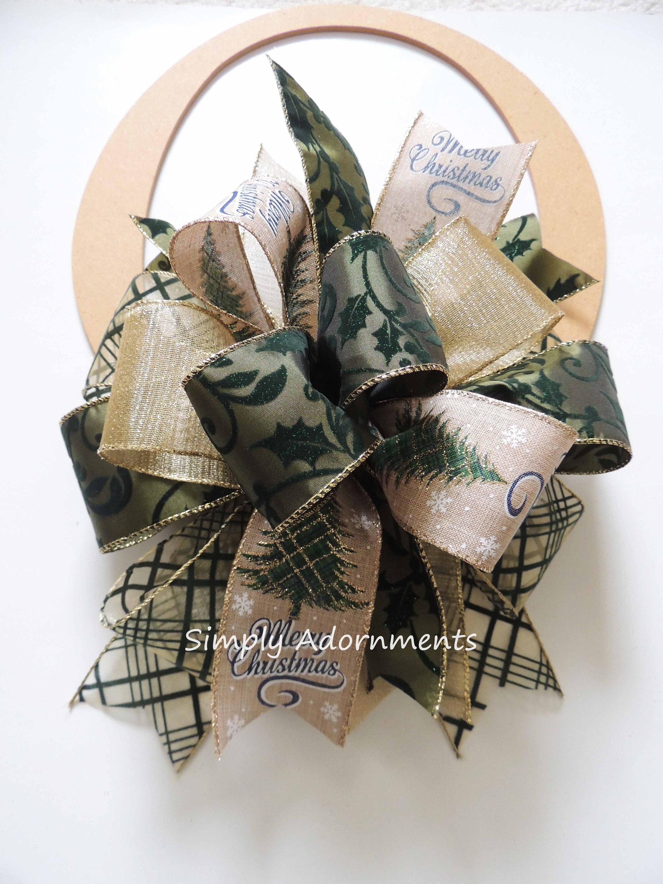 Green Gold Christmas Bow, Hunter green Gold Plaid Christmas Bow, Green Christmas Tree Bow, Hunter Green Christmas tree bow, Green Gold Bow