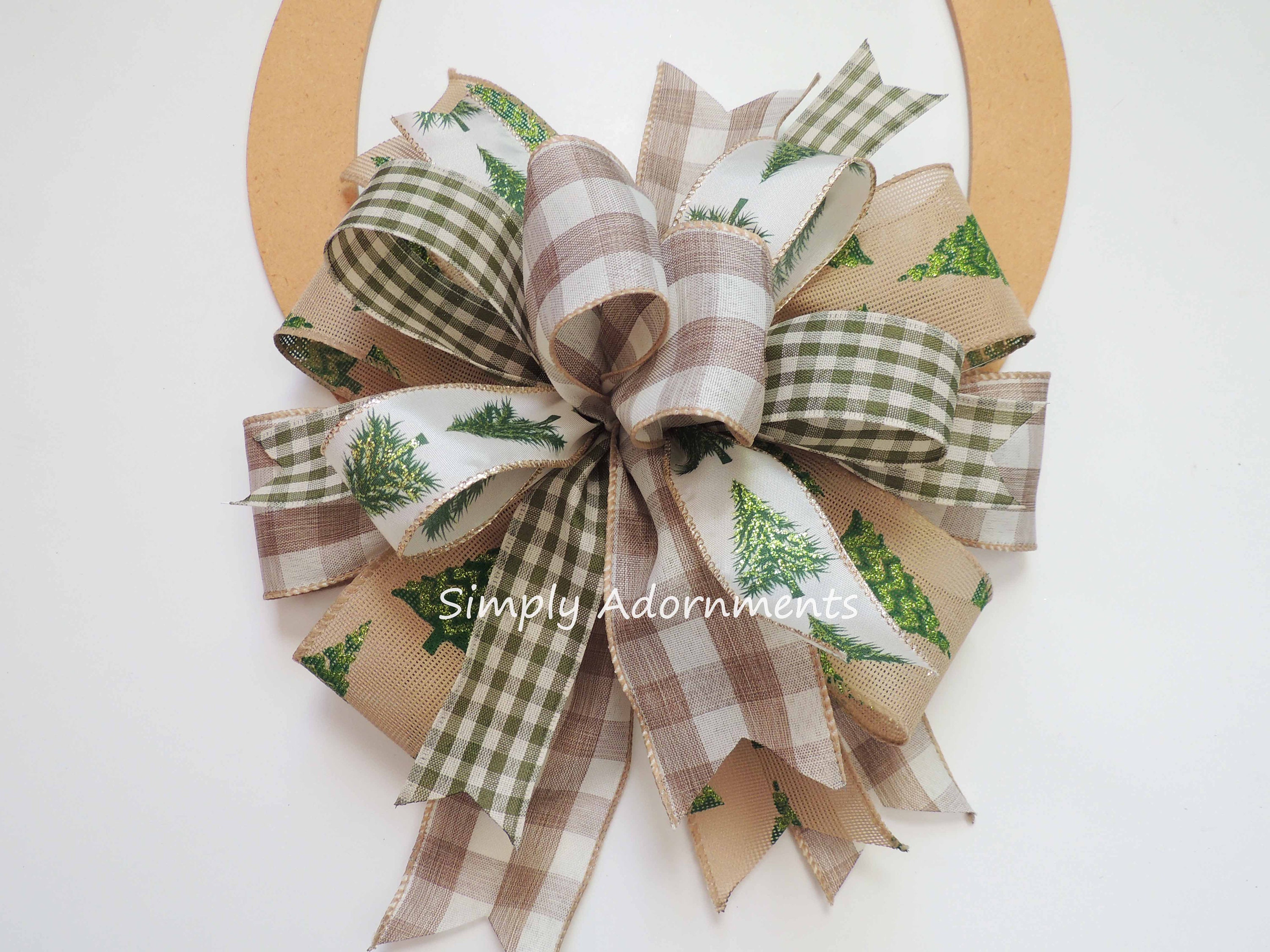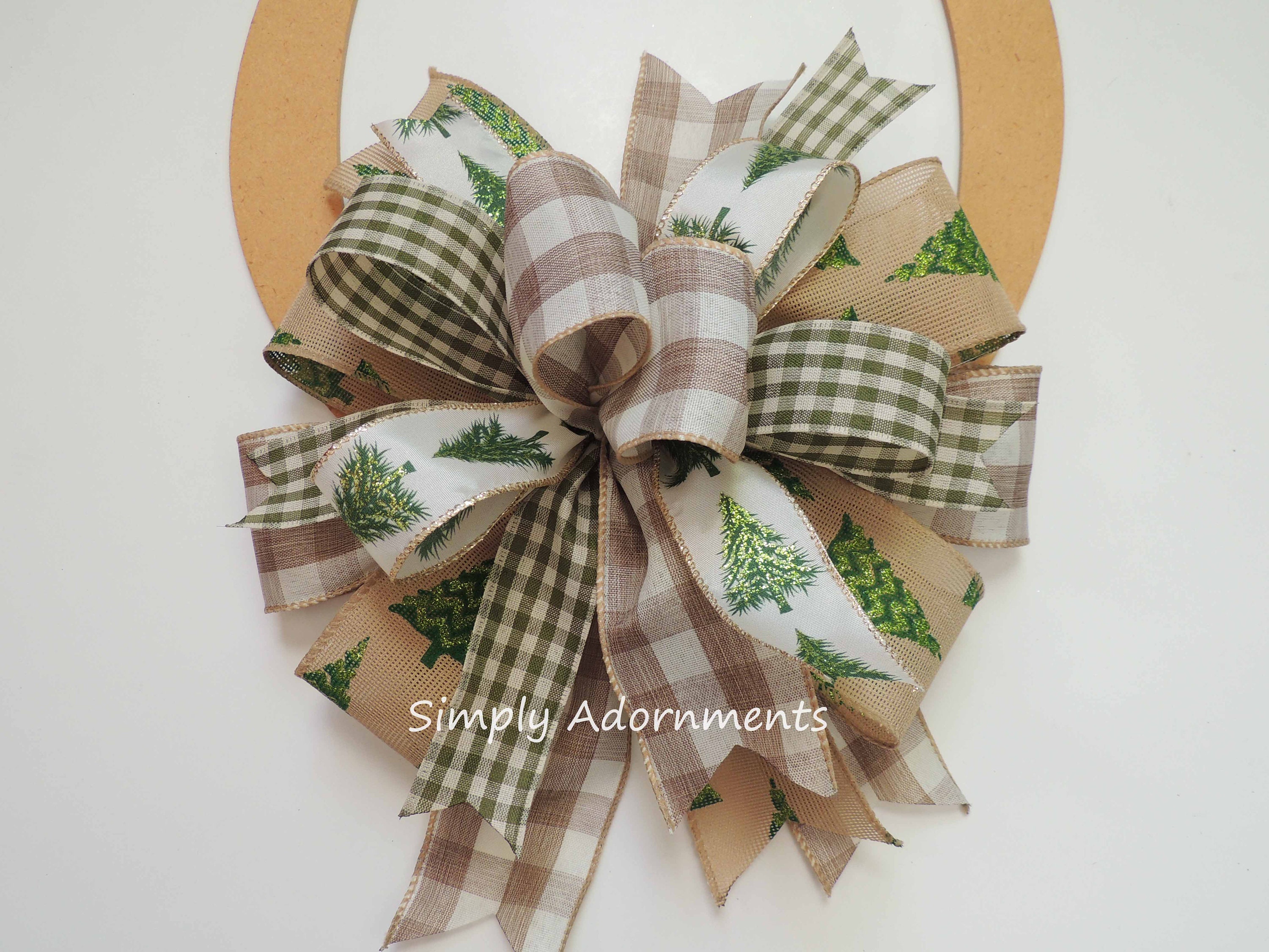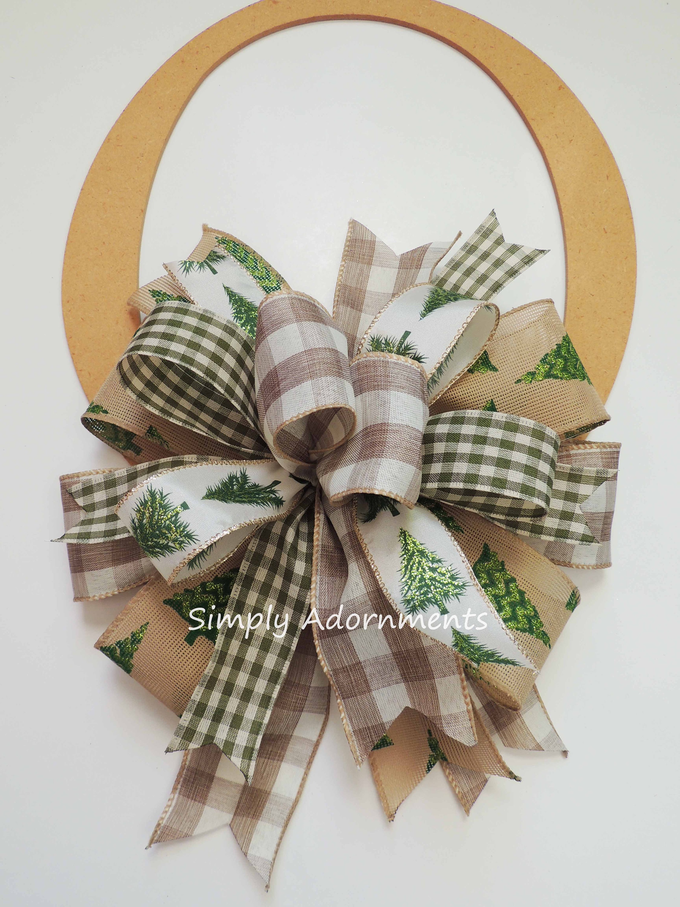 Farmhouse Christmas Green Bow, Farmhouse Green Check Burlap Christmas Bow, Green Christmas Tree Bow, Green Tan Check Christmas Lantern bow