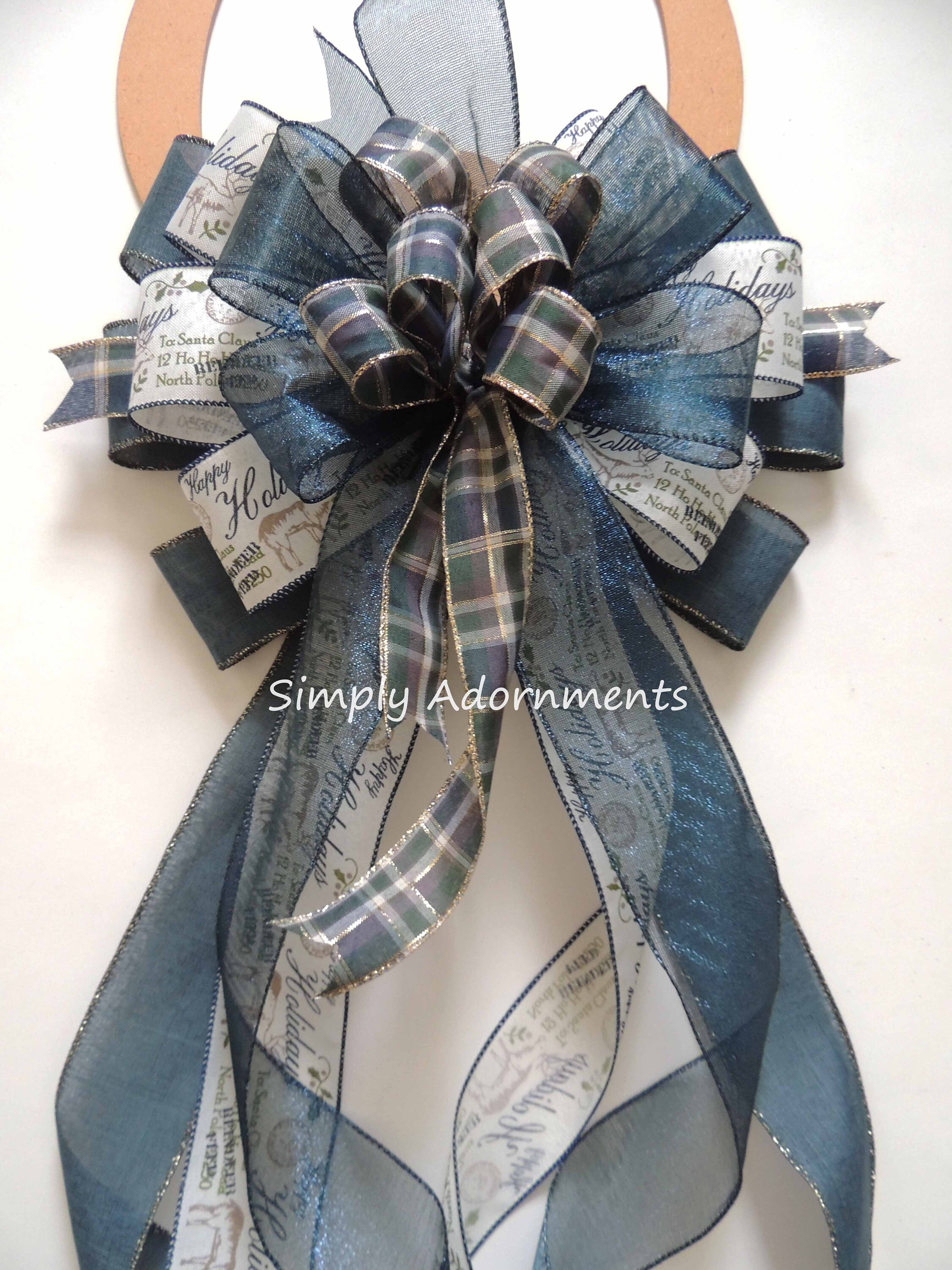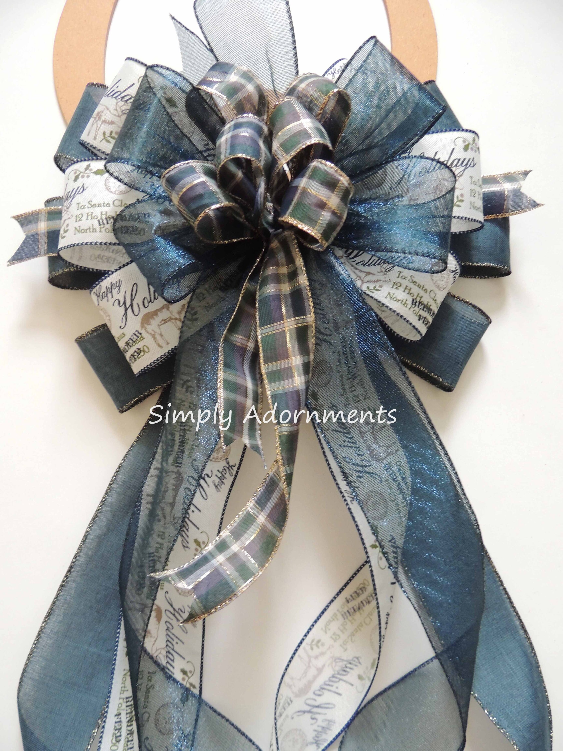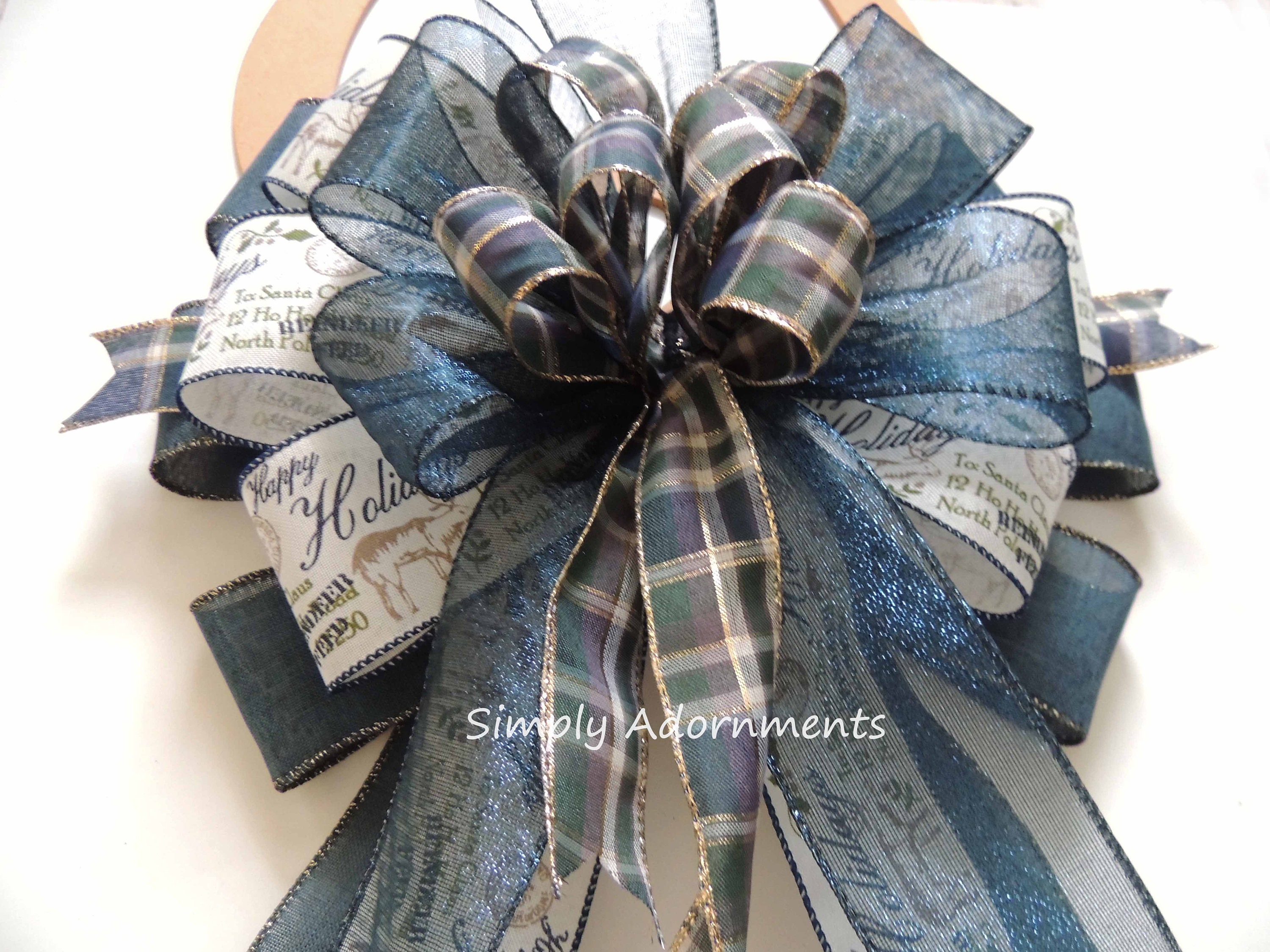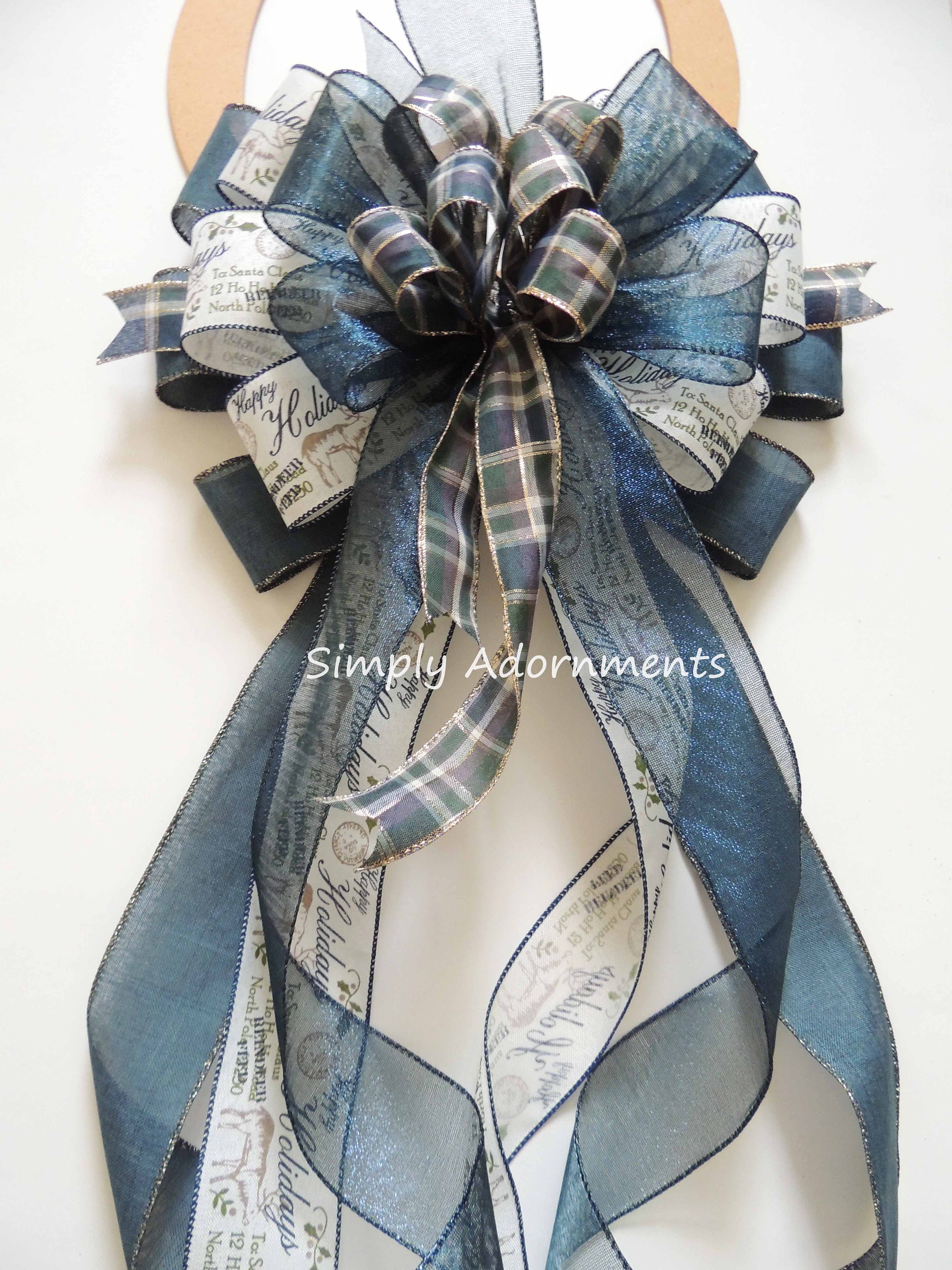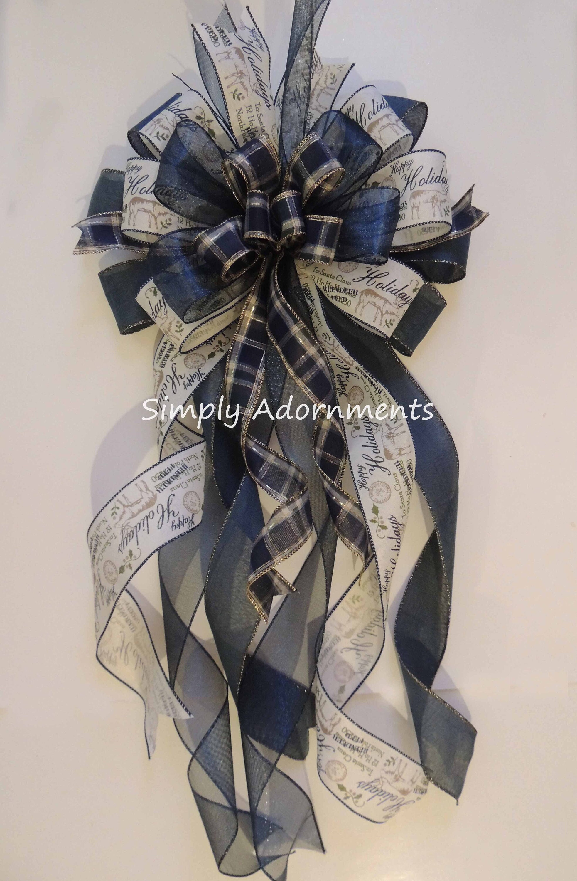 XLarge Navy Christmas plaid Bow, Navy Green Christmas Tree Topper bow, Navy Christmas wreath Bow, Navy Christmas plaid Tree bow, Door bow