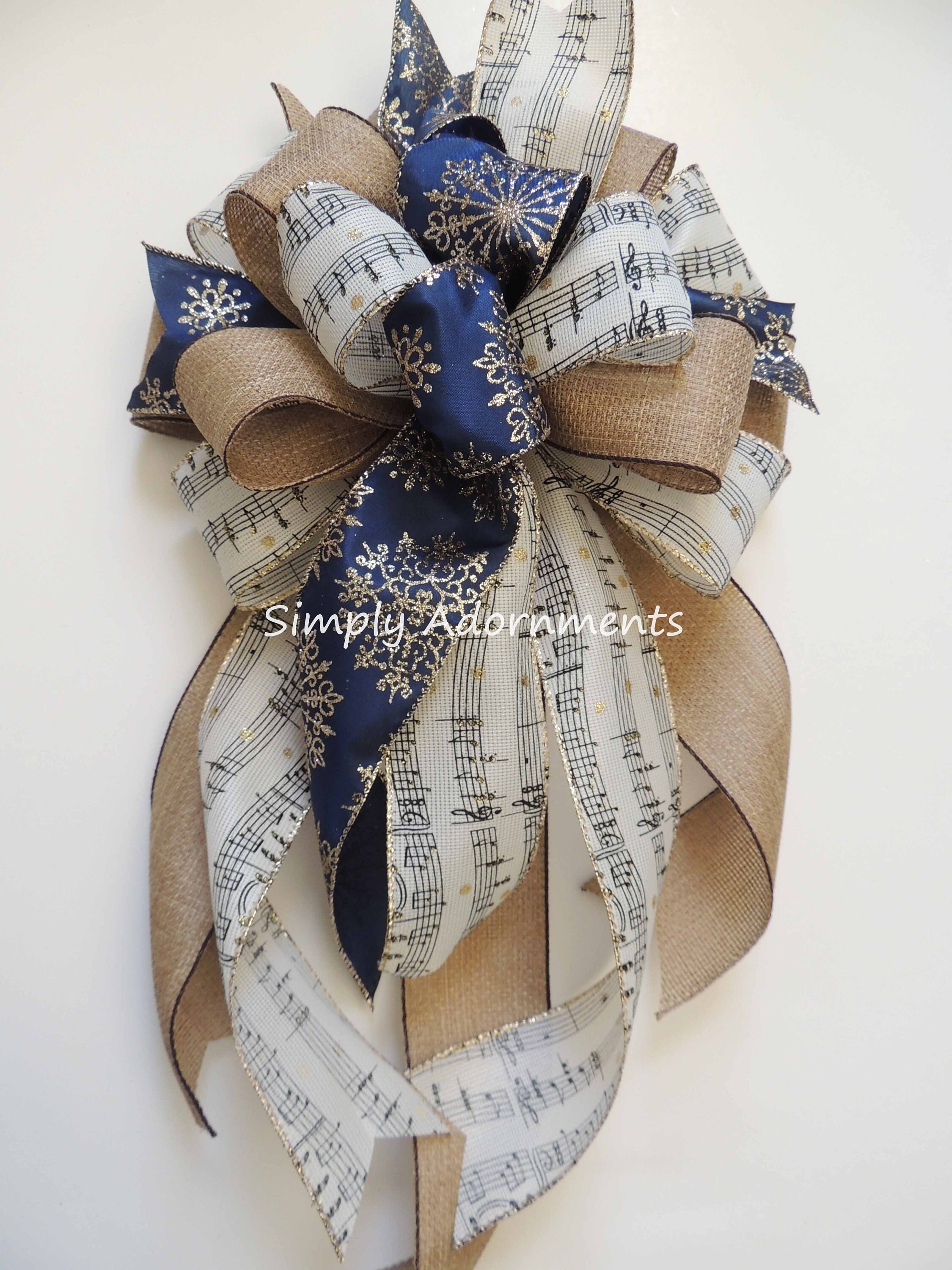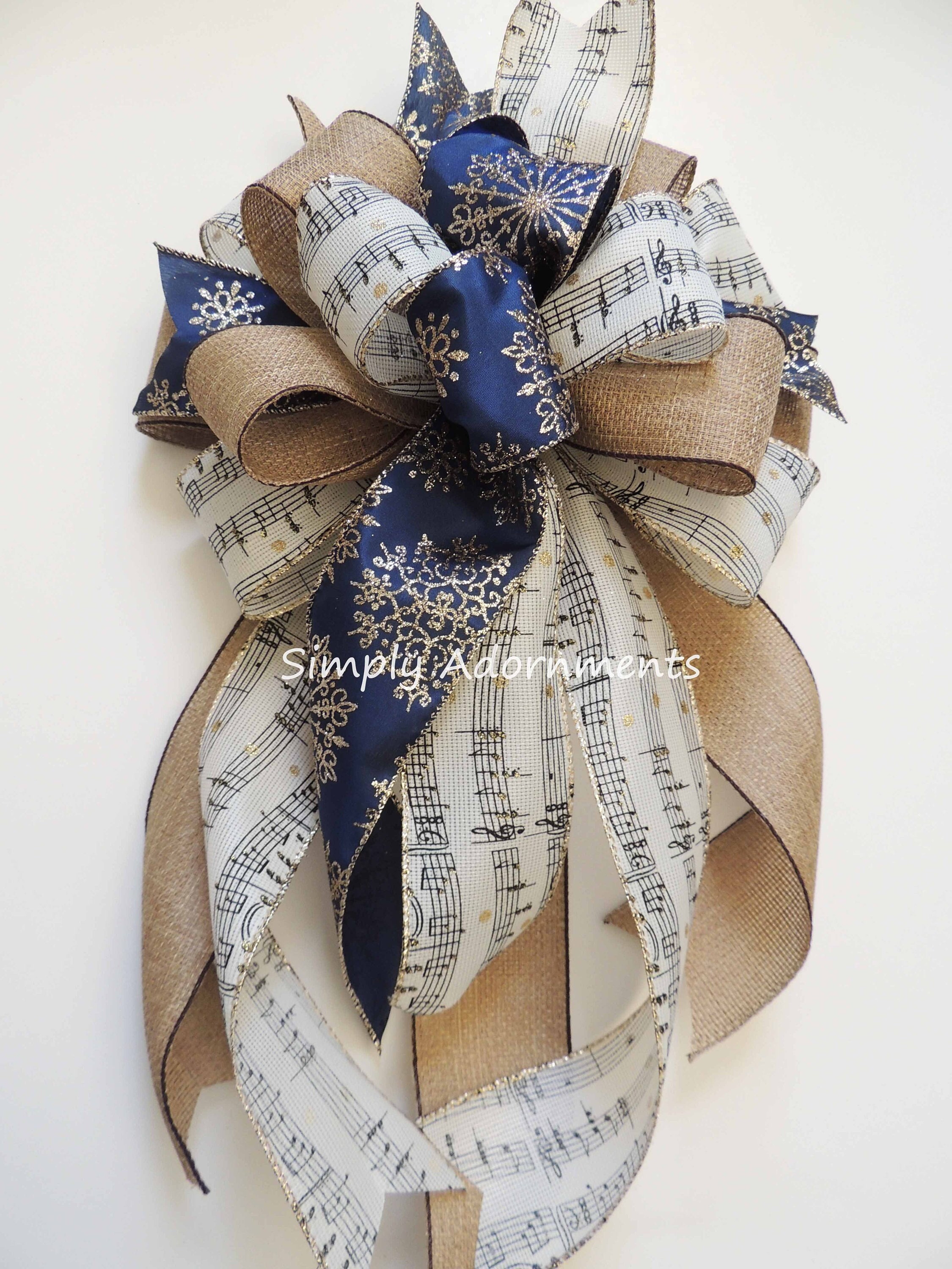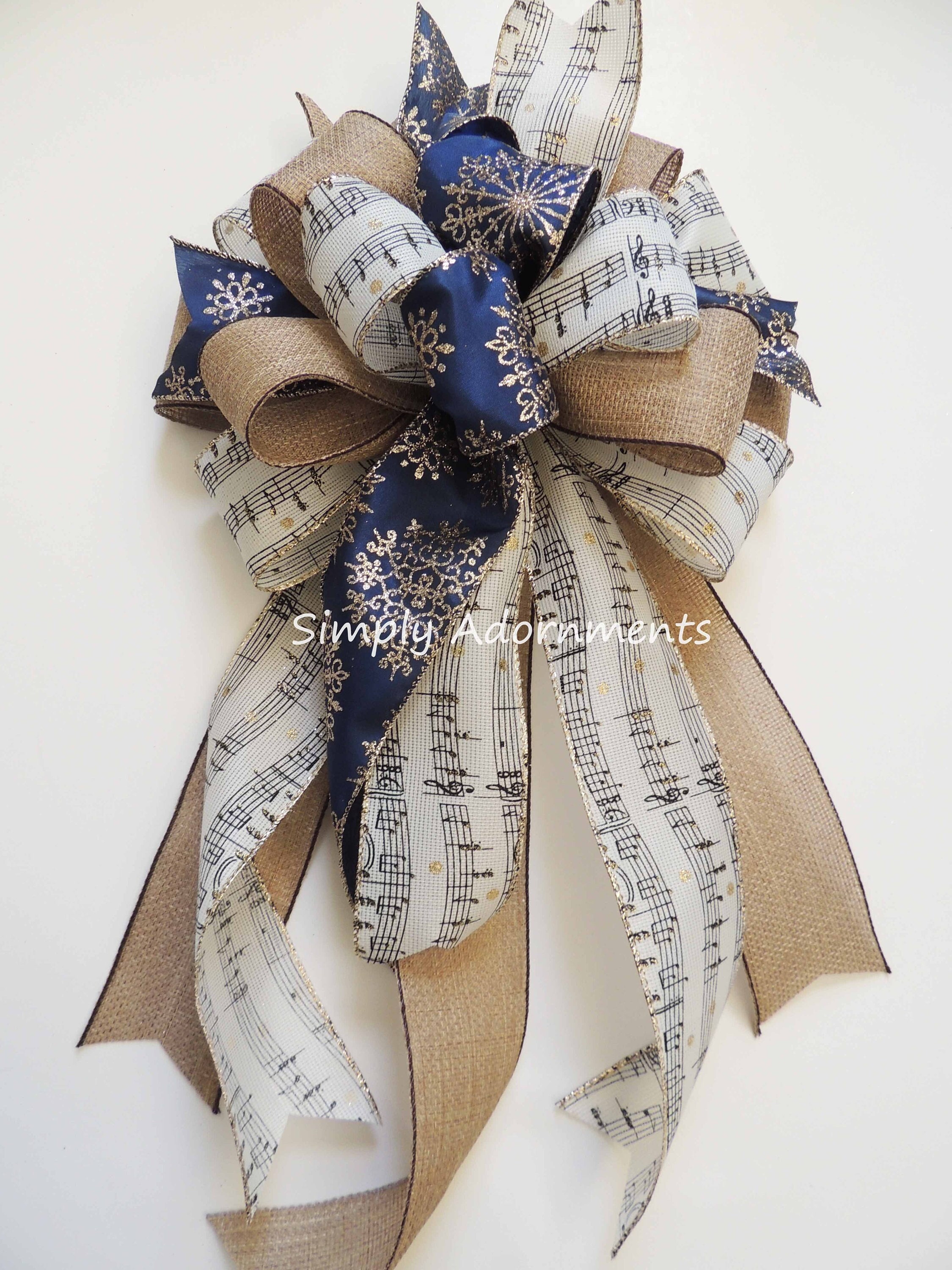 Music Christmas Tree Topper Bow. Snowflakes Music burlap Christmas Wreath Bow, Christmas Farmhouse Wreath Bow, Rustic Christmas Tree Topper Bow, Music Snowflakes Bow, gift bow