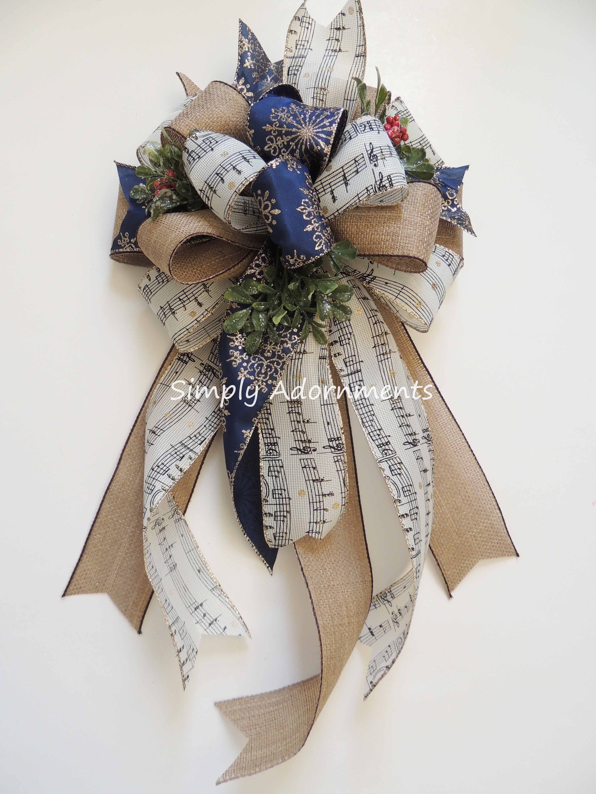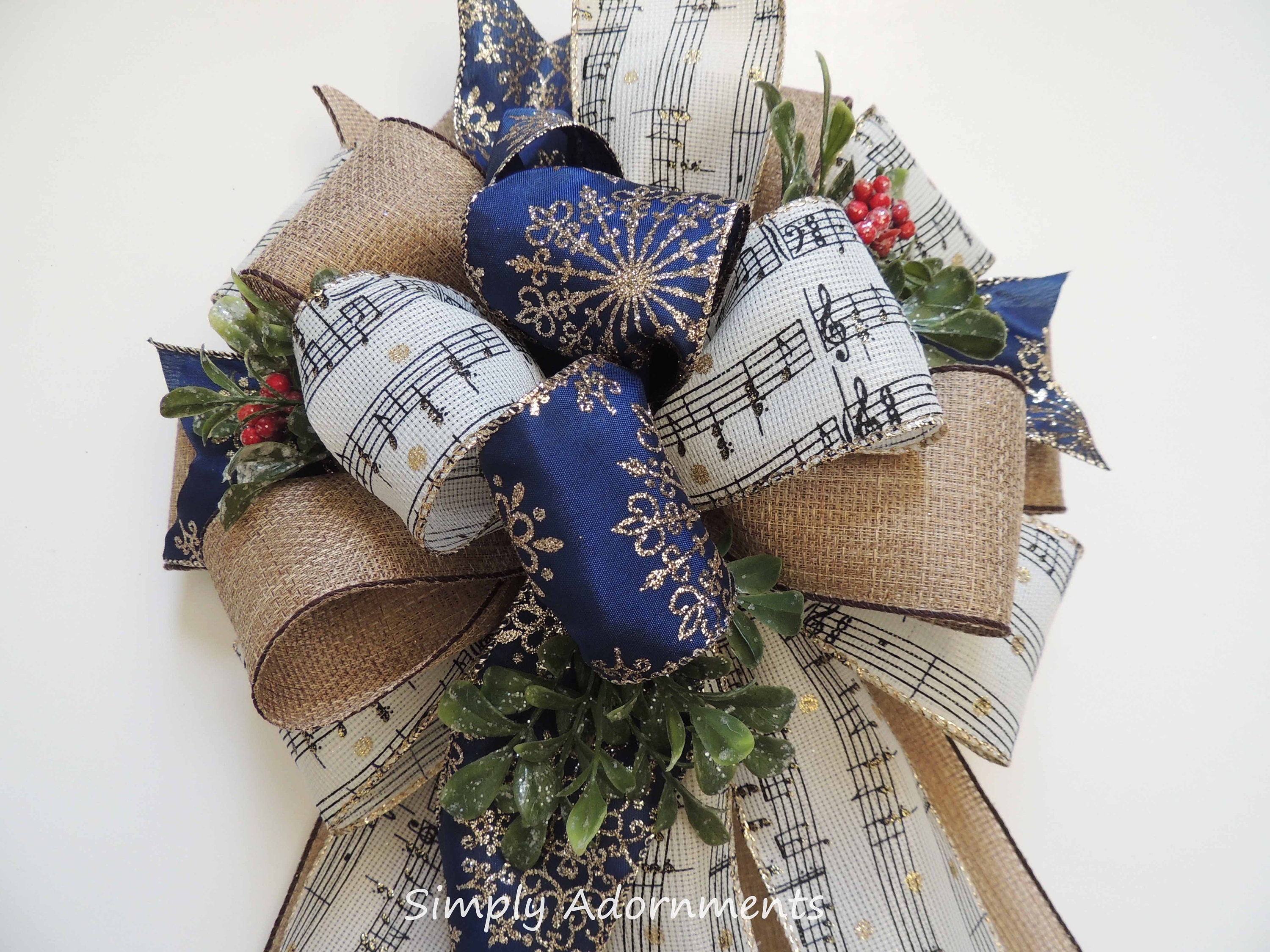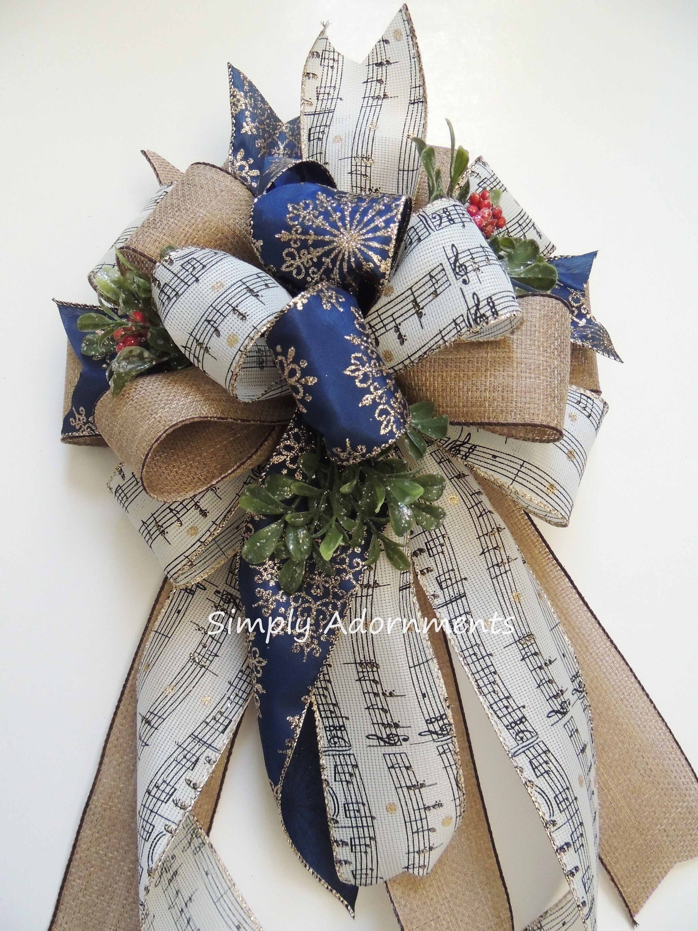 Music Christmas Tree Topper Bow. Snowflakes Music burlap Christmas Wreath Bow, Christmas Farmhouse Wreath Bow, Rustic Christmas Tree Topper Bow, Music Snowflakes Bow, gift bow