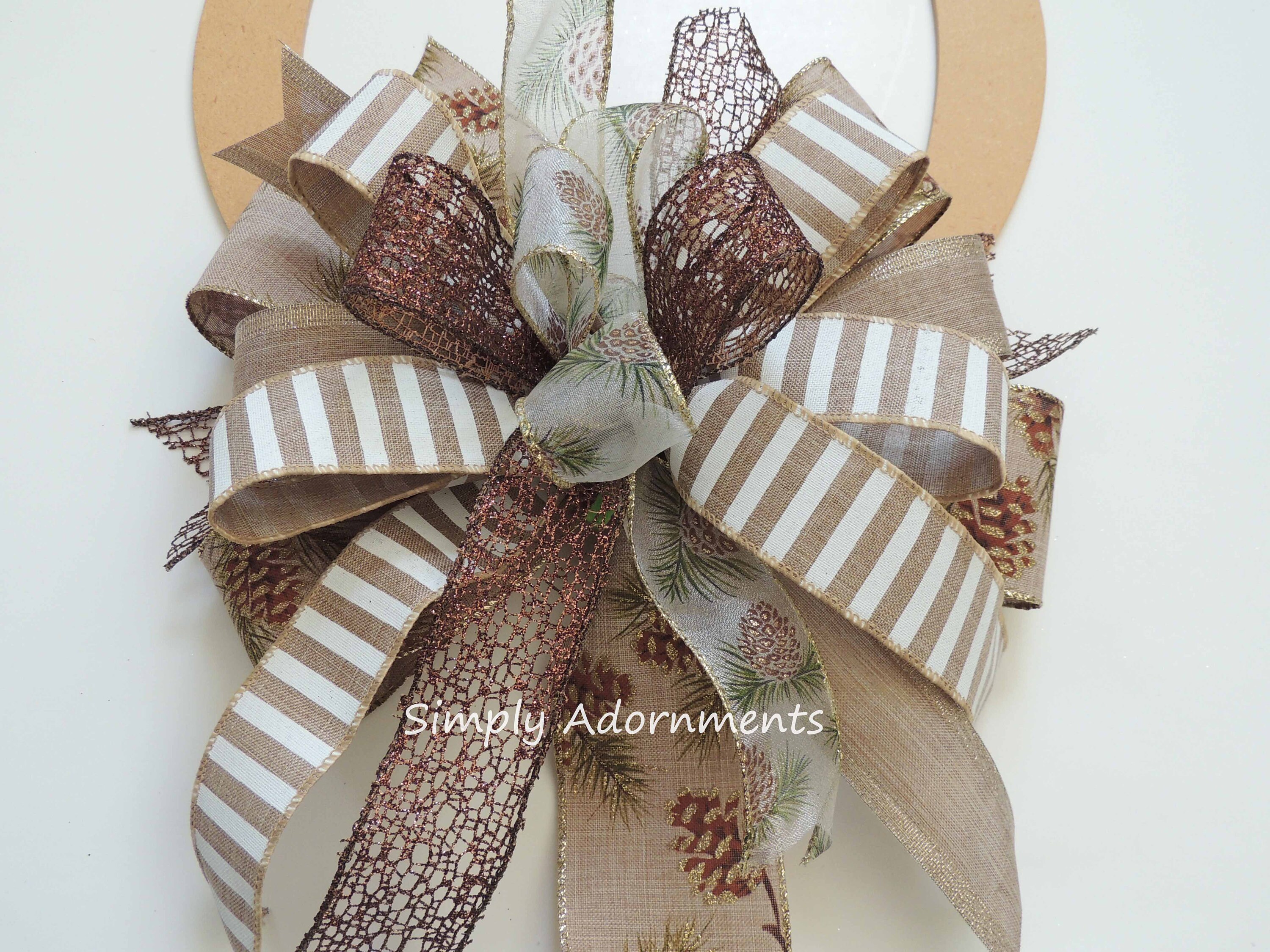 Farmhouse Pine Cones Christmas Tree Bow, Farmhouse Christmas Bow, Neutral brown Christmas Pine cones Bow, Whimsical Brown Tan Farmhouse Bow bow