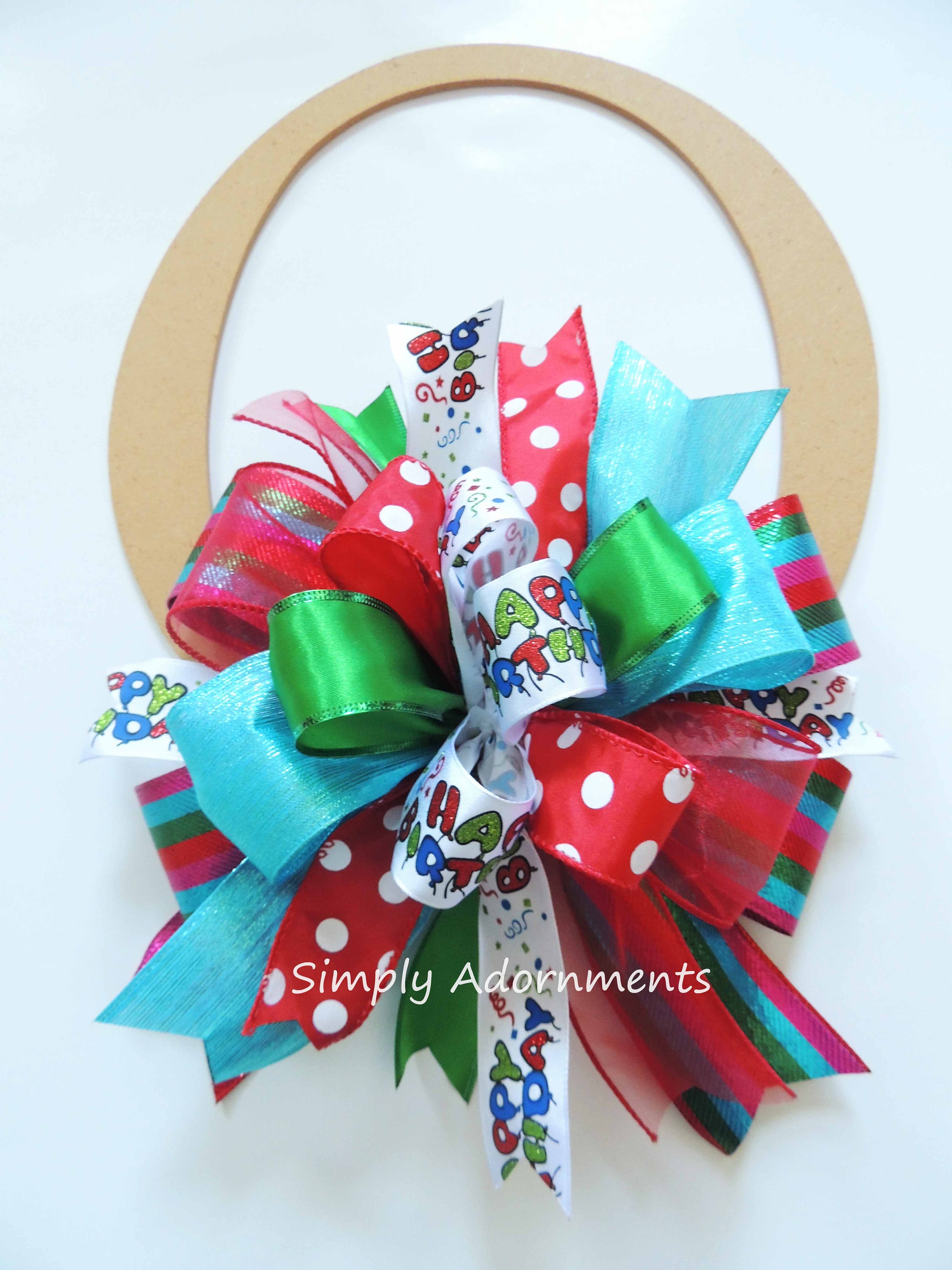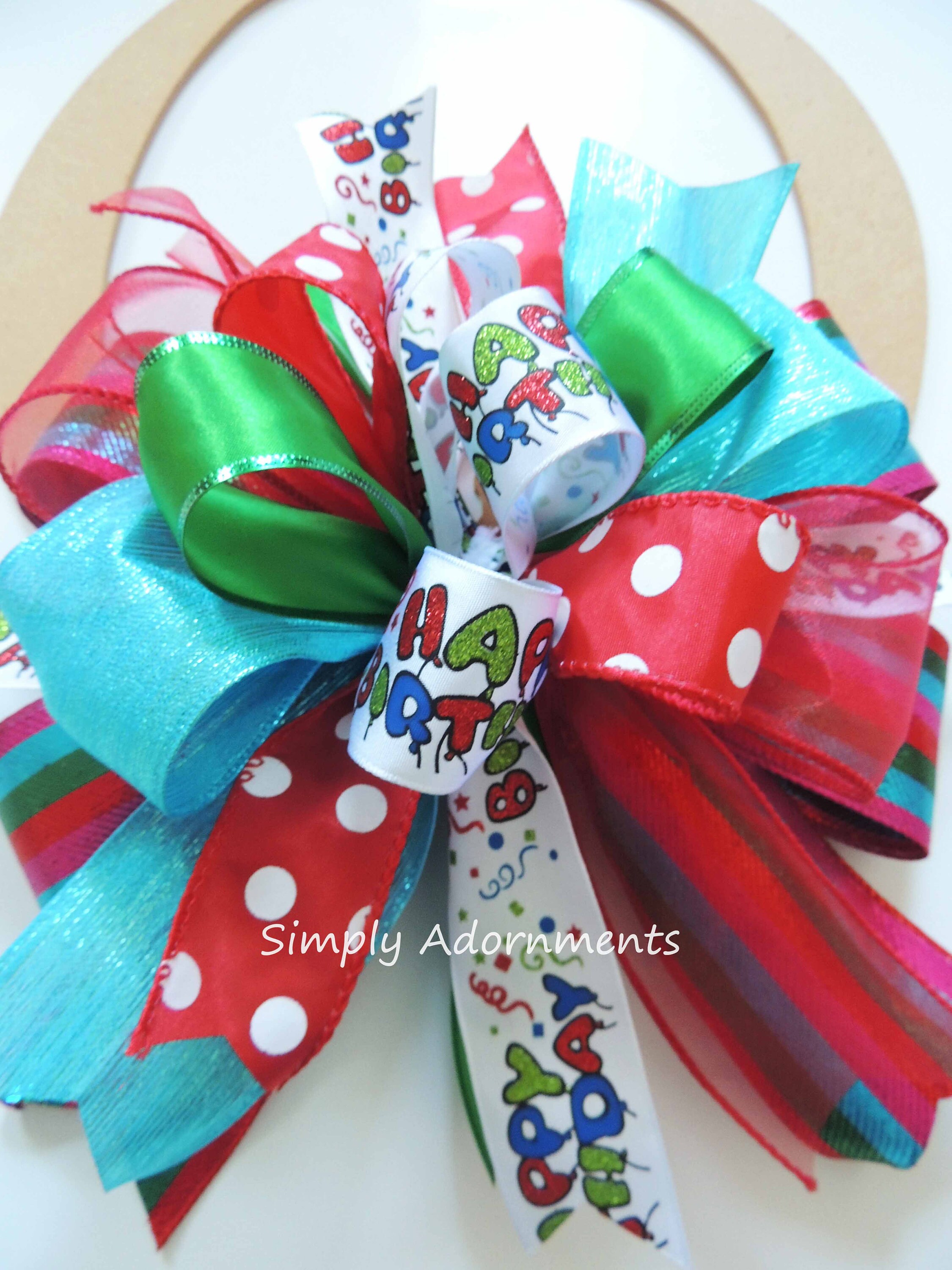 Happy Birthday Scripts Bow, Multi-colored Happy Birthday Scripts Bow, Happy Birthday Door bow, Handmade Birthday Gift bow, Birthday Gift Bow