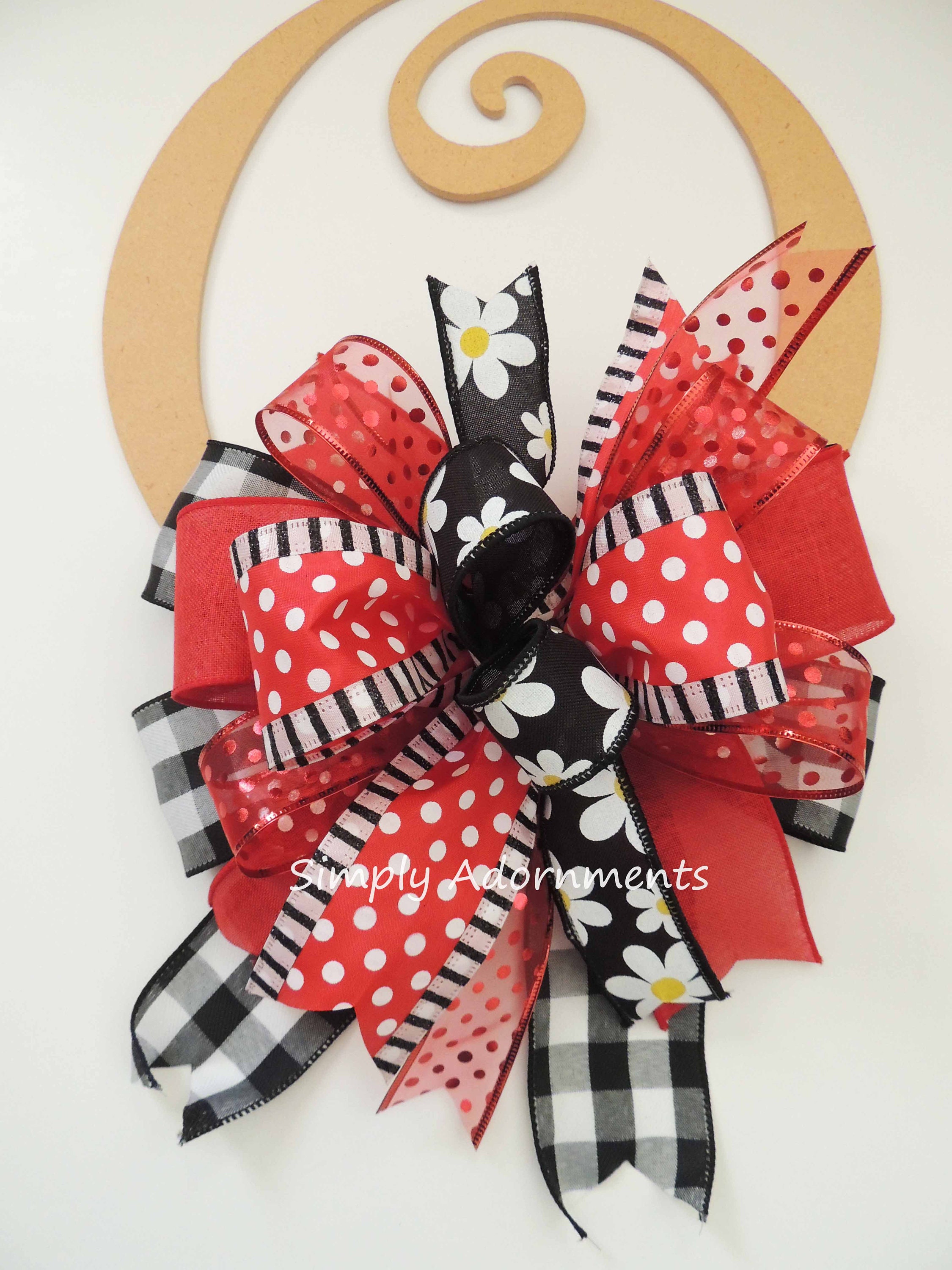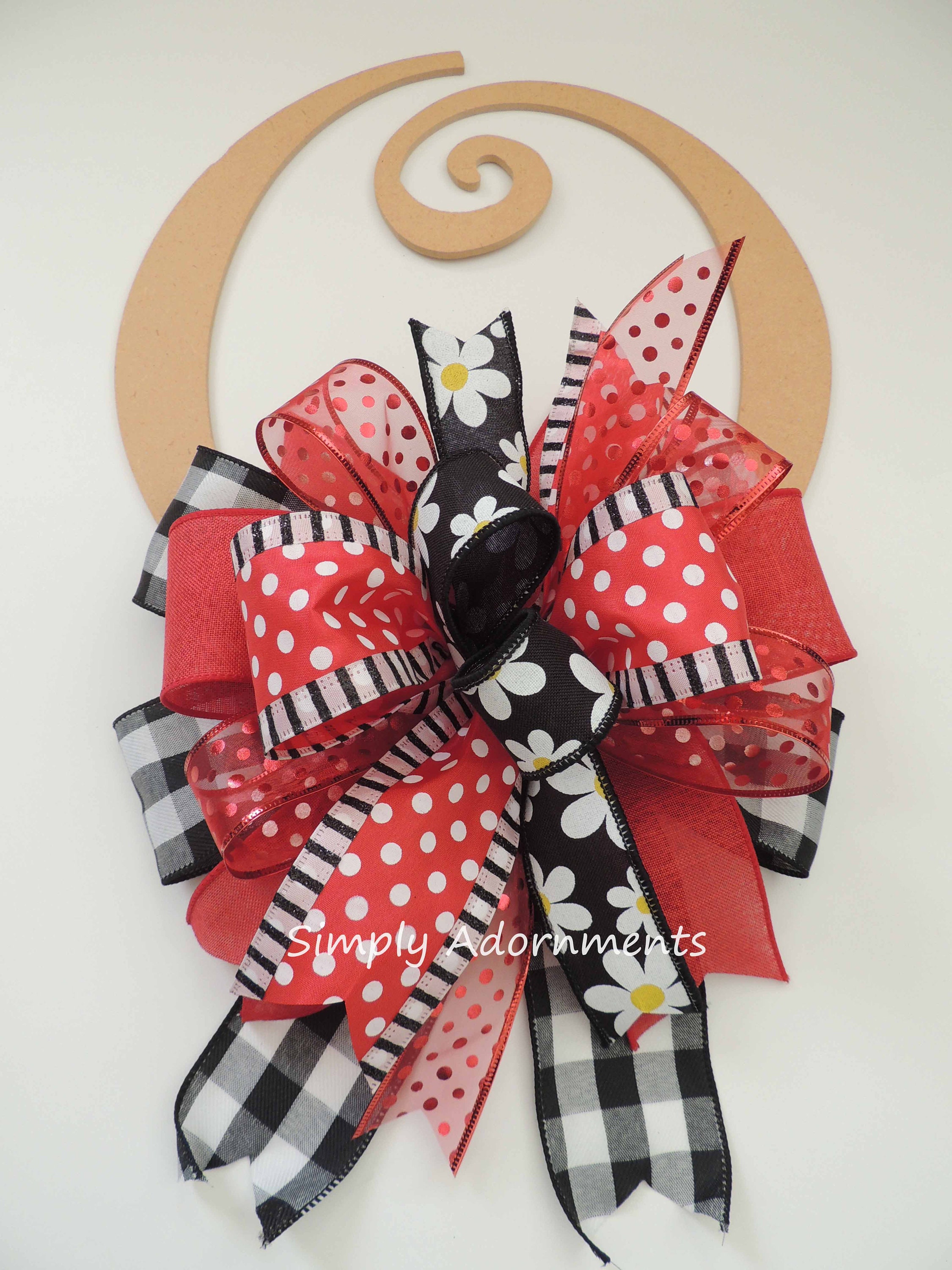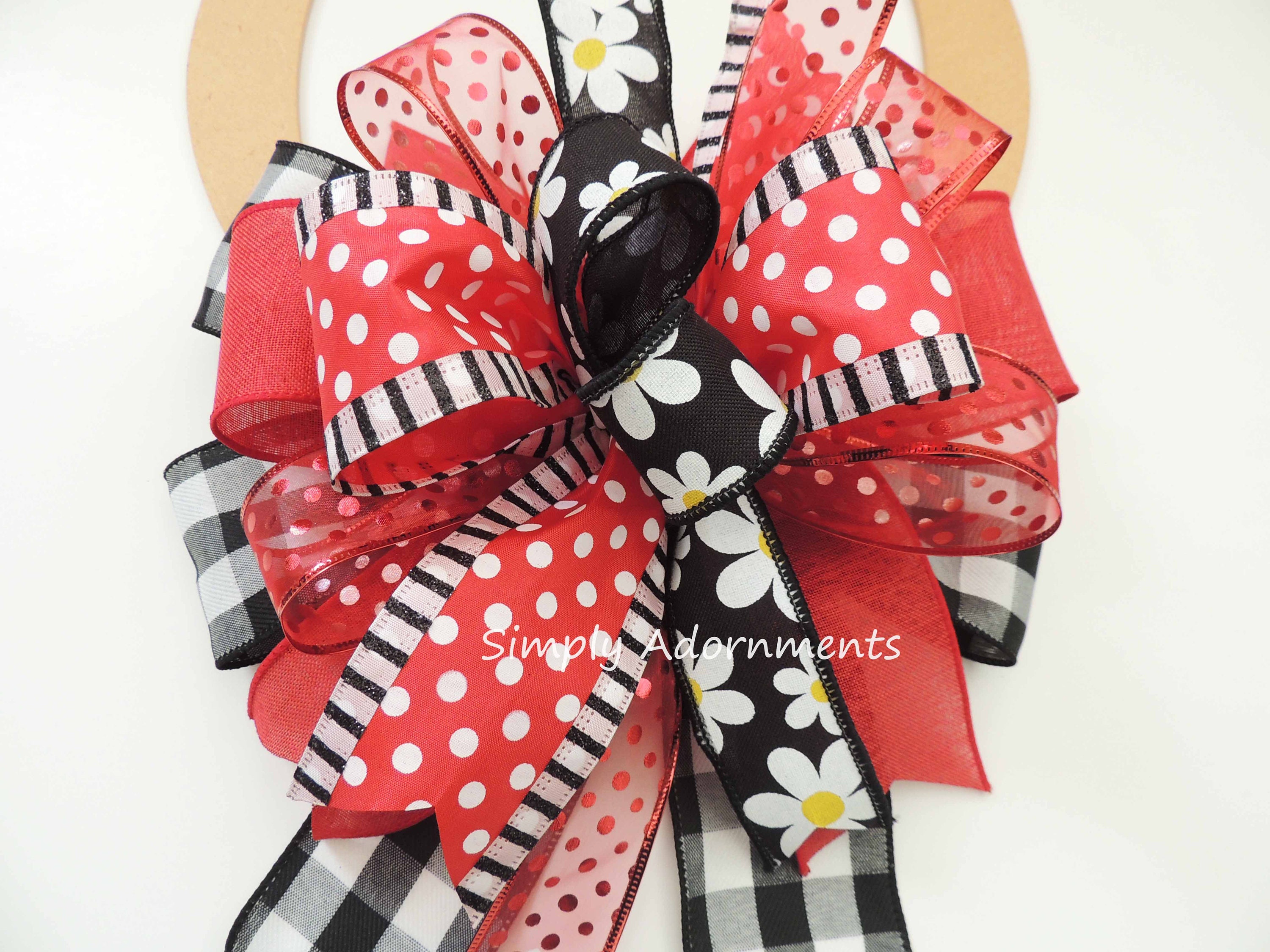 Black Red Bow, Red black Wreath Bow, Summer flowers lantern bow, Summer Wreath door Bow, Red black themed decor, Striped dot bow, gift bow