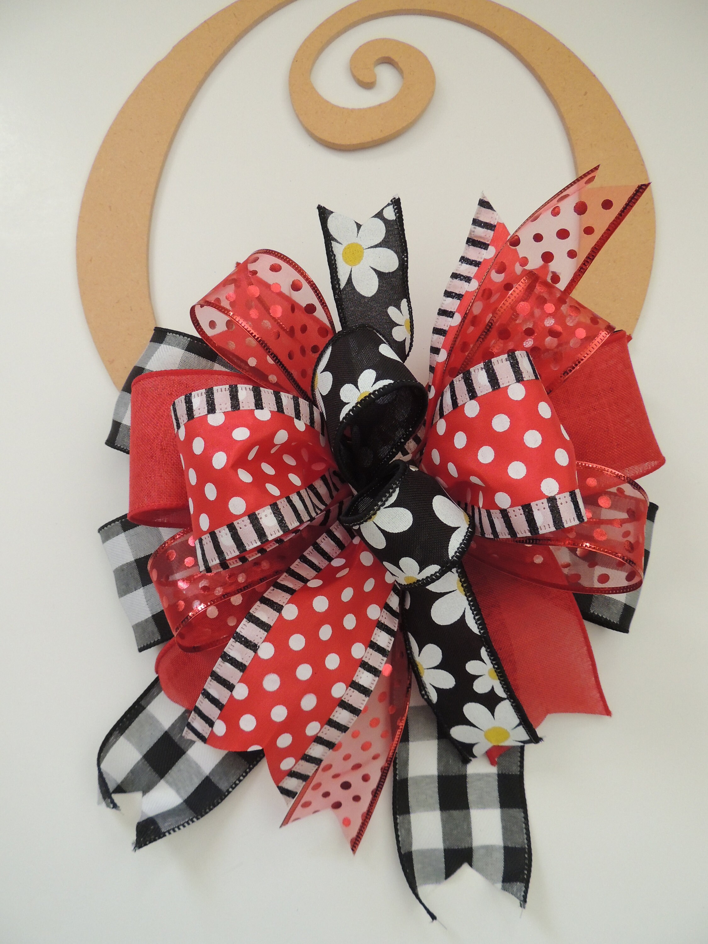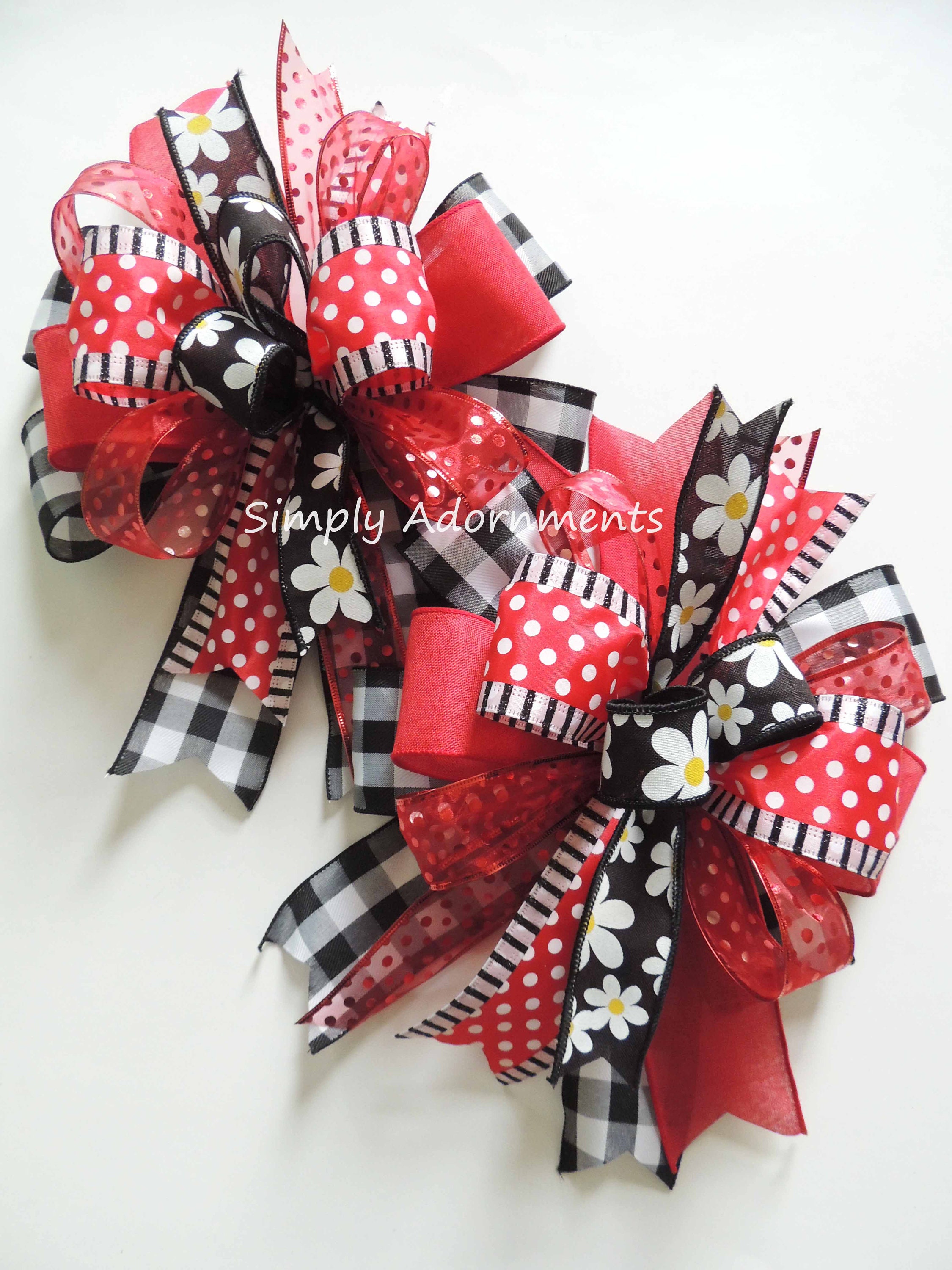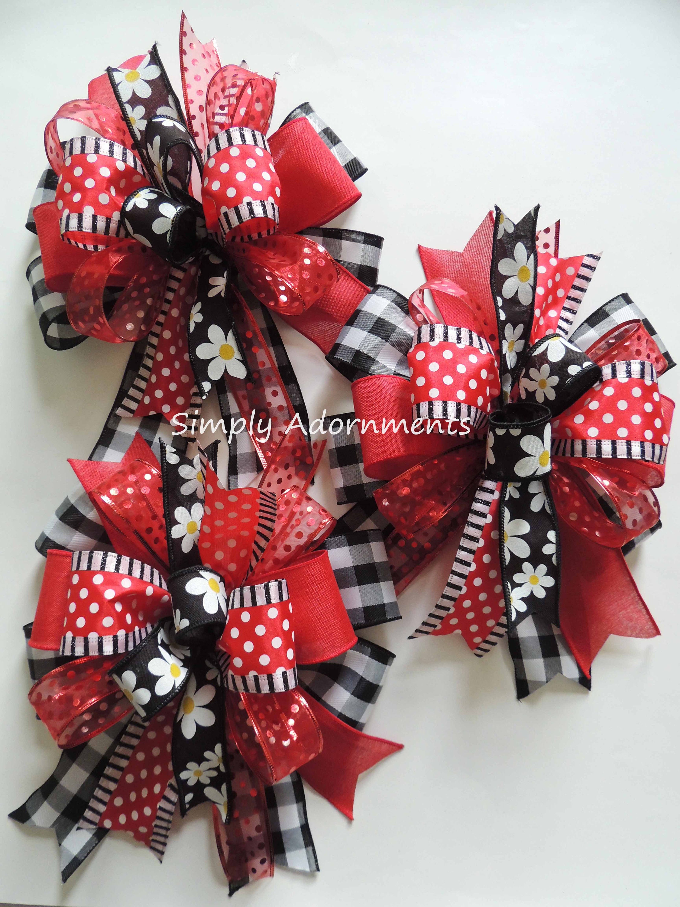 Black Red Bow, Red black Wreath Bow, Summer flowers lantern bow, Summer Wreath door Bow, Red black themed decor, Striped dot bow, gift bow