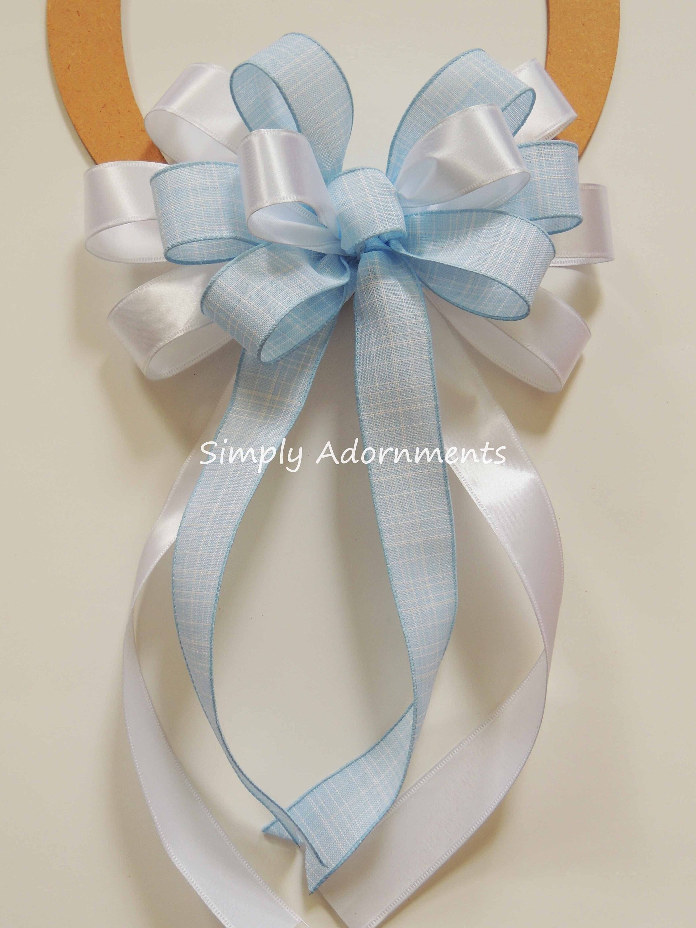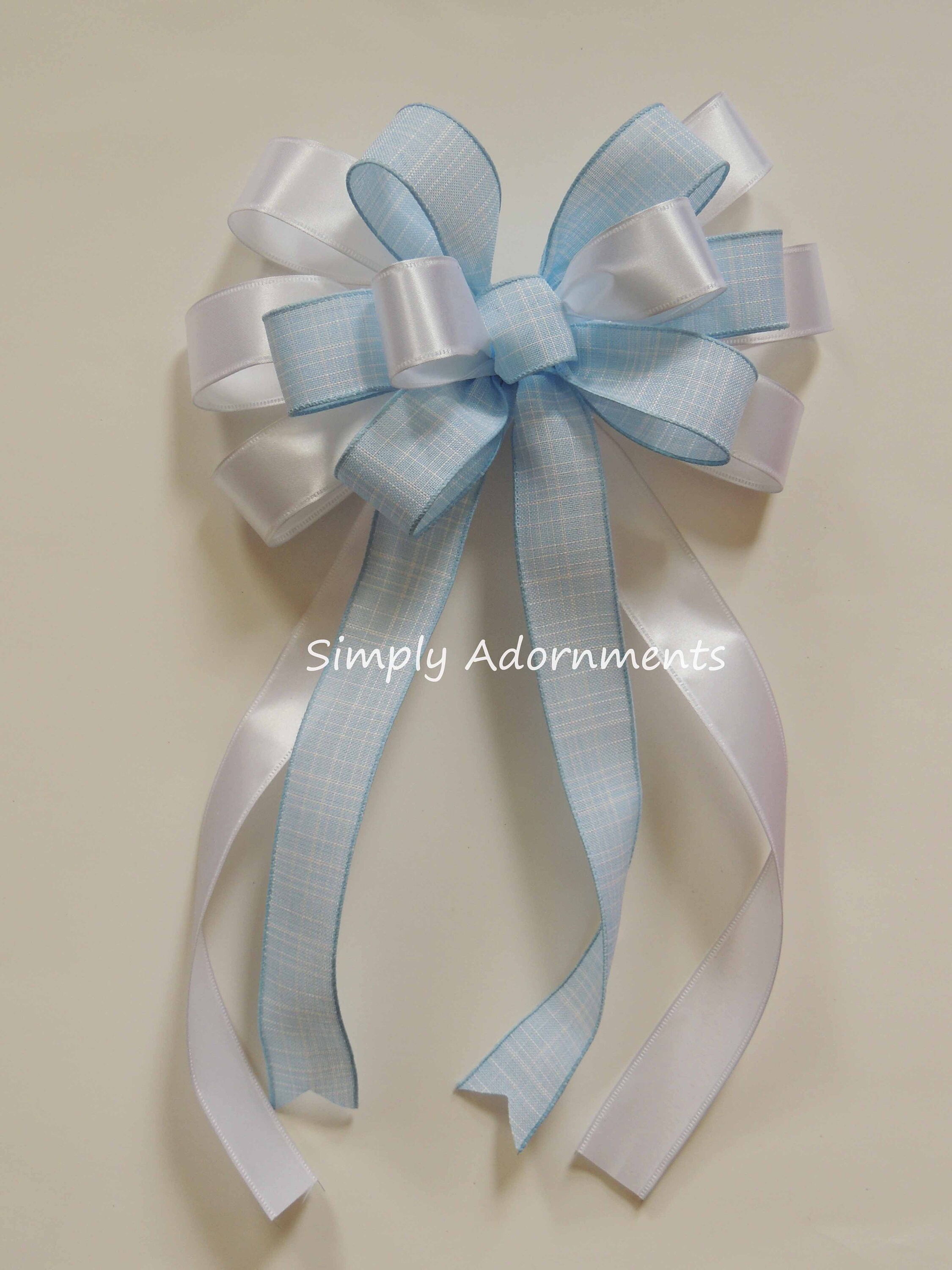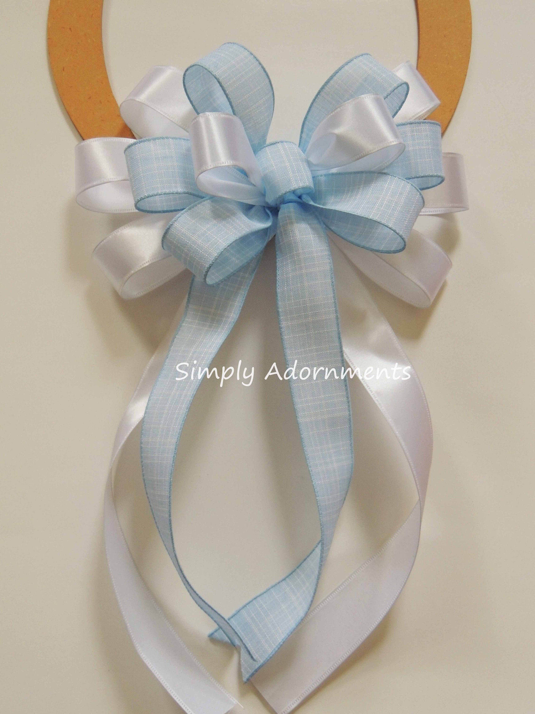 Blue White Wreath Bow, Blue Baby shower Bow, Blue Birthday Sign bow, Blue white baby Boy Bow, Lantern Bow, Basket gift bow, Front porch bow