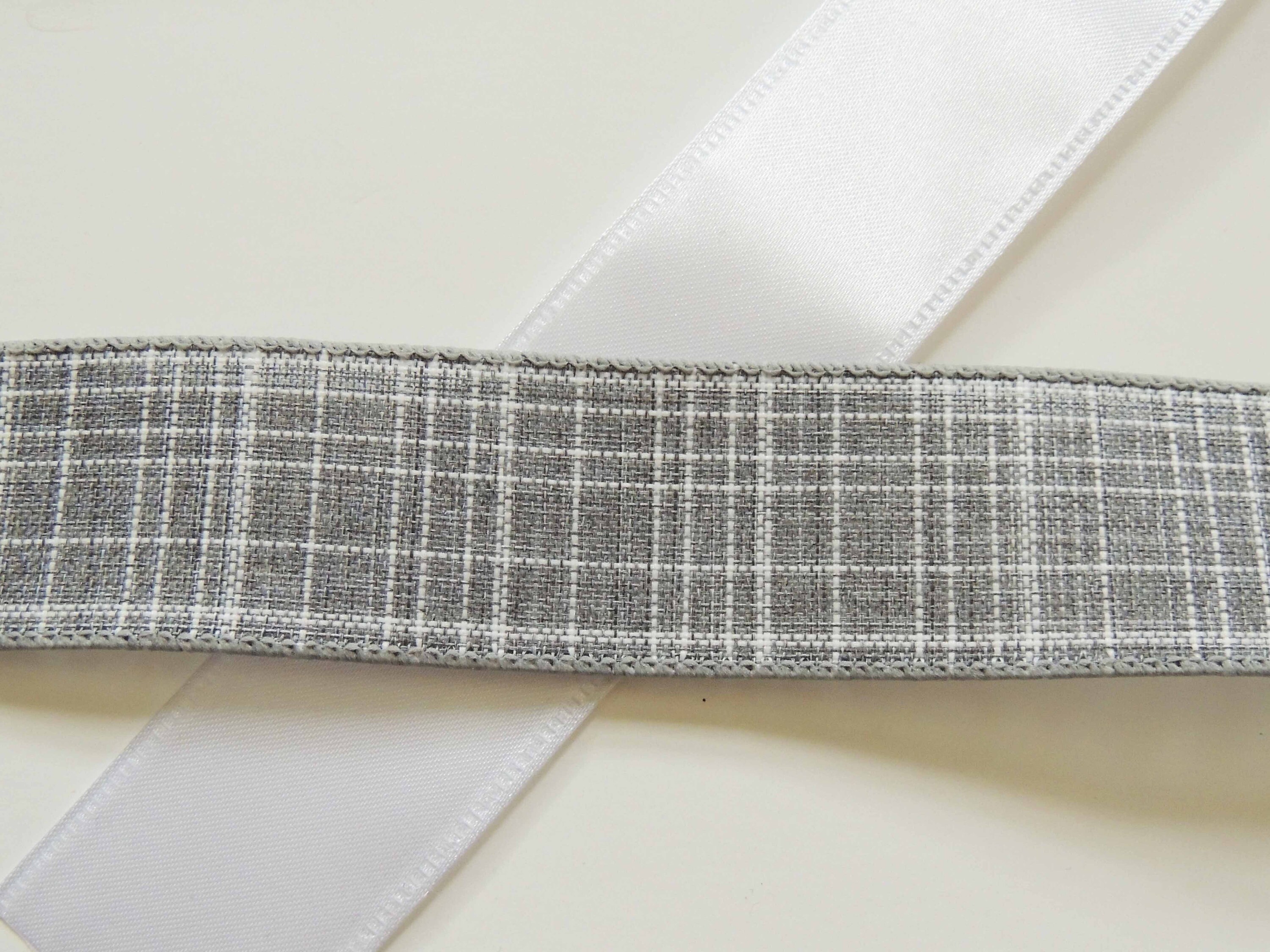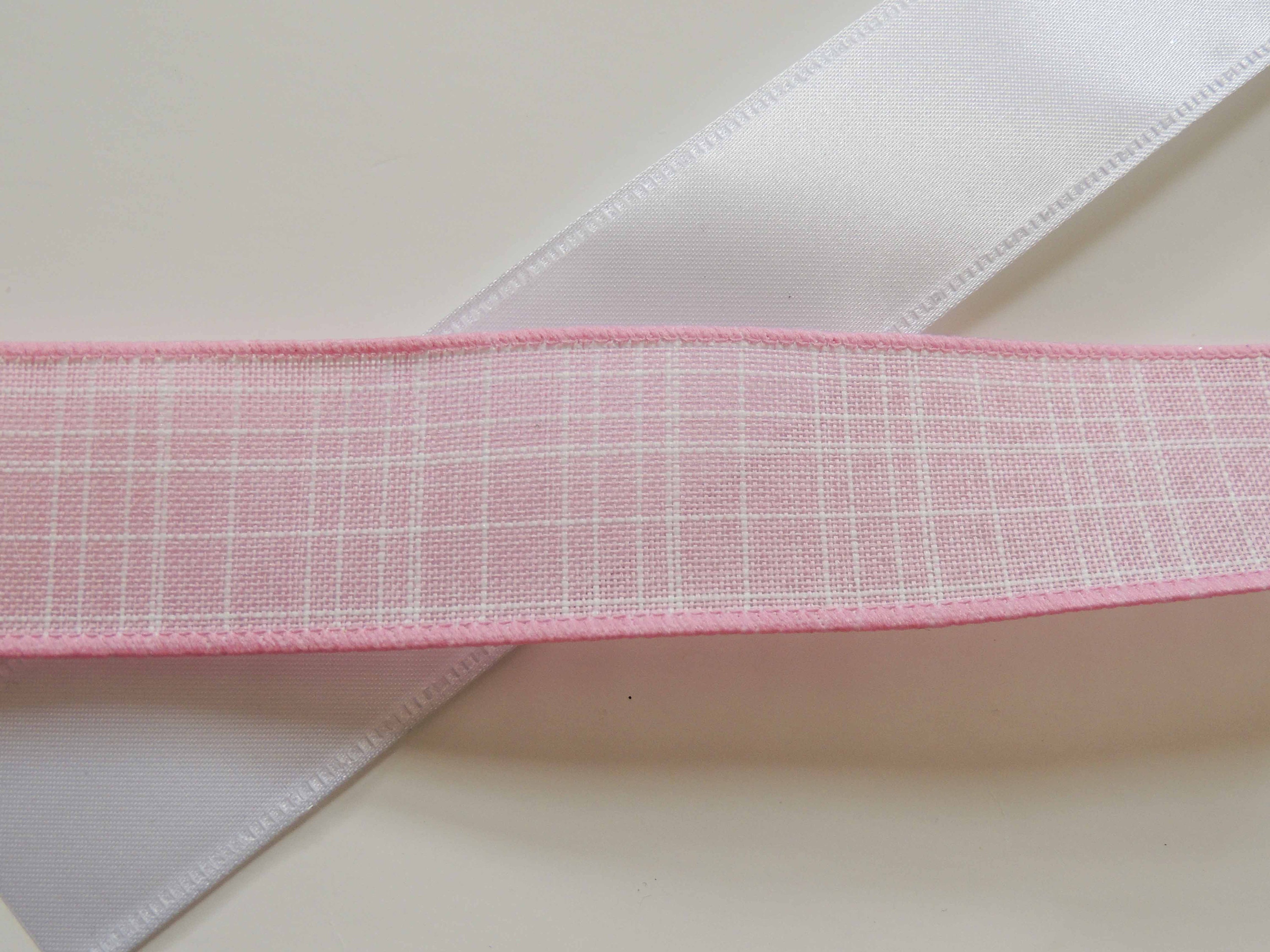 This pretty bow is created with 1.5" wide white satin and a 1.5" wide pink (or Lavender) linen wired ribbons; or pink and purple wired ribbons. It's 10" wide. Please select the BOW LENGTH and the COLOR COMBINATION options before checking out.