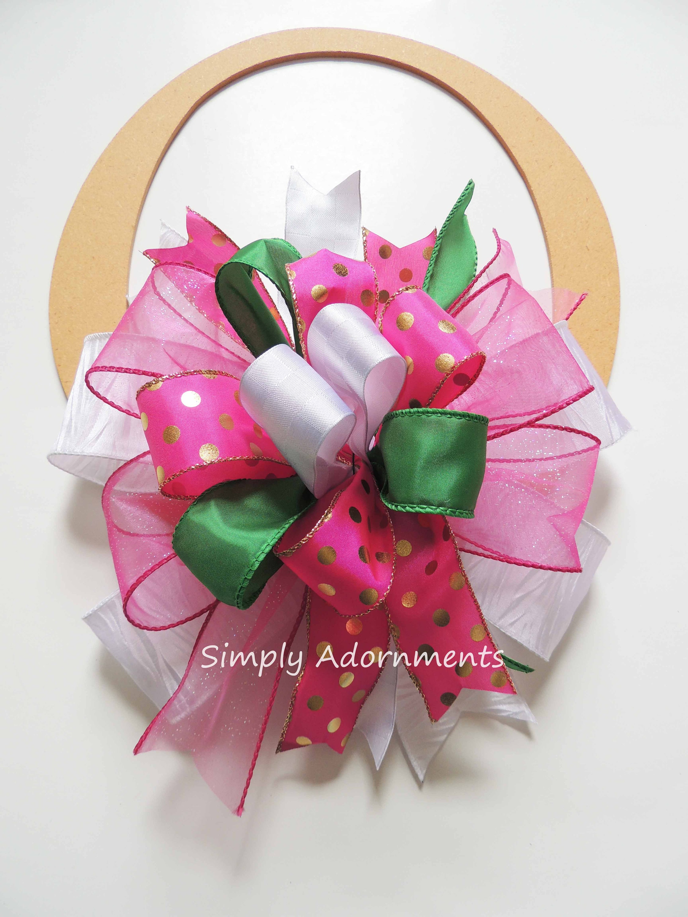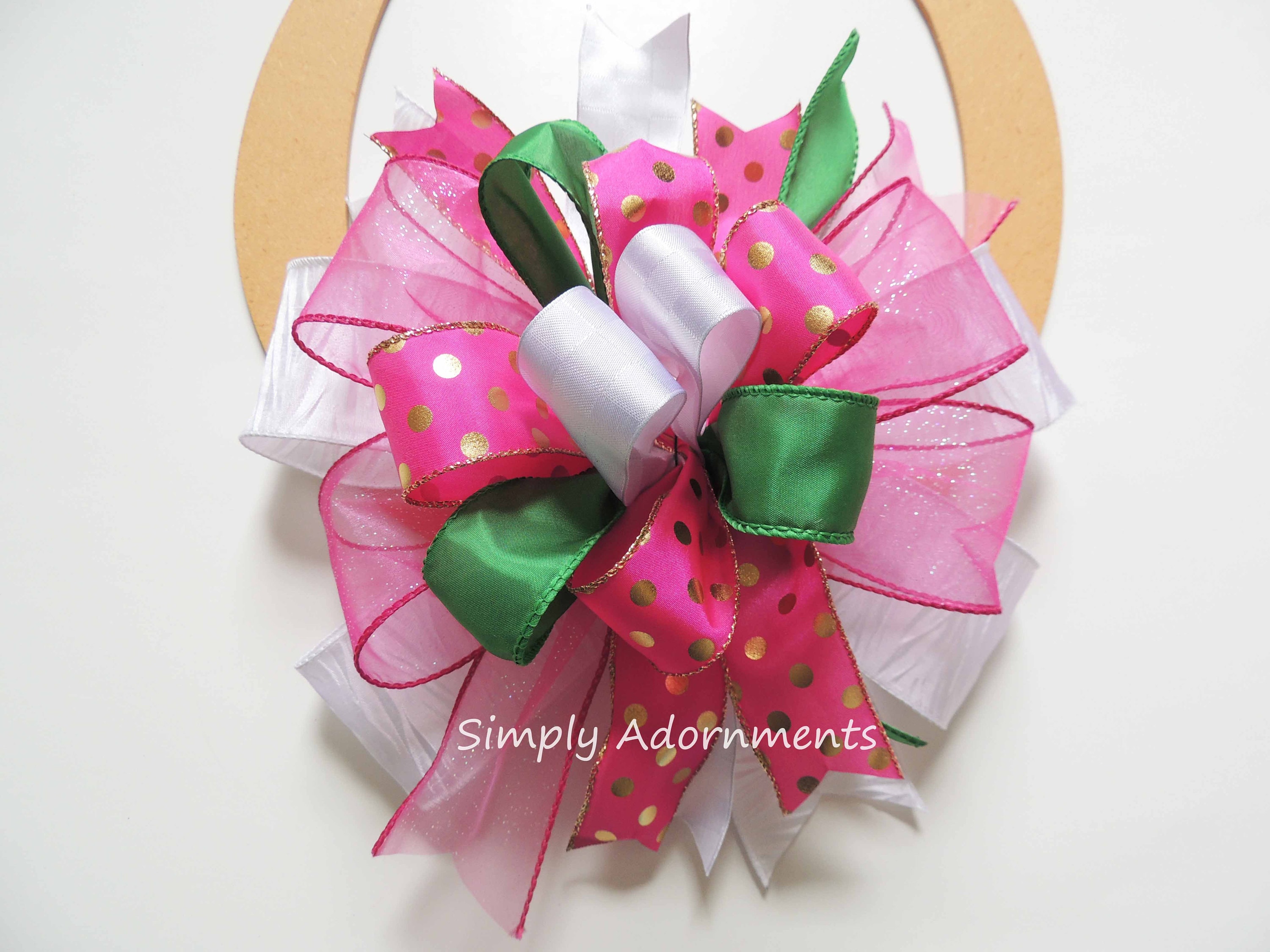 Pink Christmas bow, Pink White Tree Topper Bow, Pink white Christmas tree Bow, Pink White Tree Bow, Christmas Lantern bow, Pink gift box bow