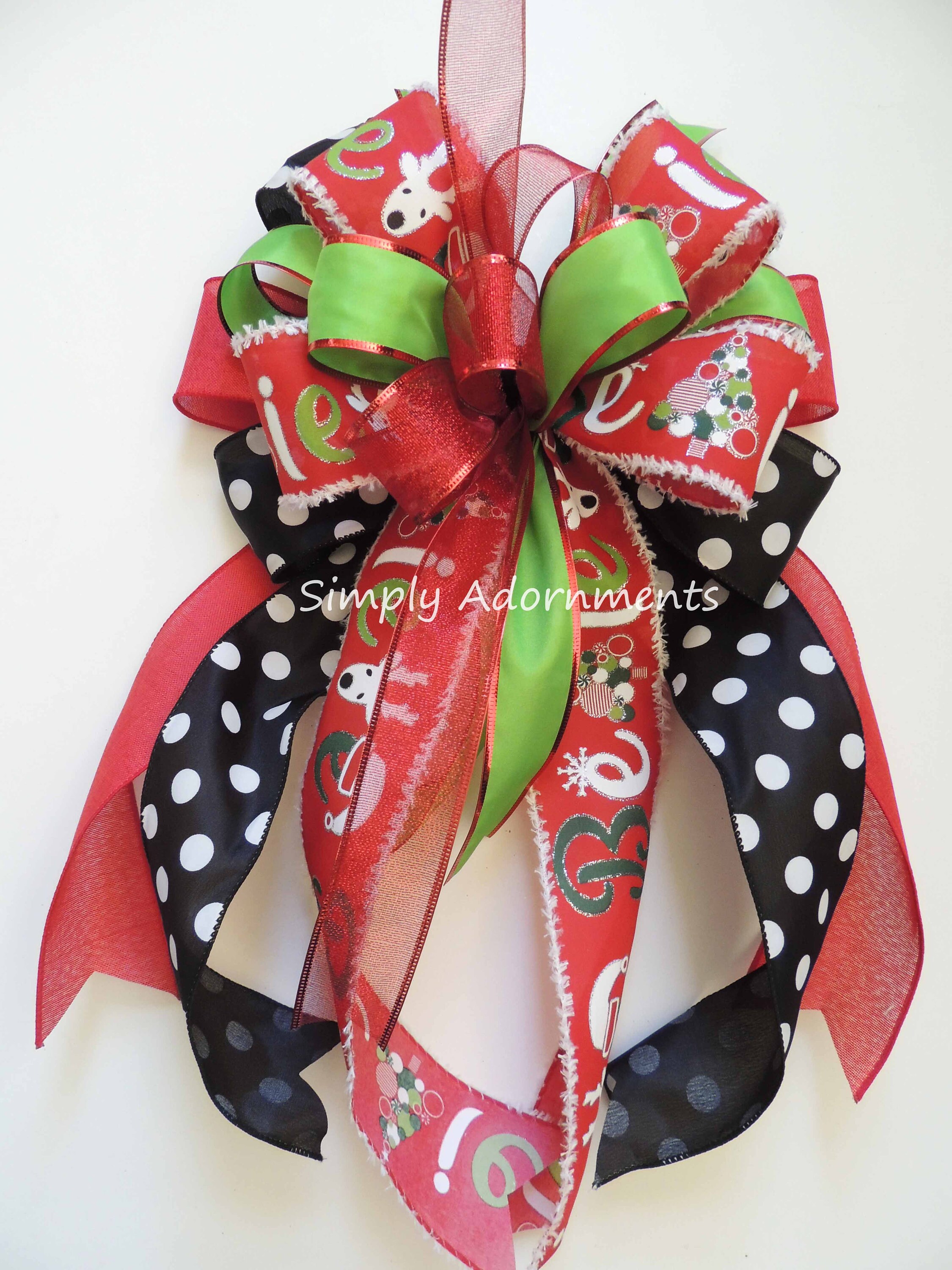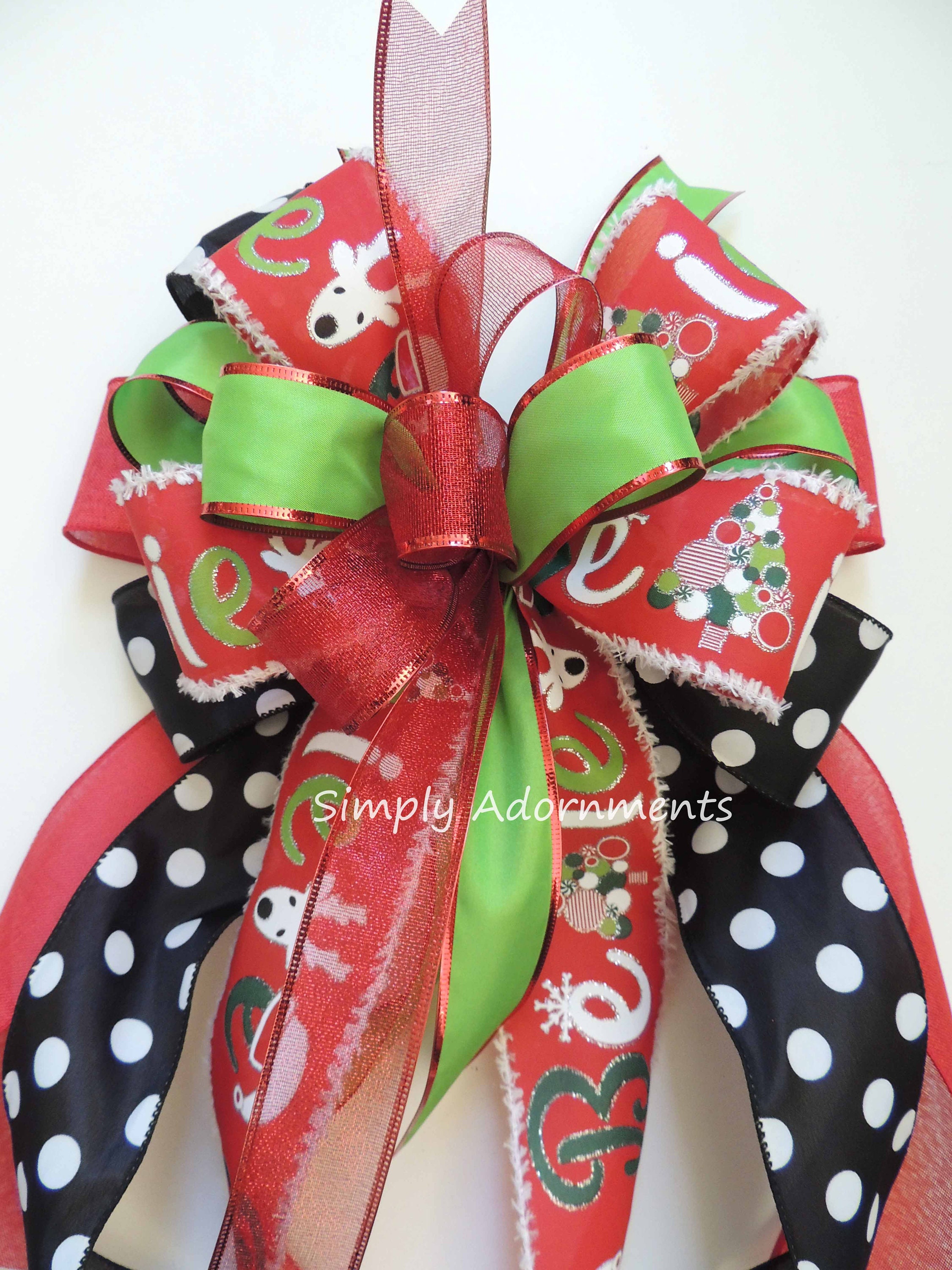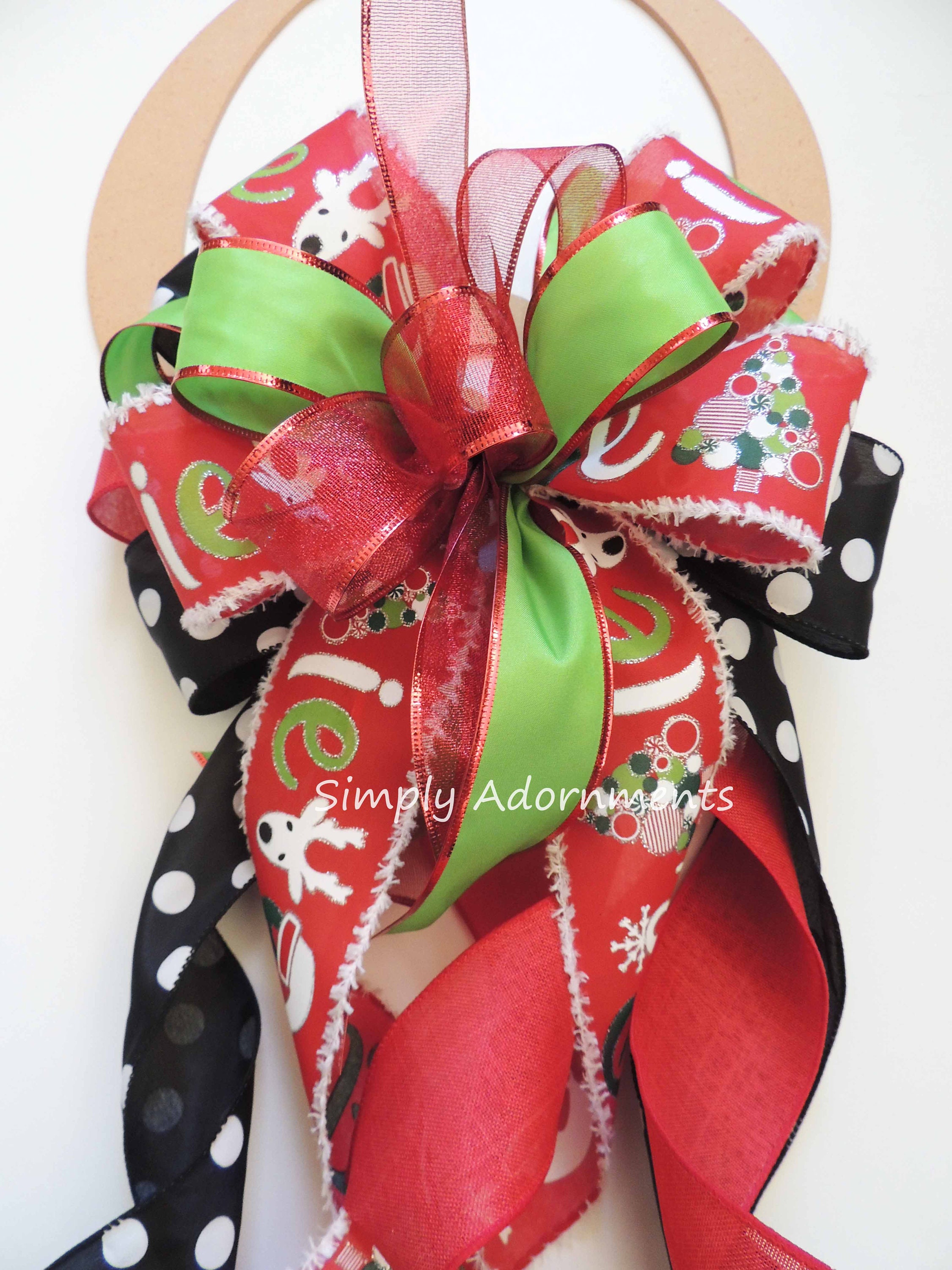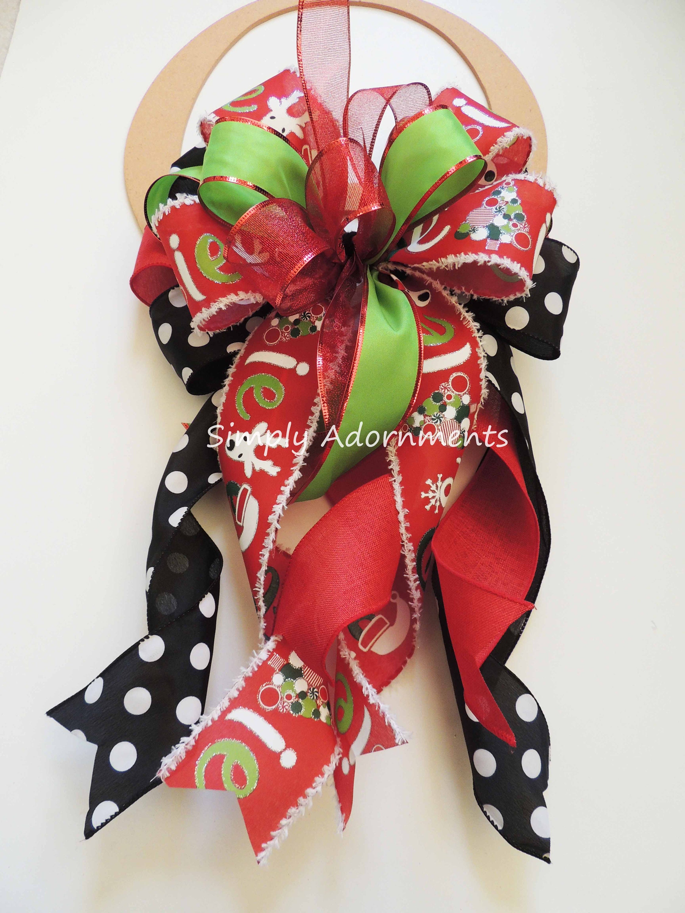 Red Green Christmas deer Bow, Whimsical Winter deer Christmas bow, Christmas Reindeer Wreath Bow, Deer head Christmas Tree Topper, Door bow