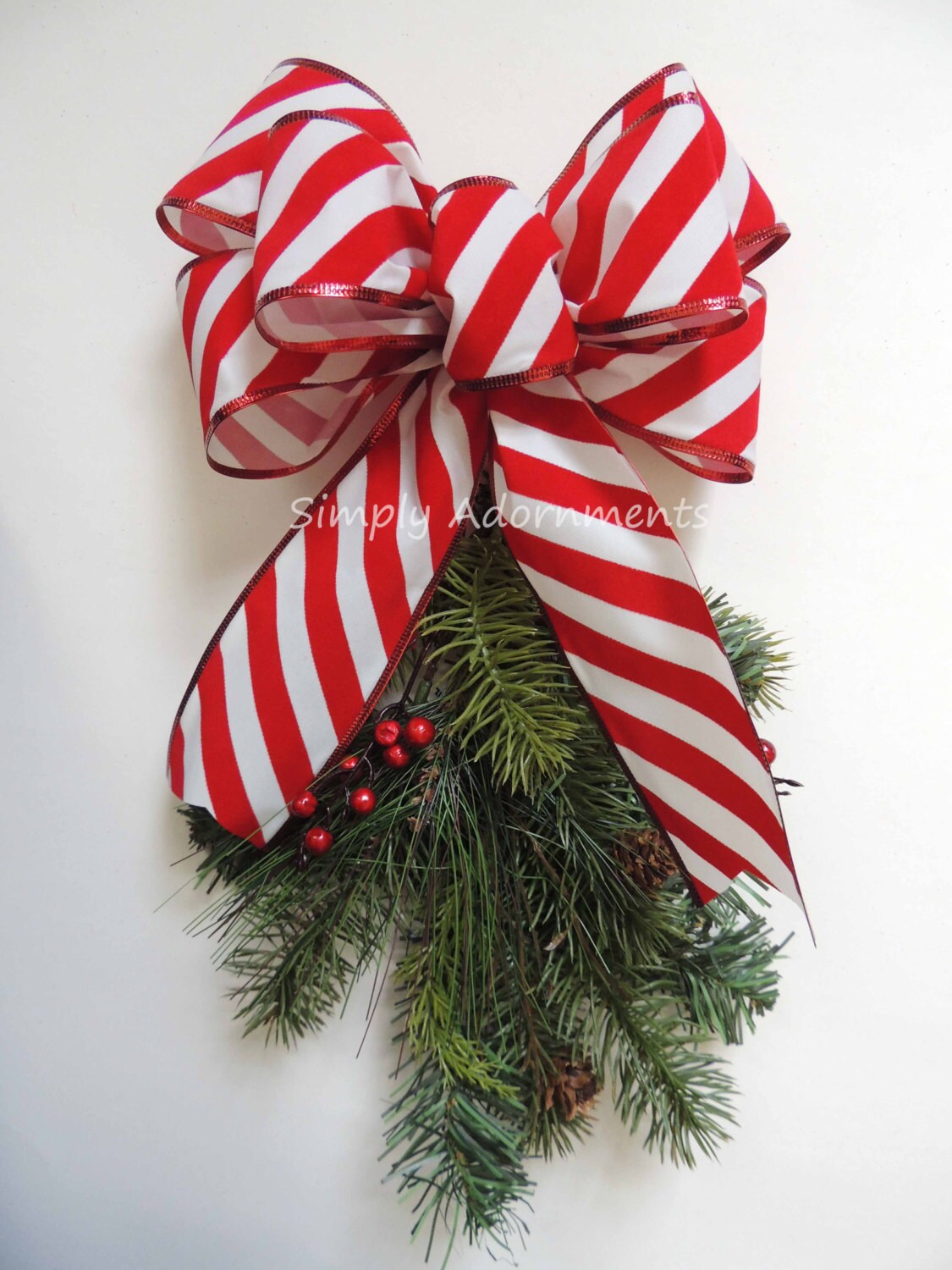 Christmas Candy Cane Bow, Outdoor Red White Christmas Bow, Mailbox Christmas Candy Cane Bow, Candy cane porch light bow, Christmas door Bow