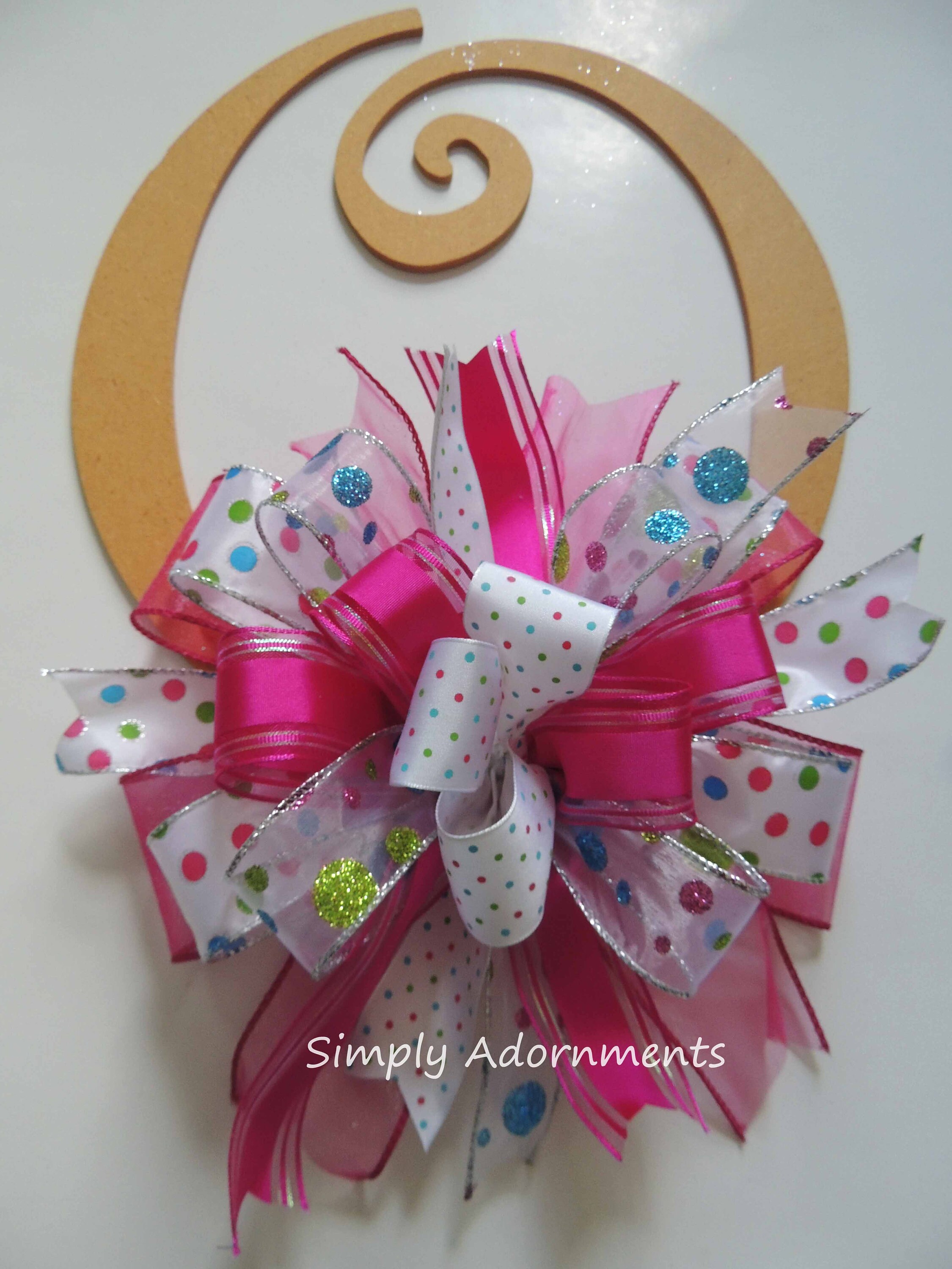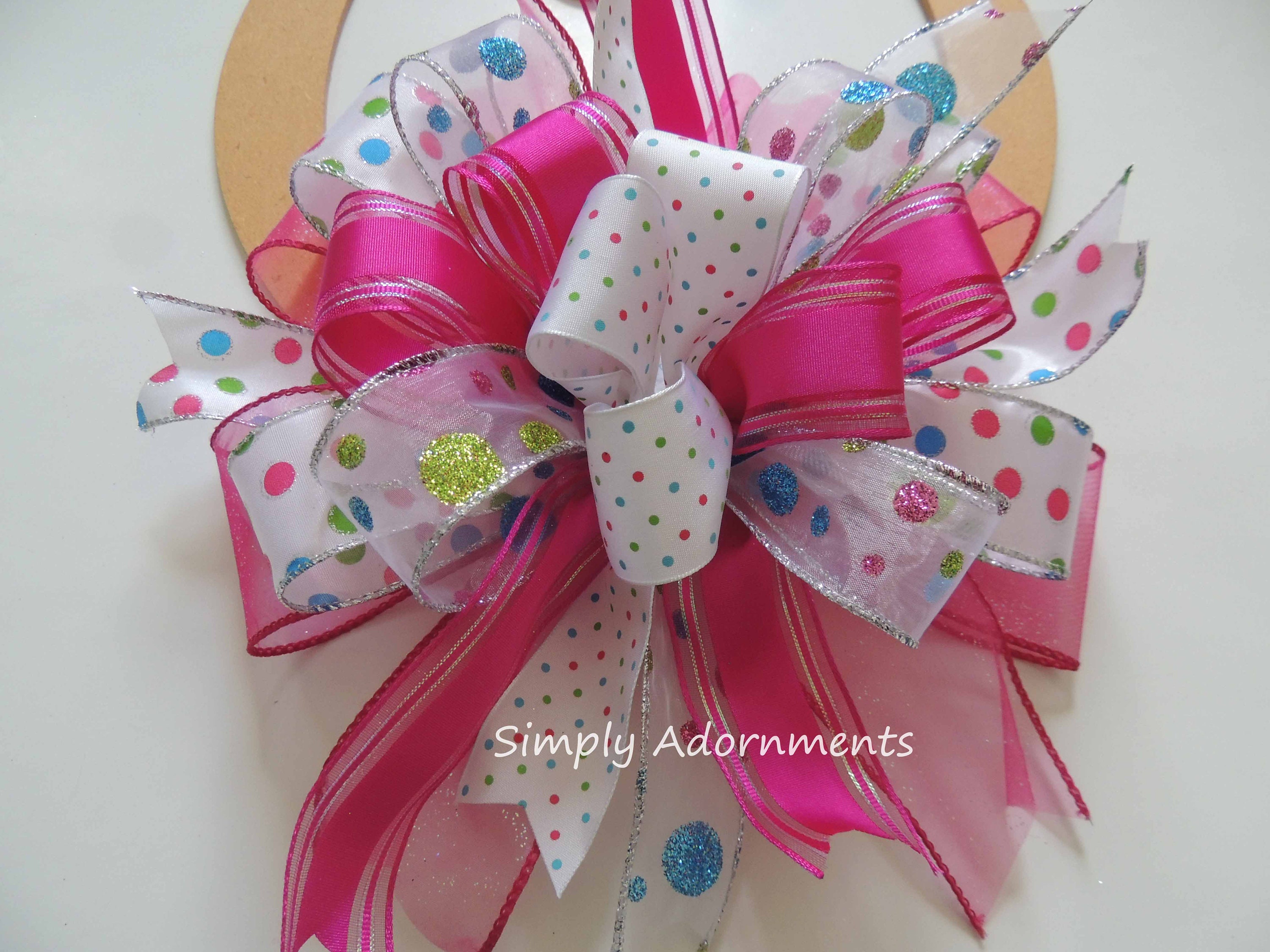 Pink Christmas bow, Hot Pink Tree bow, Pink Polka Dots Bow, Polka Dots Themed Party Decor, Christmas tree bow, Pink Lantern Bow, Gift bow