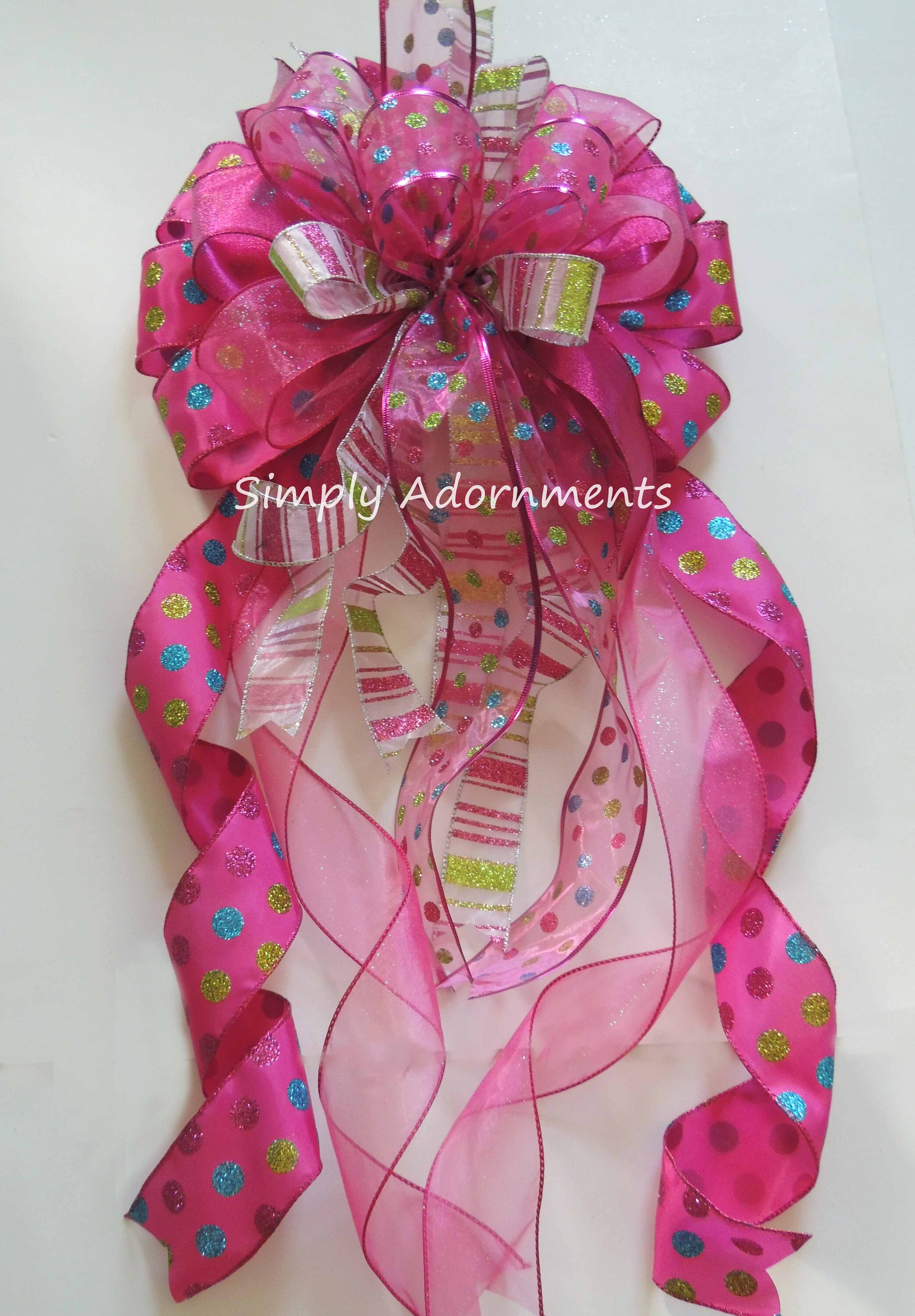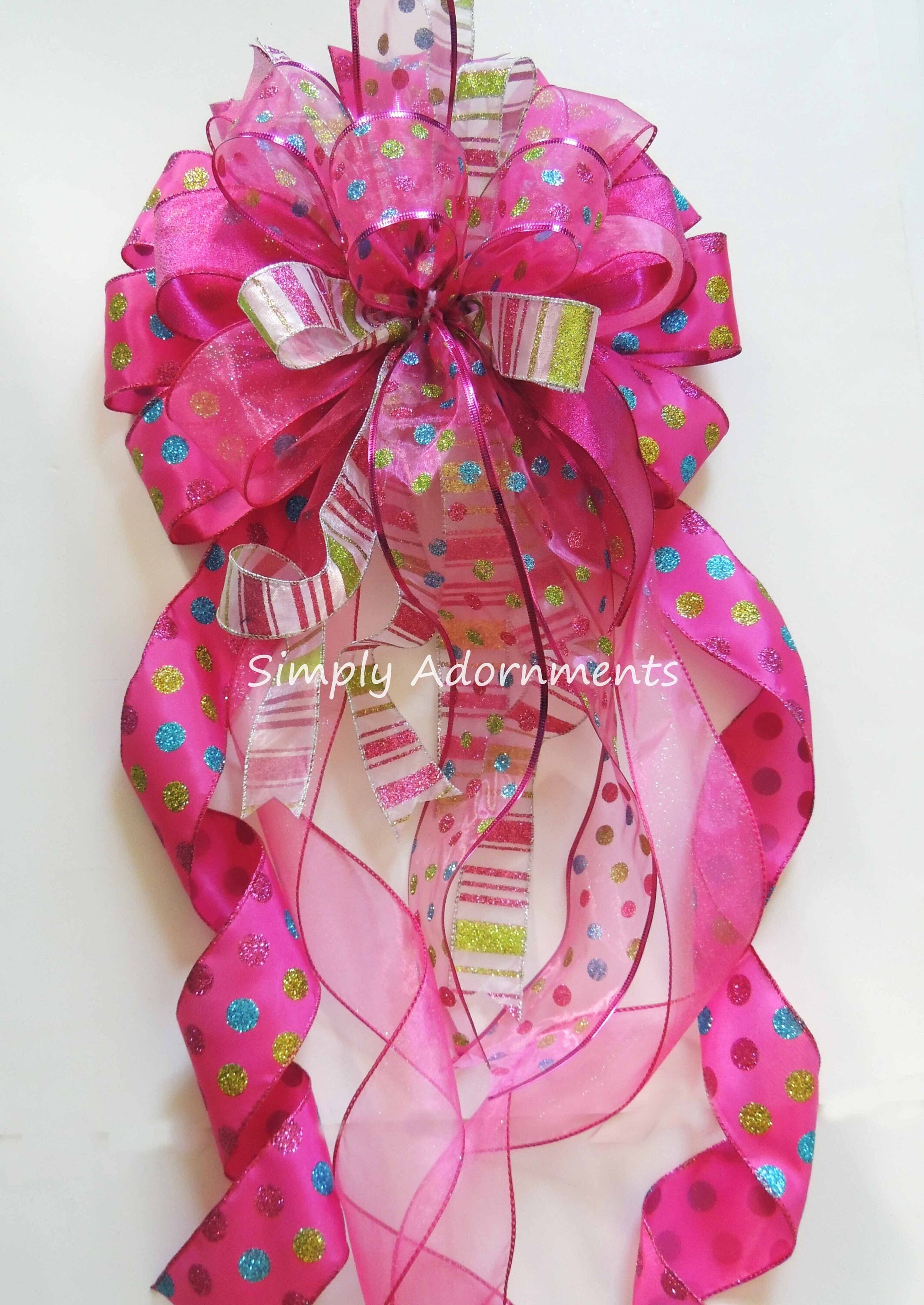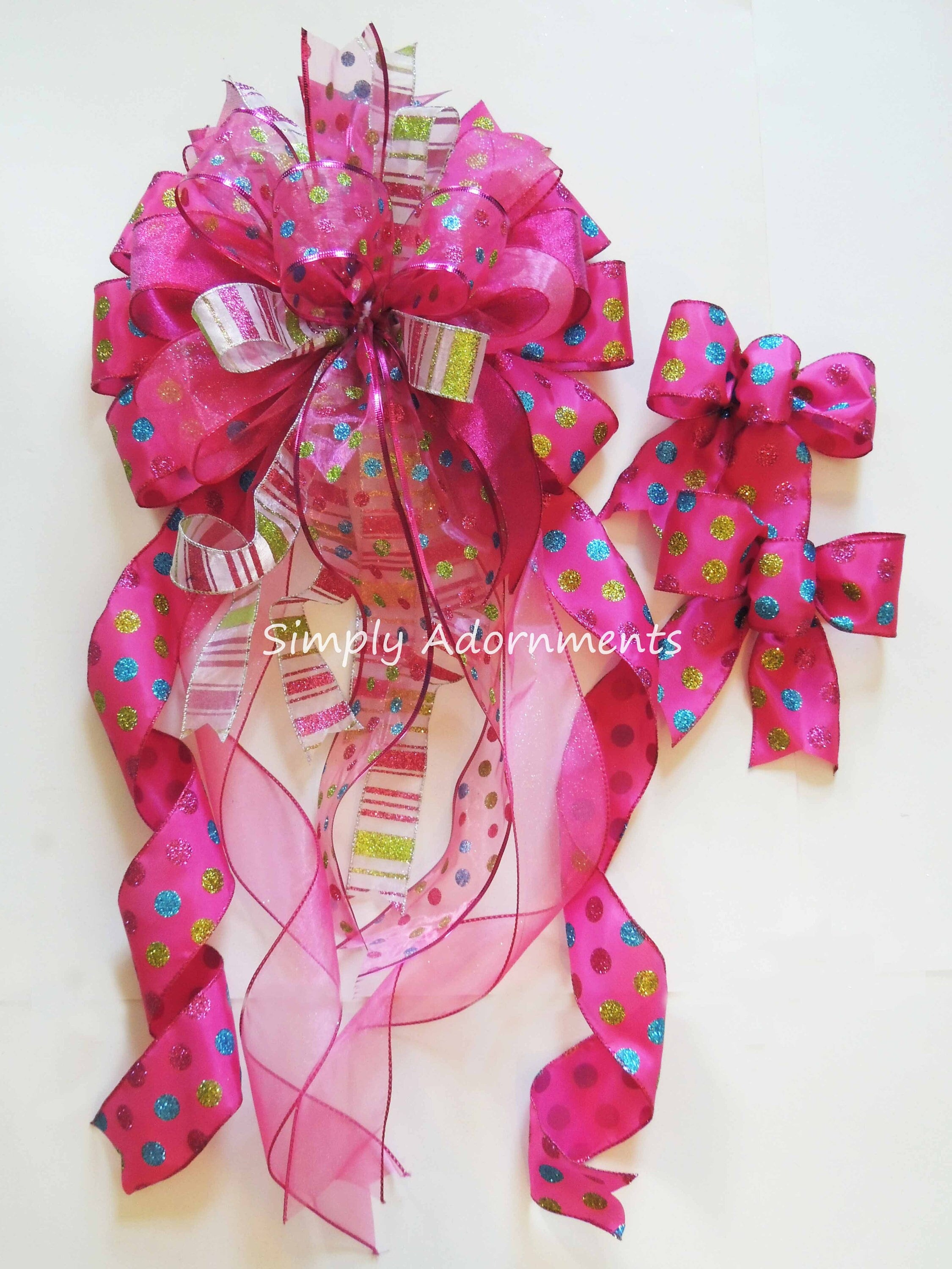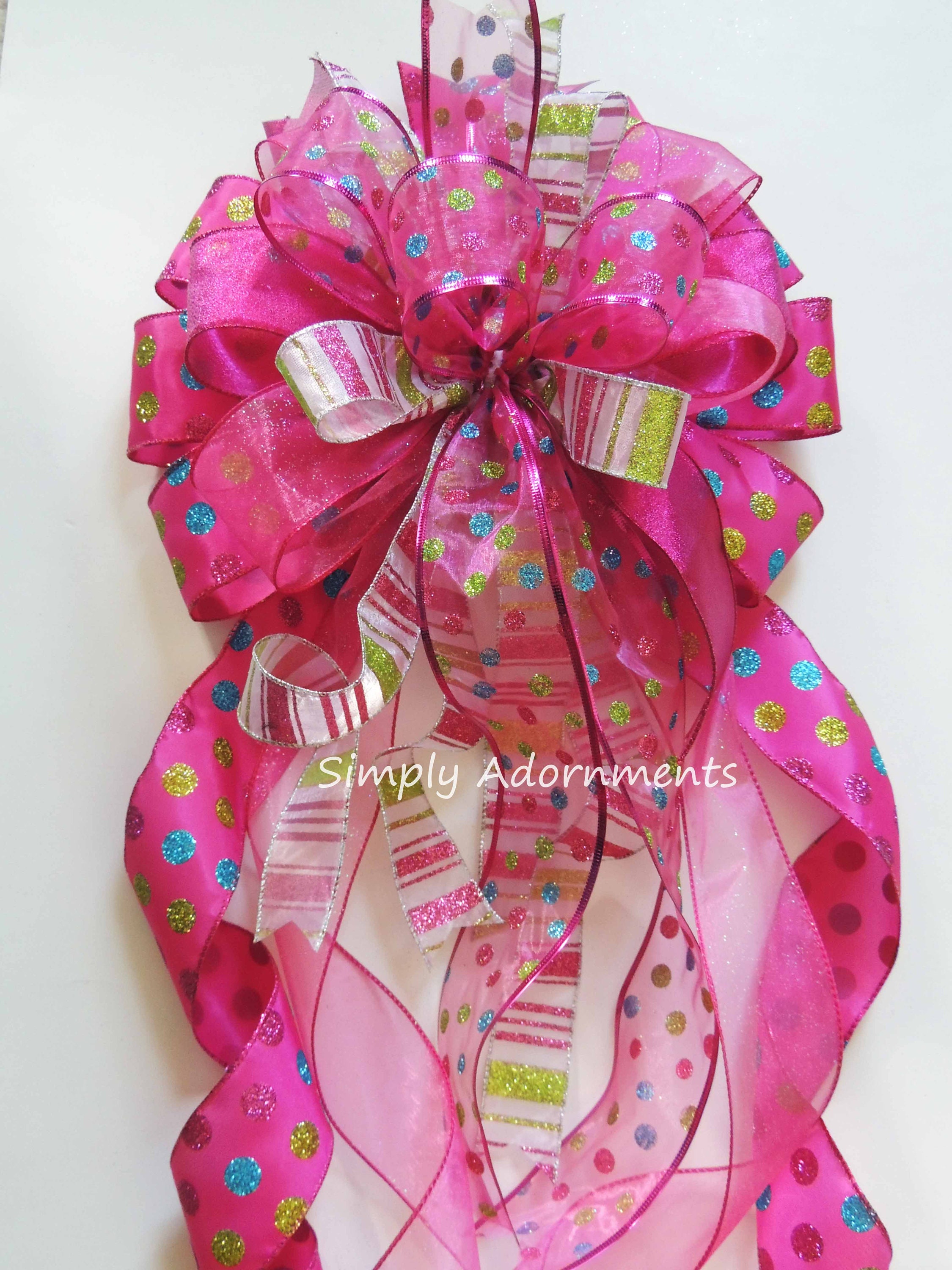 Pink Christmas Tree Topper Bow, Hot Pink Christmas tree Bow, X-Large Pink Tree Bow, Xlarge Christmas wreath bow, XLarge pink Xmas gift bow