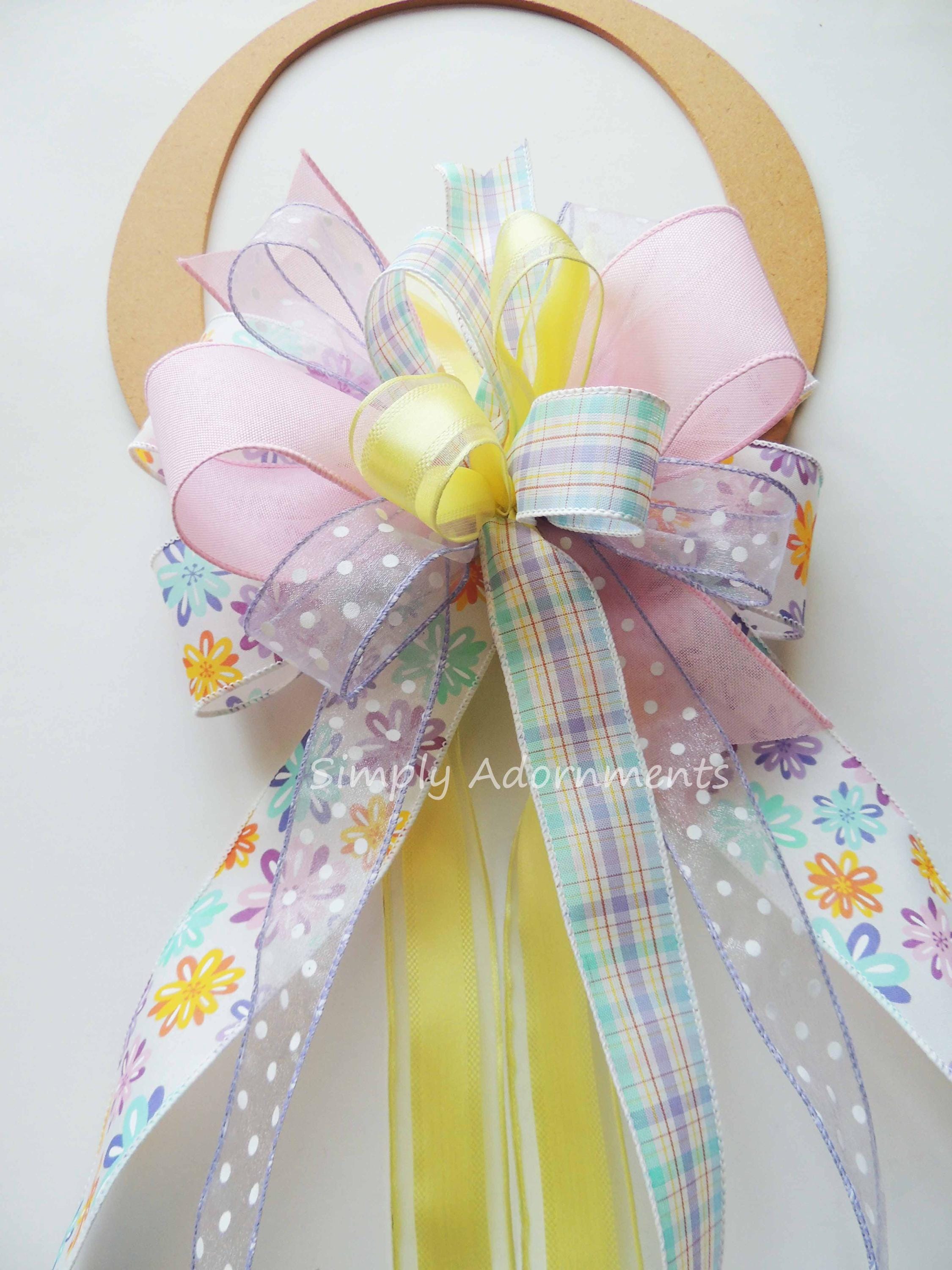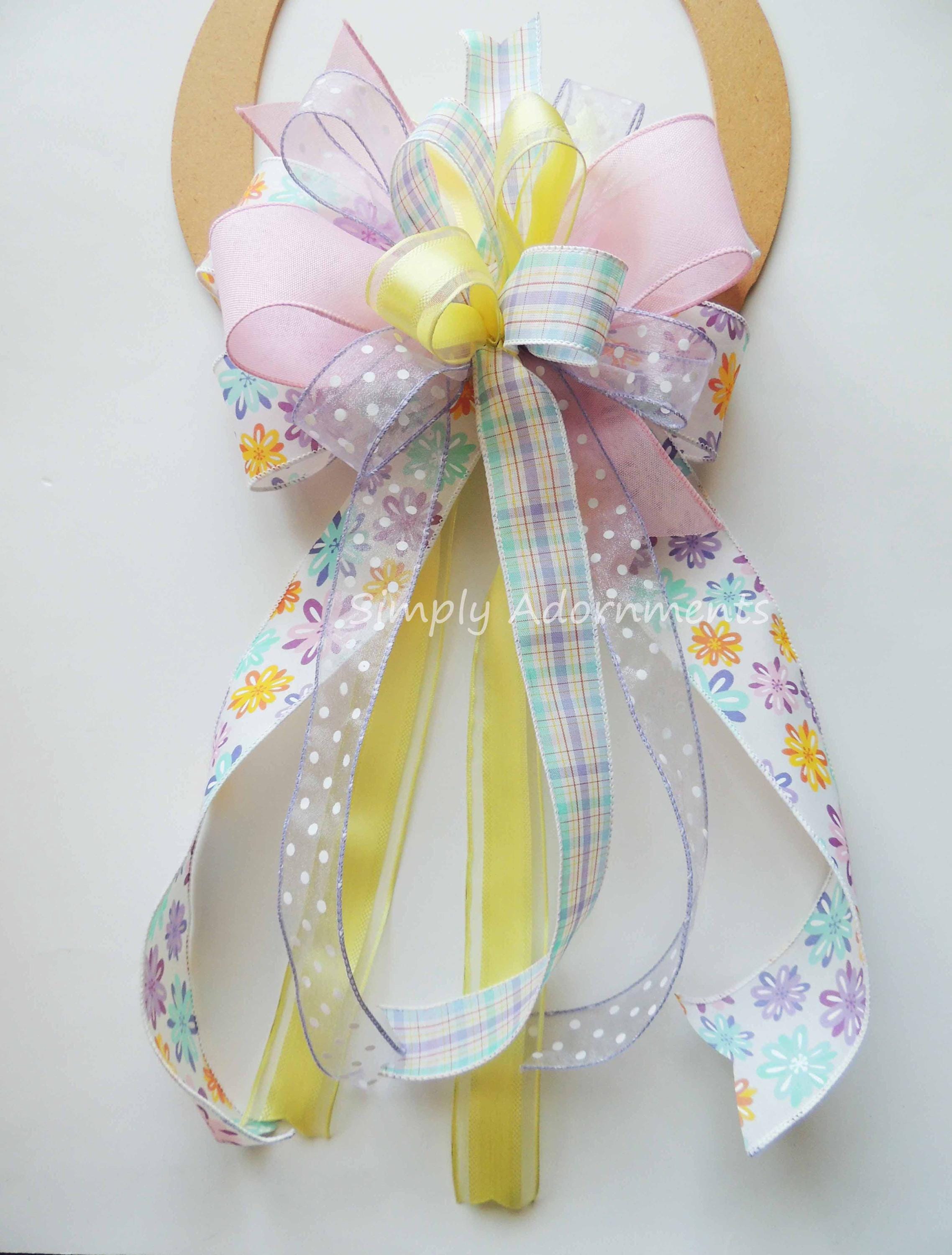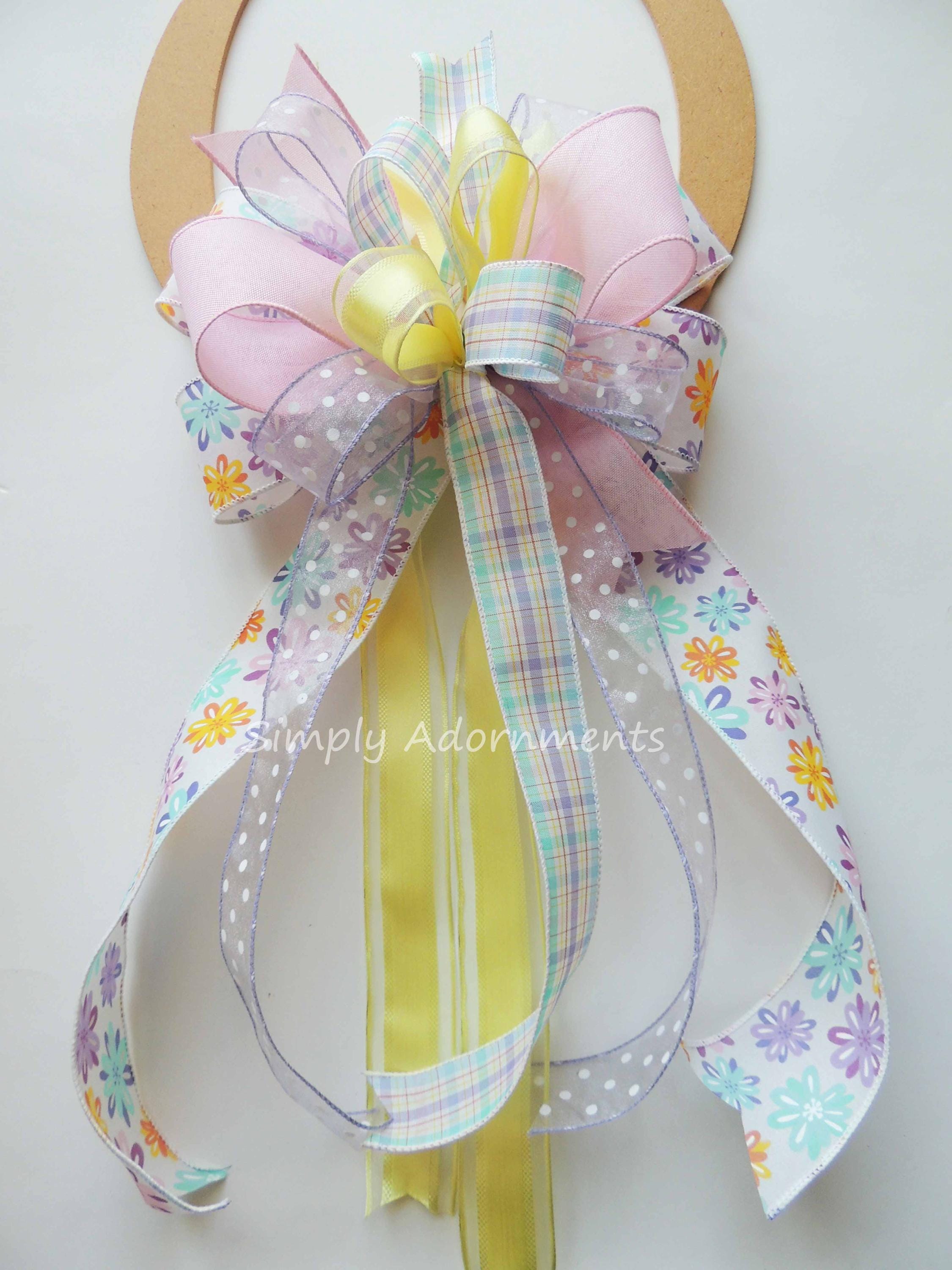Spring flowers Bow, Flower Wreath bow, Pastel flower Lantern bow, Flowers Gift Basket Bow, Spring Floral Door hanger Bow, Swag bow