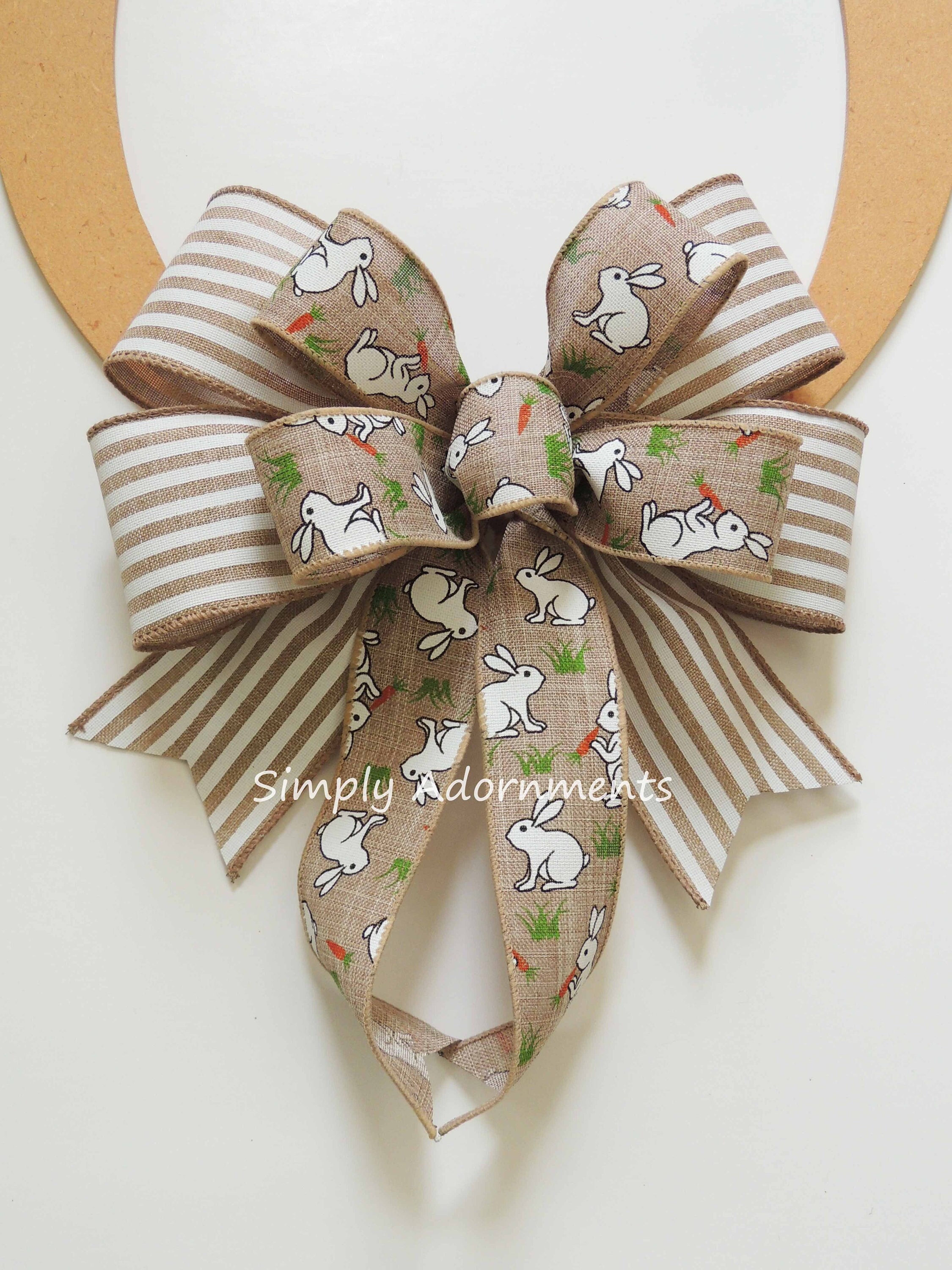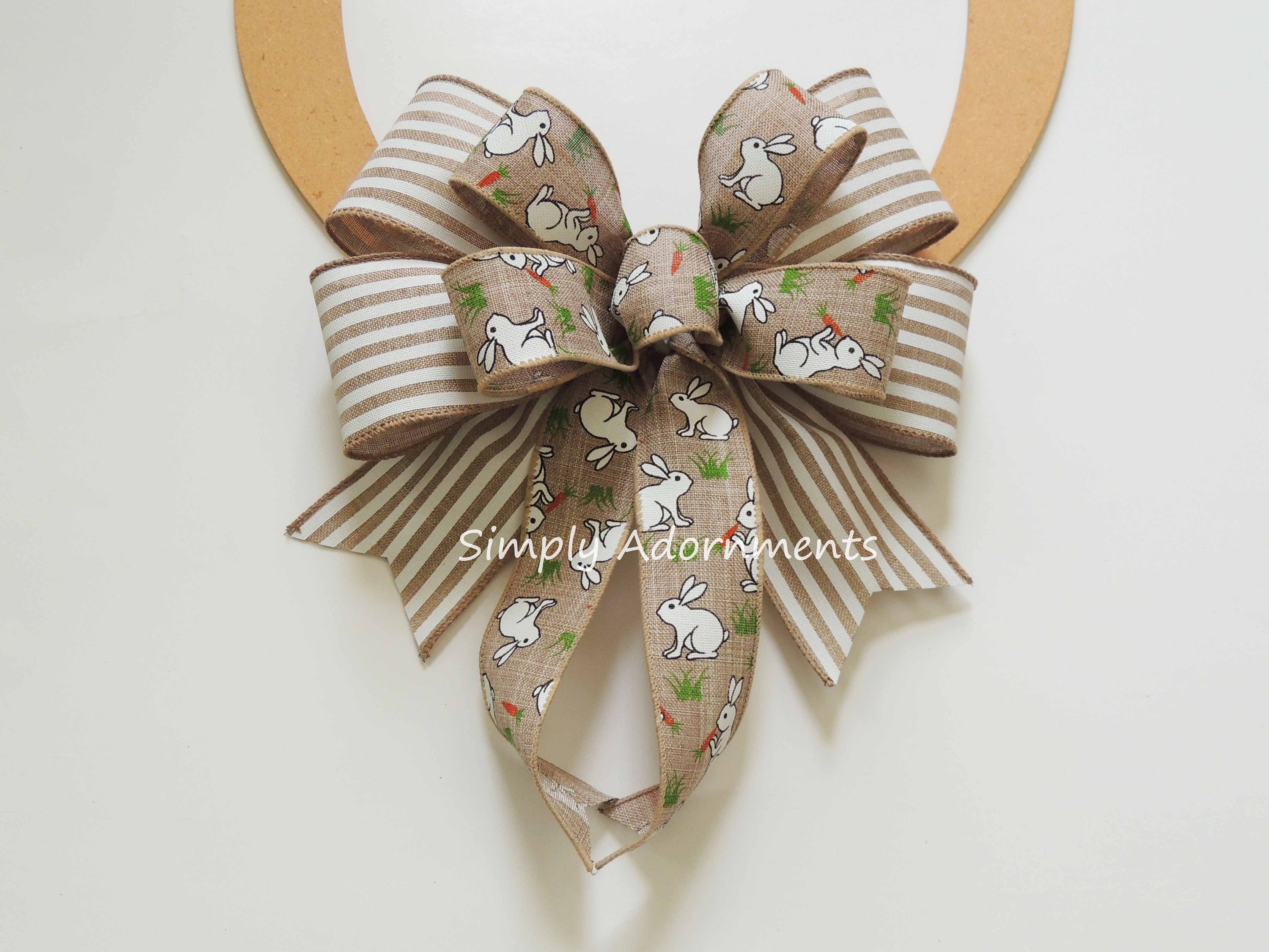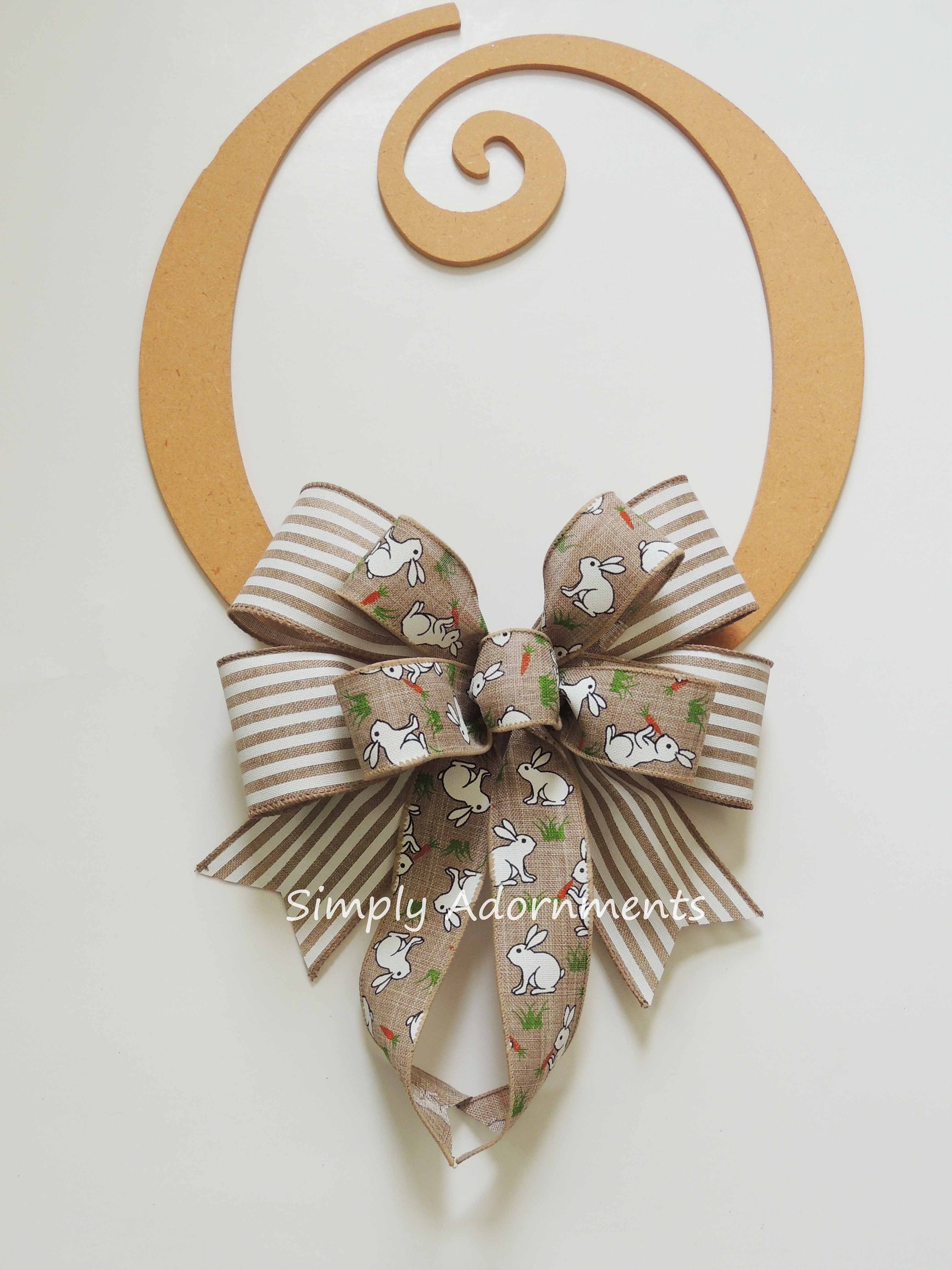Farmhouse Easter Bow, Farmhouse Tan white Bow, Tan White Bunny Bow, Farmhouse Easter Sign Bow, Neutral color wreath Bow, Farmhouse Door Bow