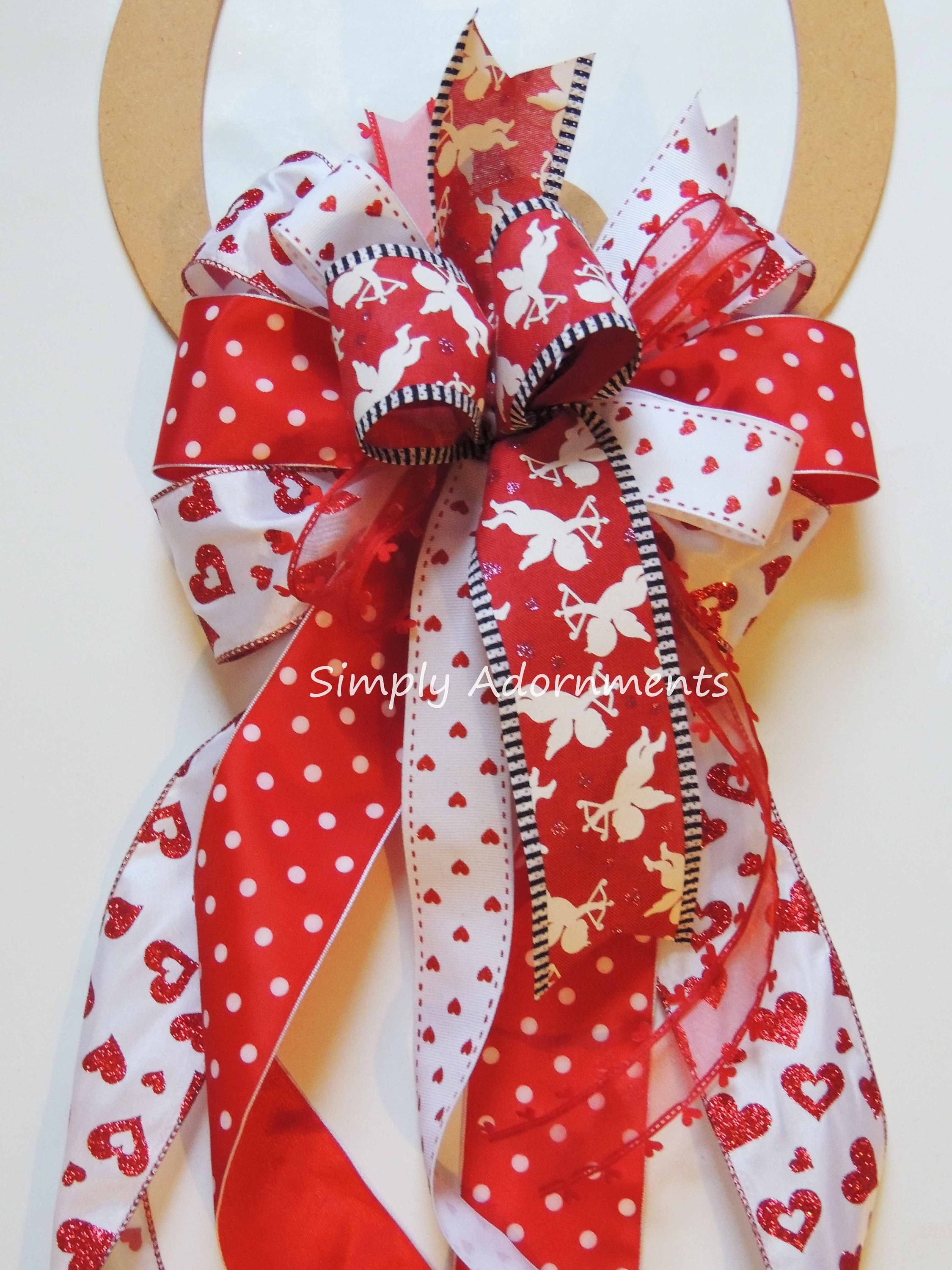 Valentine Cupid bow, Valentine heart and Cupid bow, Red Valentine Wreath Bow, Valentine Tree Topper Bow, Valentine Lantern Bow, Valentine gift bow