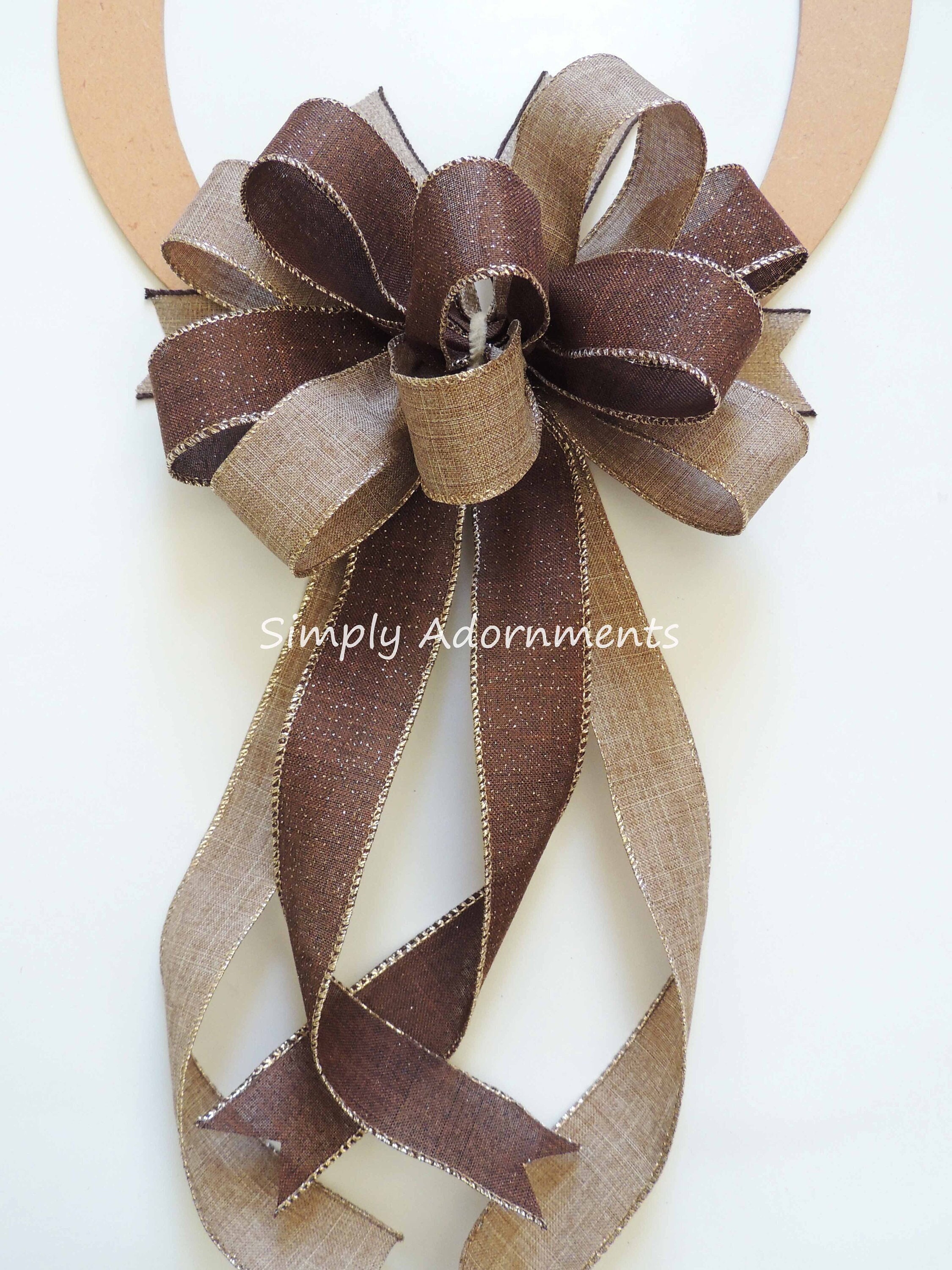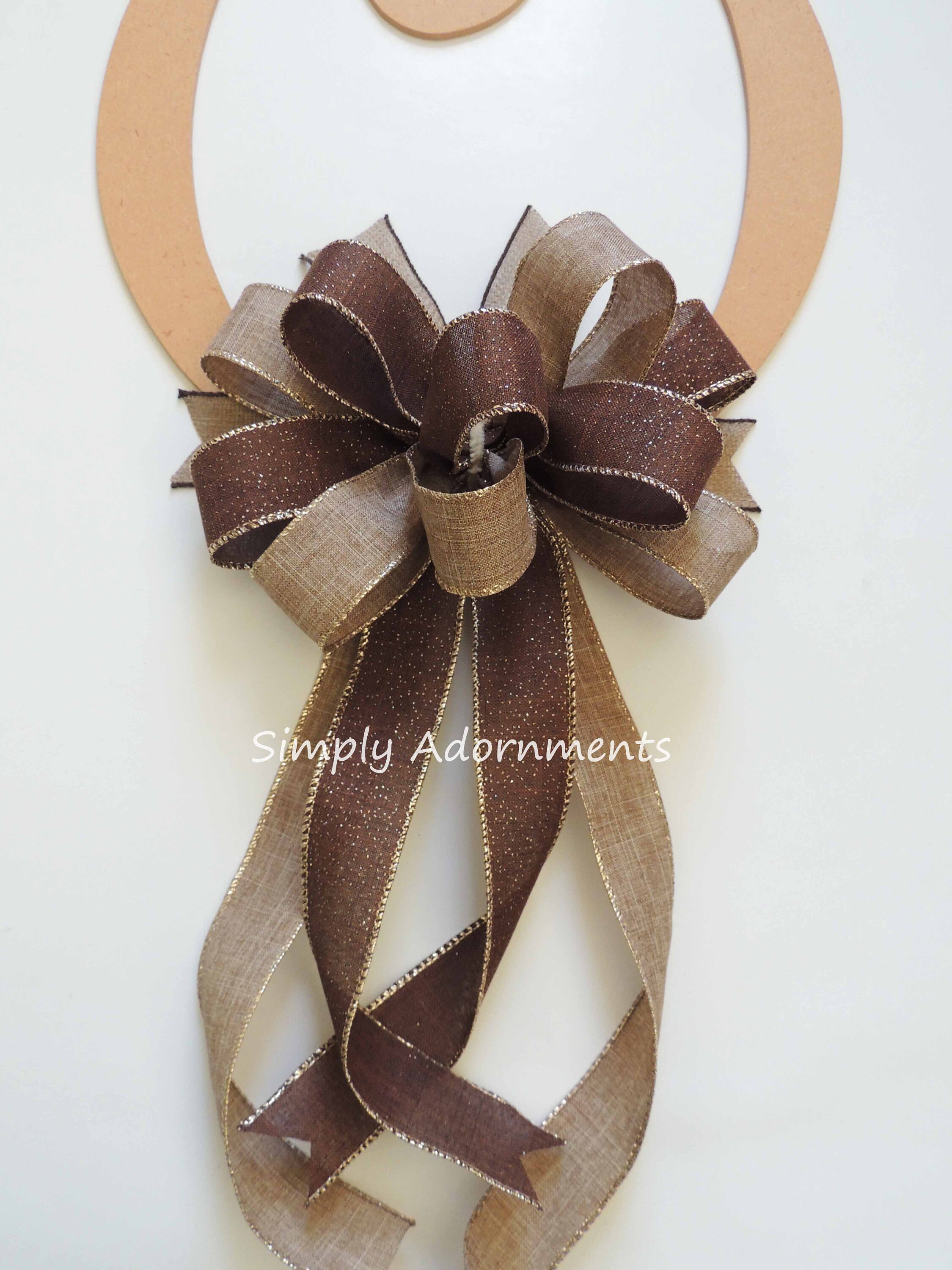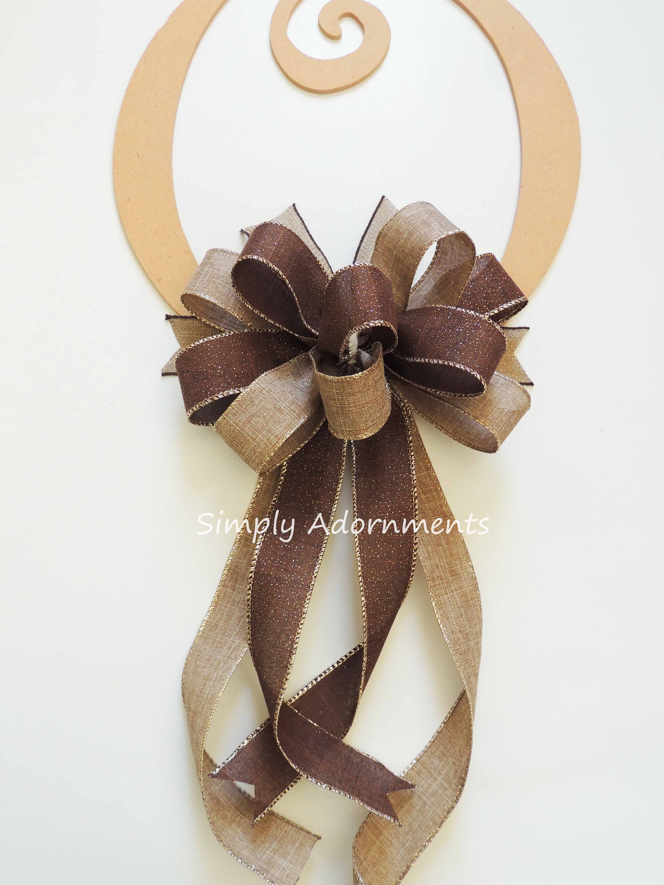 Brown Farmhouse Bow, Brown tan Farmhouse Bow, Burlap Farmhouse Wreath bow, Farmhouse sign Bow, Farmhouse Bow for Porch sign, Door Hanger Bow