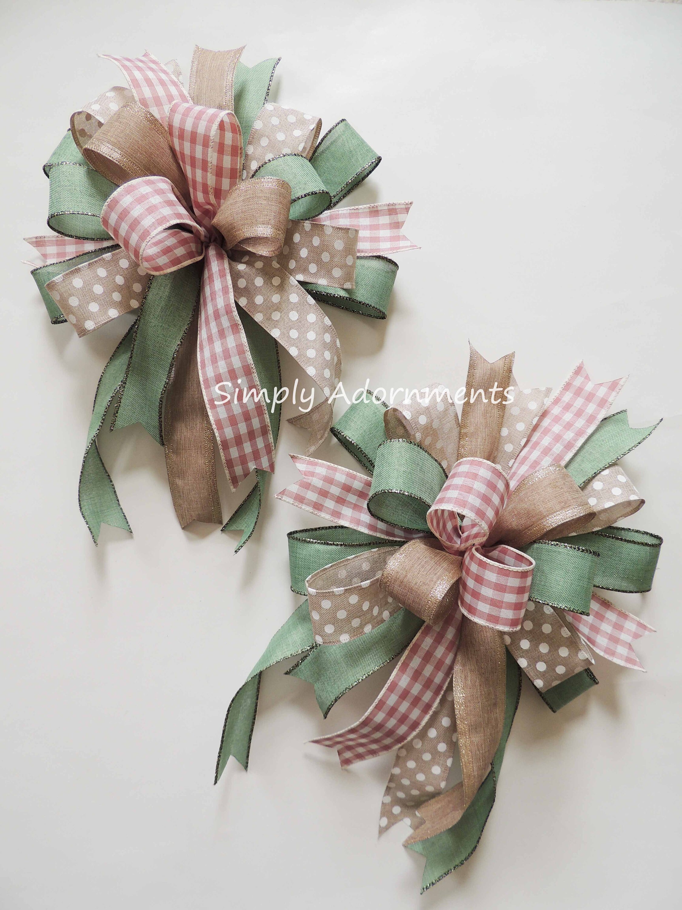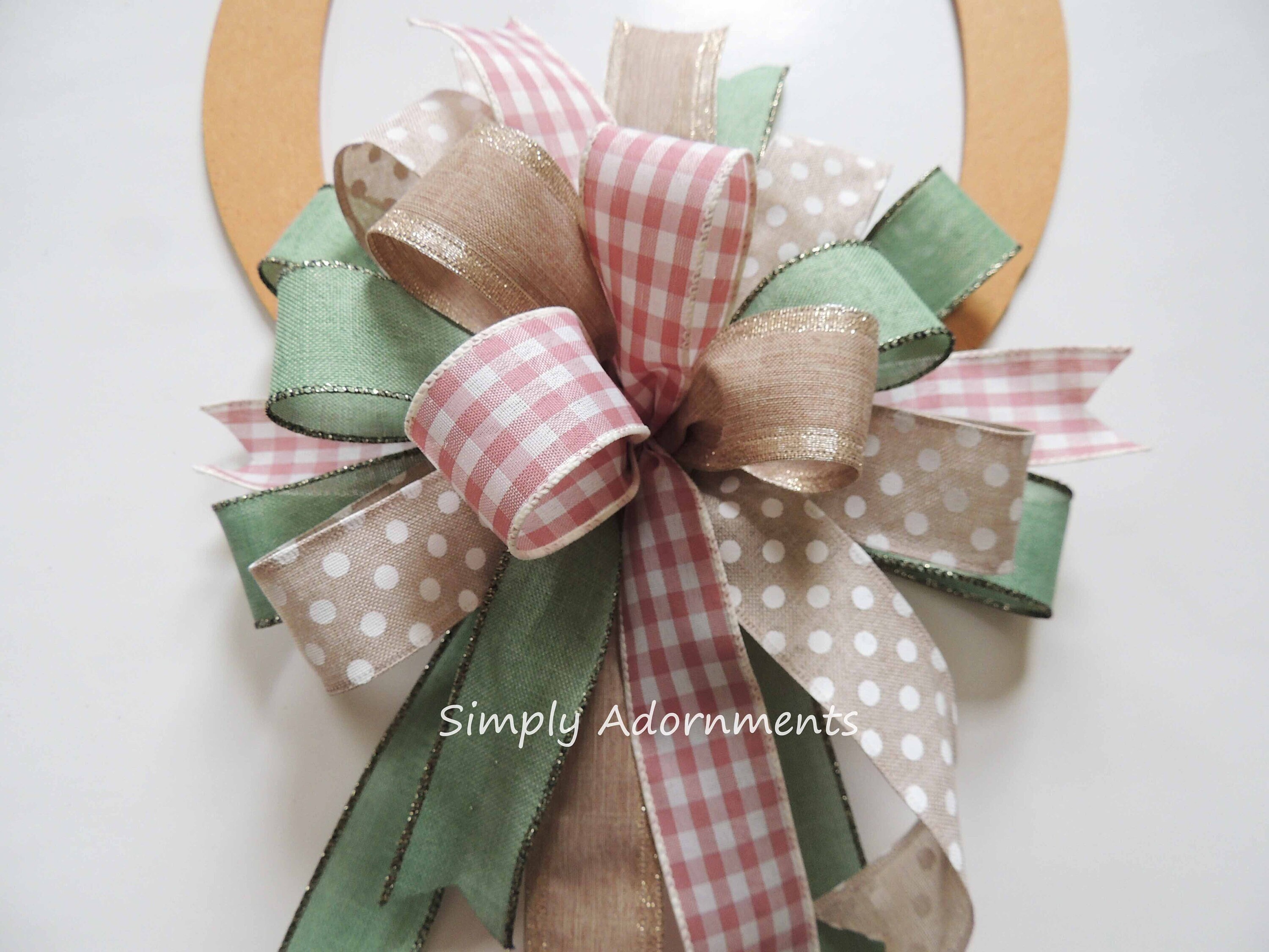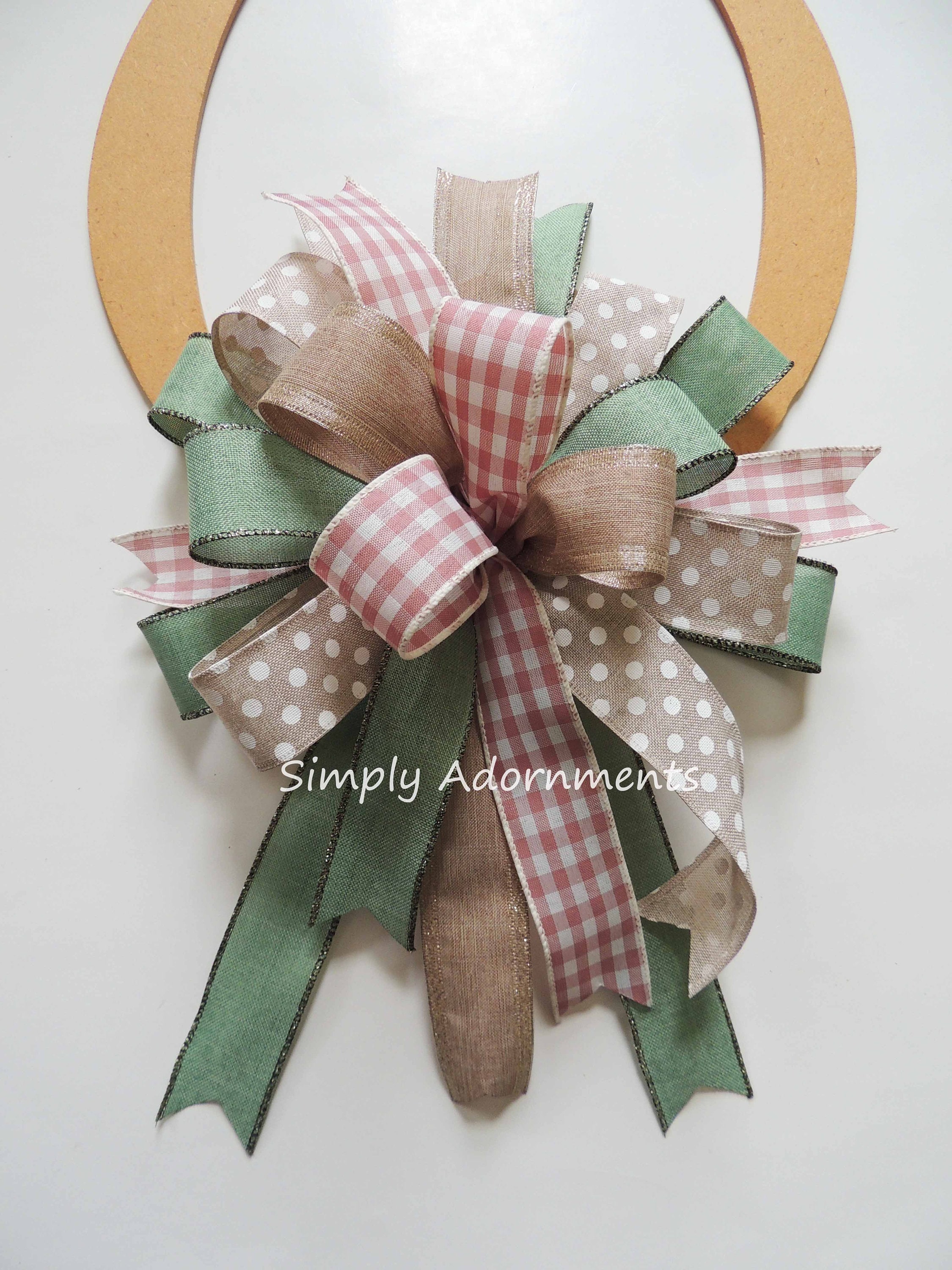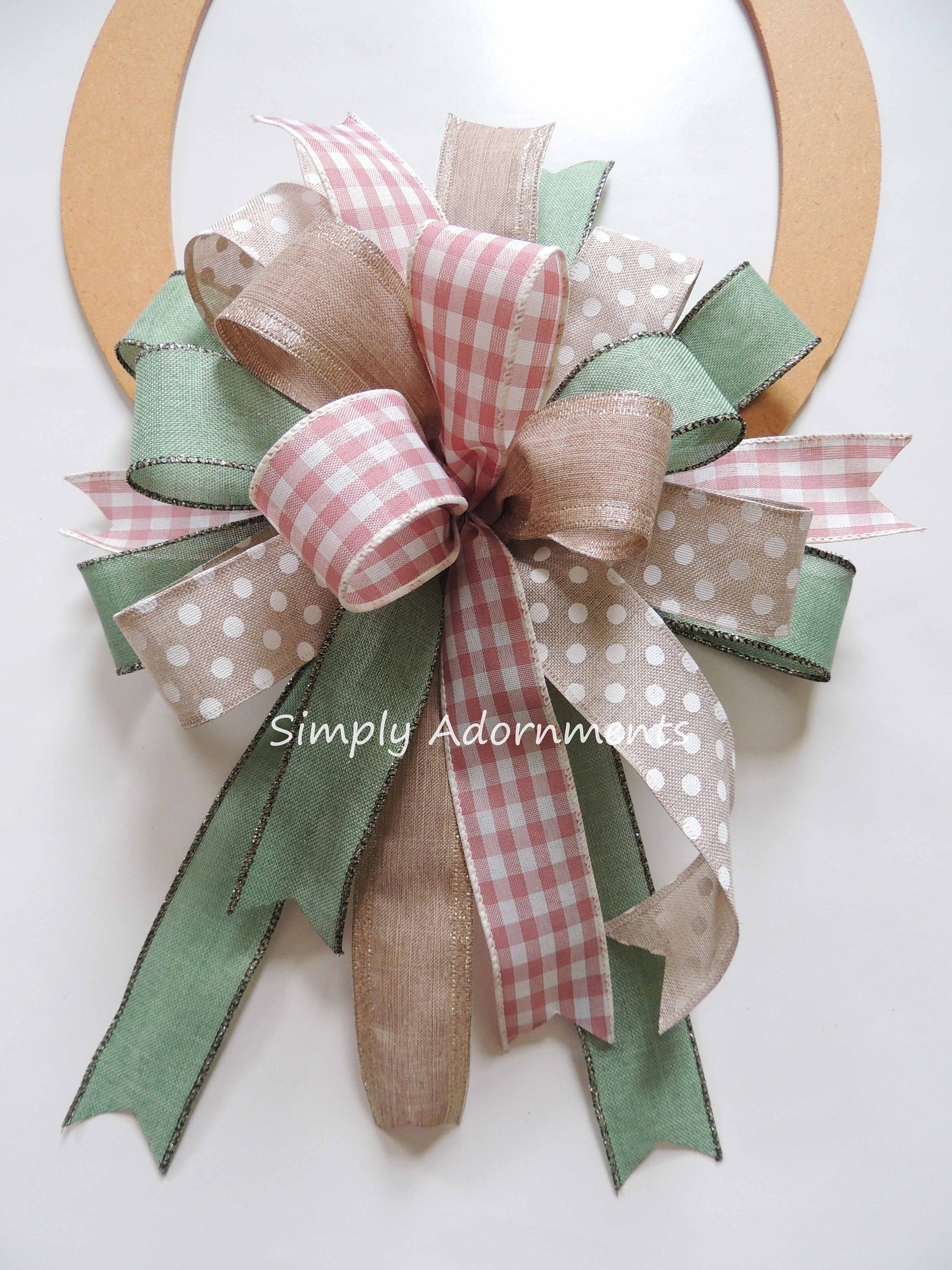 Beige Blush Pink green Bow, Mint pink tan Wreath Bow, Everyday Farmhouse Bow, Farmhouse Wreath Bow, Everyday Farmhouse door bow, Lantern bow