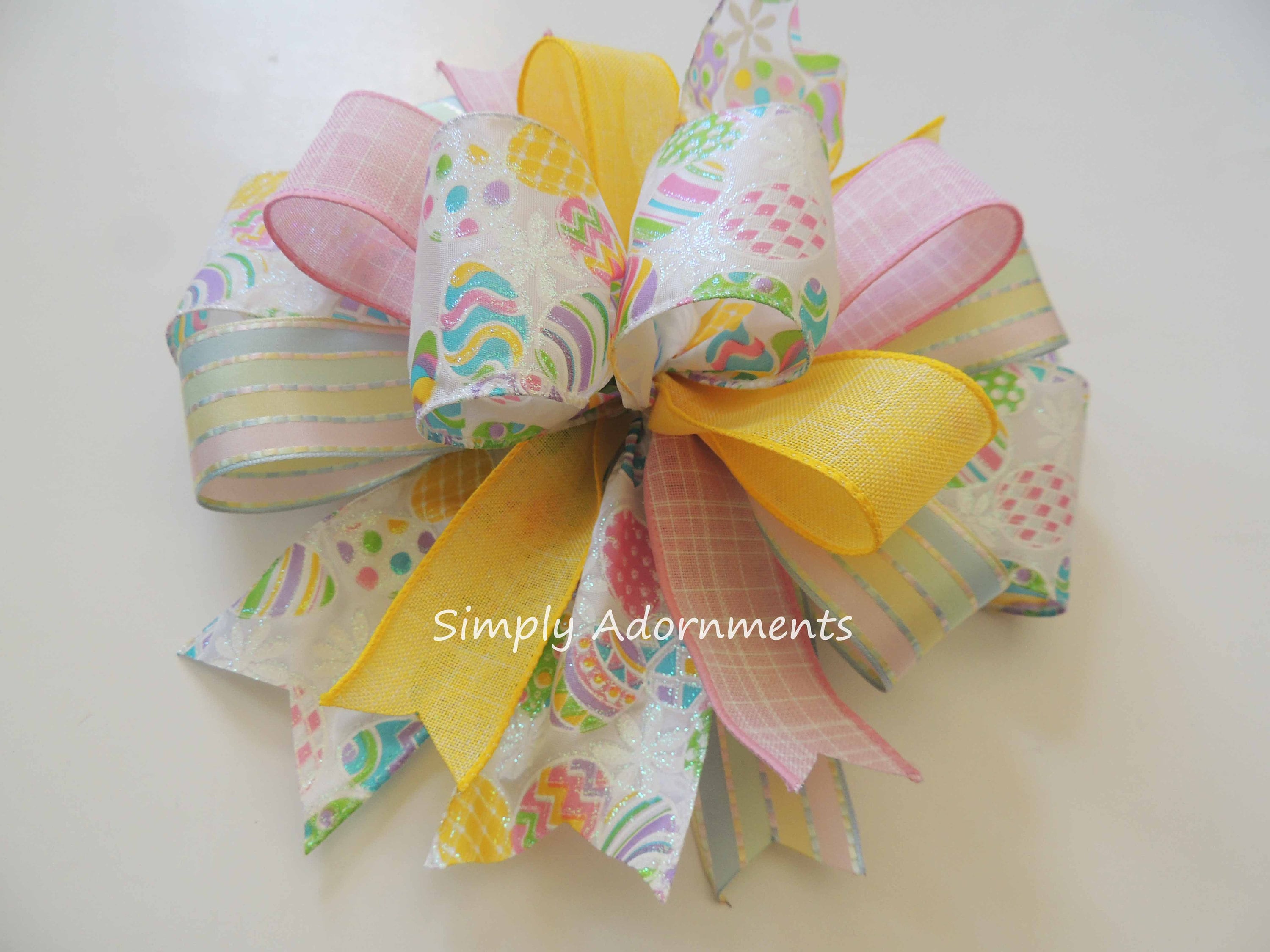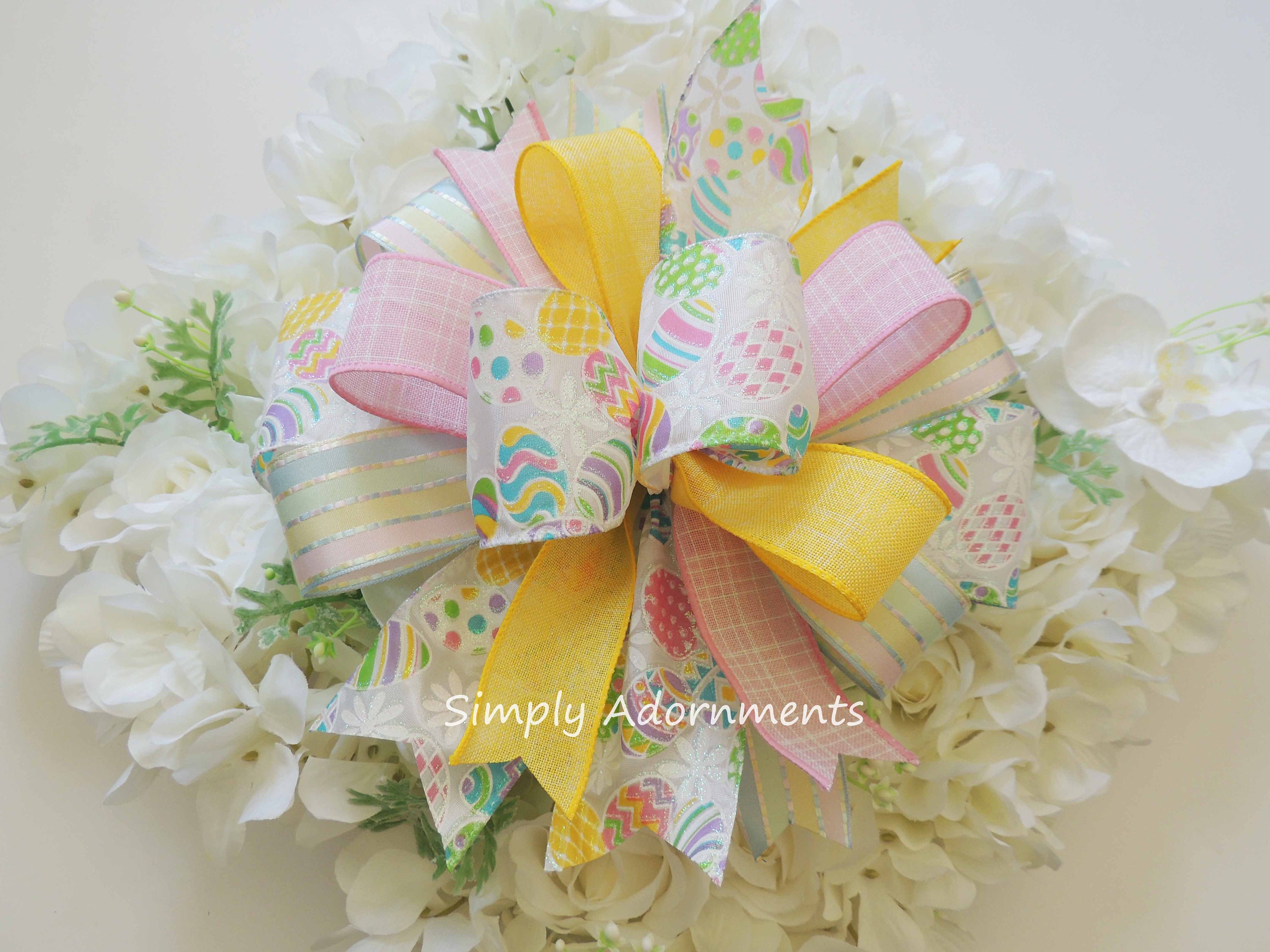 Easter Eggs Bow, Multicolored Easter Wreath Bow, Easter Door Sign Bow, Pastel Easter Lantern Bow, Gift Basket Bow, Easter Door hanger Bow.