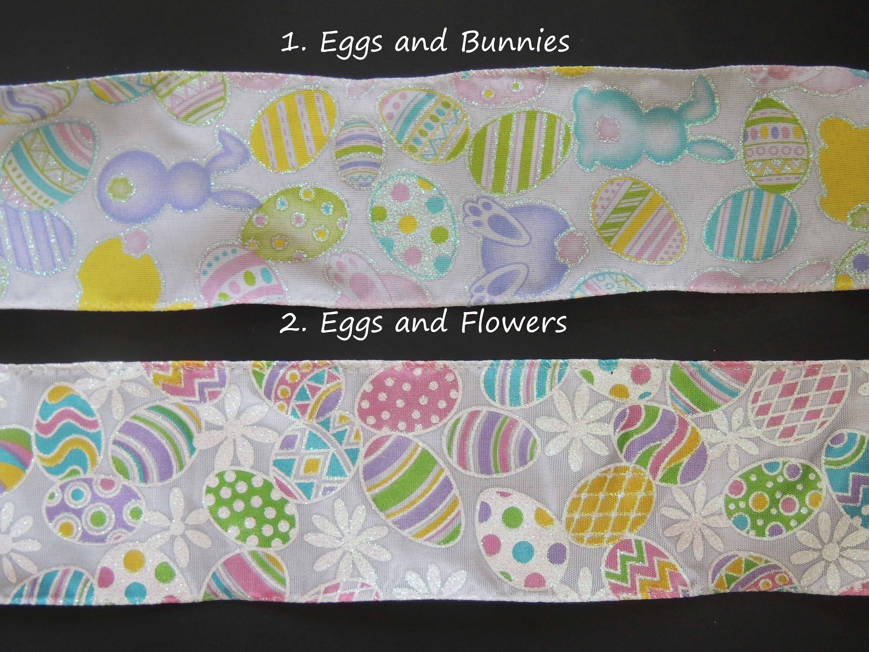 This whimsical Easter bow is made of 4 different wired ribbons. The ribbons are 2.5" and 1.5" in width wire-edged ribbons. It's 10" wide and 10" long. The bow length (L) is from top of the bow to the end of its tails. Please select the top layer ribbon option before checking out.