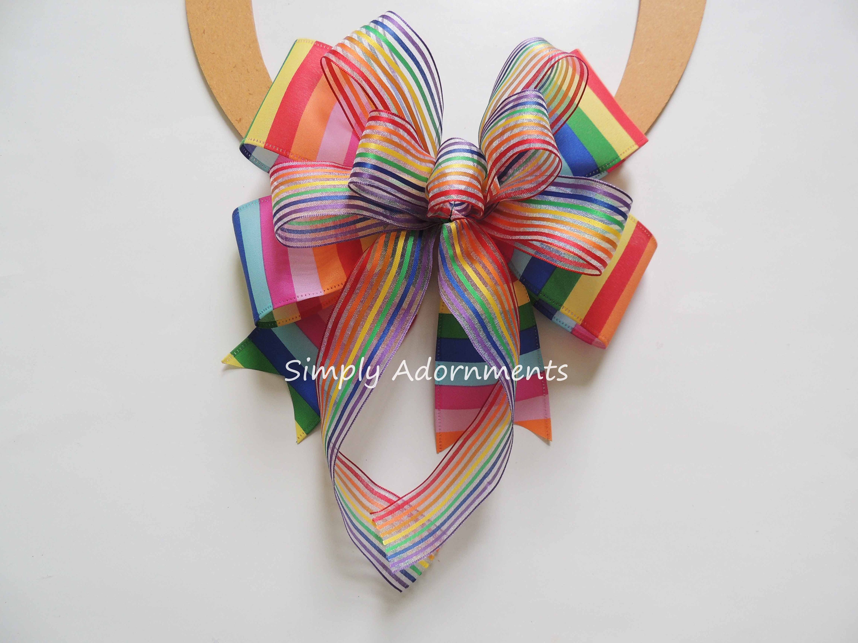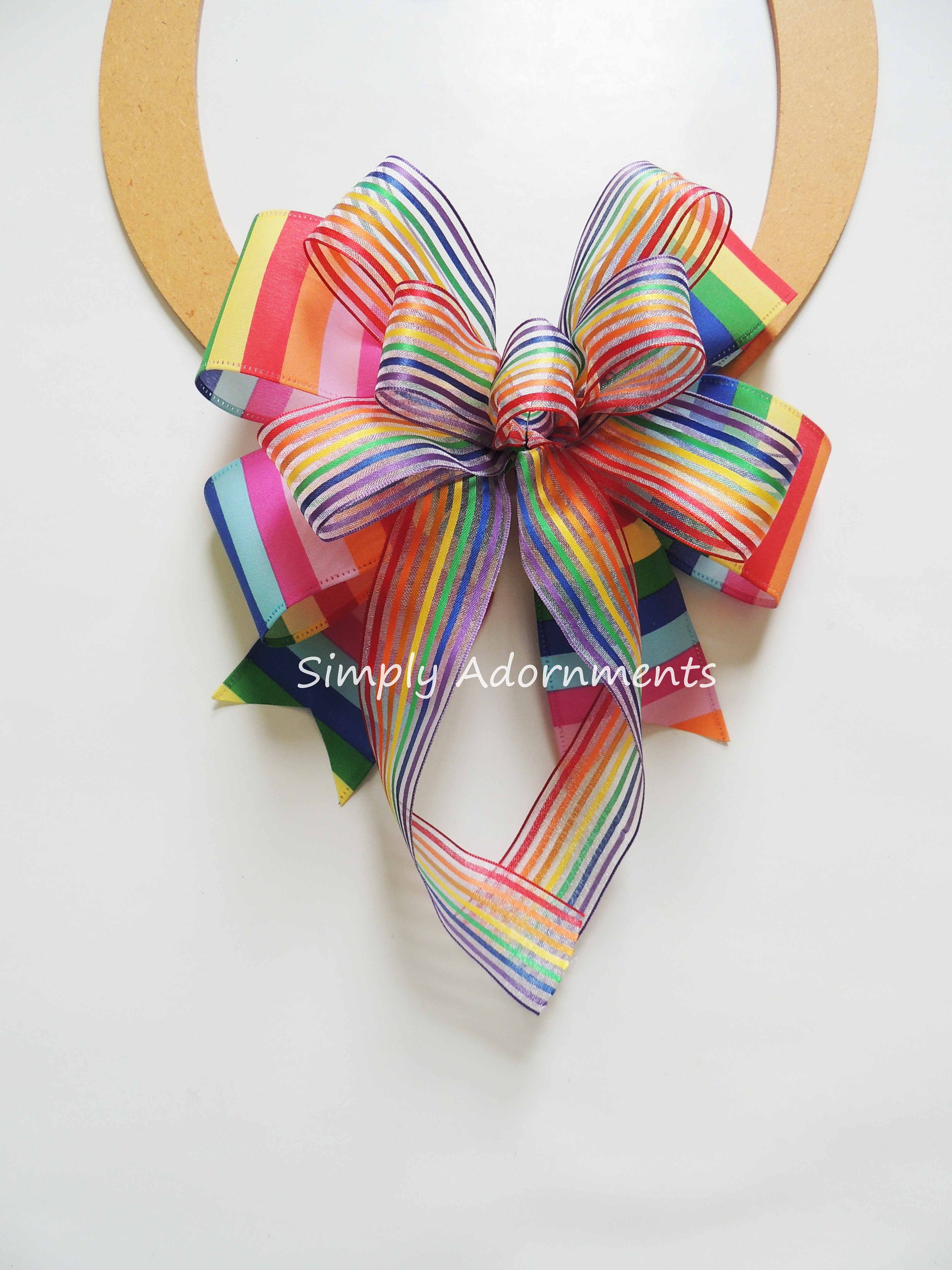 Rainbow stripe Bow, Rainbow stripe Birthday Bow, Rainbow Happy Birthday Gift Bow, Rainbow Lantern bow, Rainbow Gift Bow, Rainbow Wreath Bow, Pride Stripe Bow, Rainbow Door bow