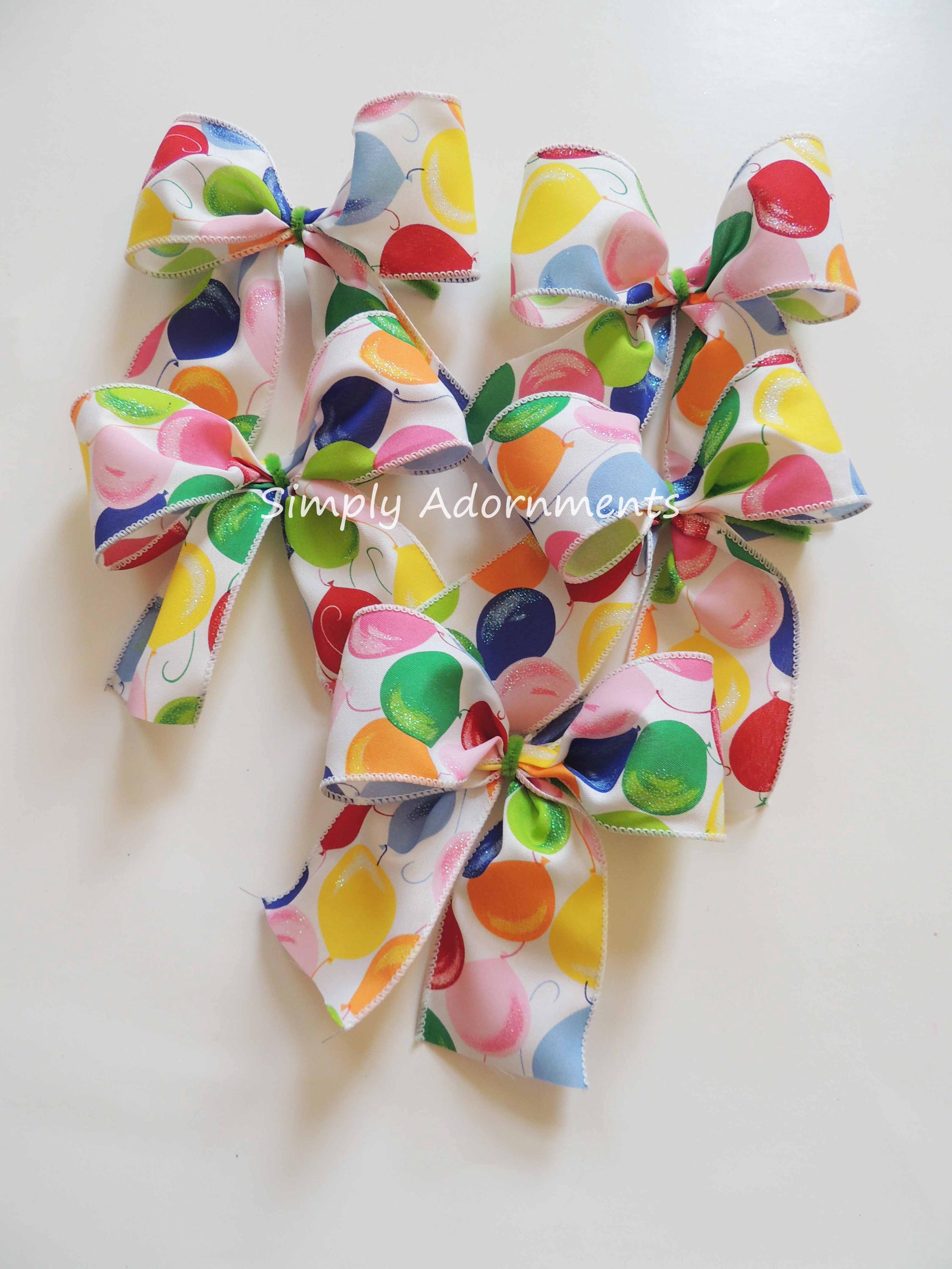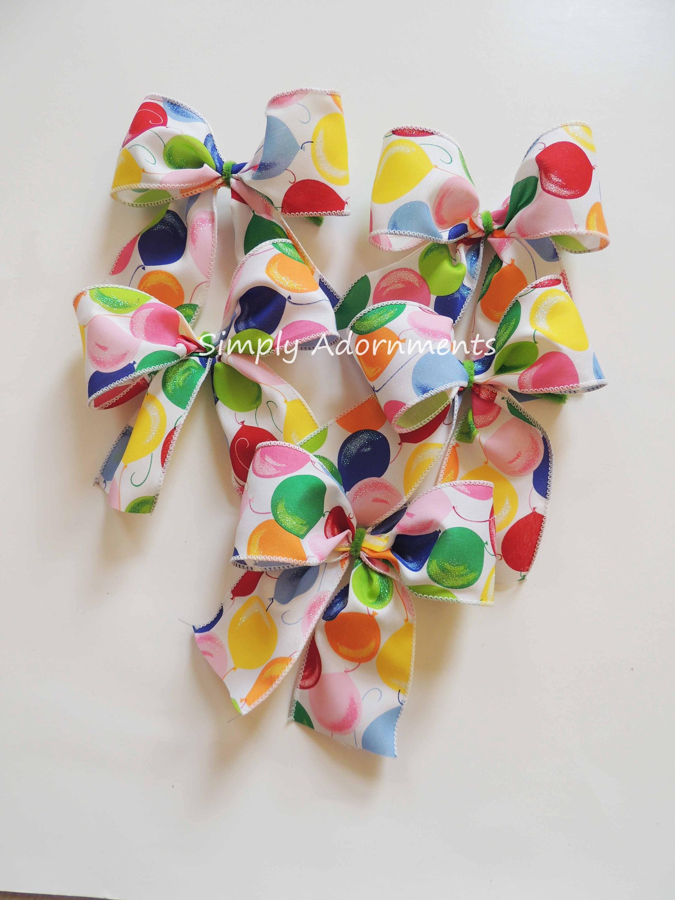 5 Multi-Colored Balloon Mini Bows, Set of 5 Balloon mini Bows, 5 Birthday party favors Bow, Party favor gift Bows, Balloon Mini Bows, Balloon birthday Bows, Balloon Mini gift Bows.