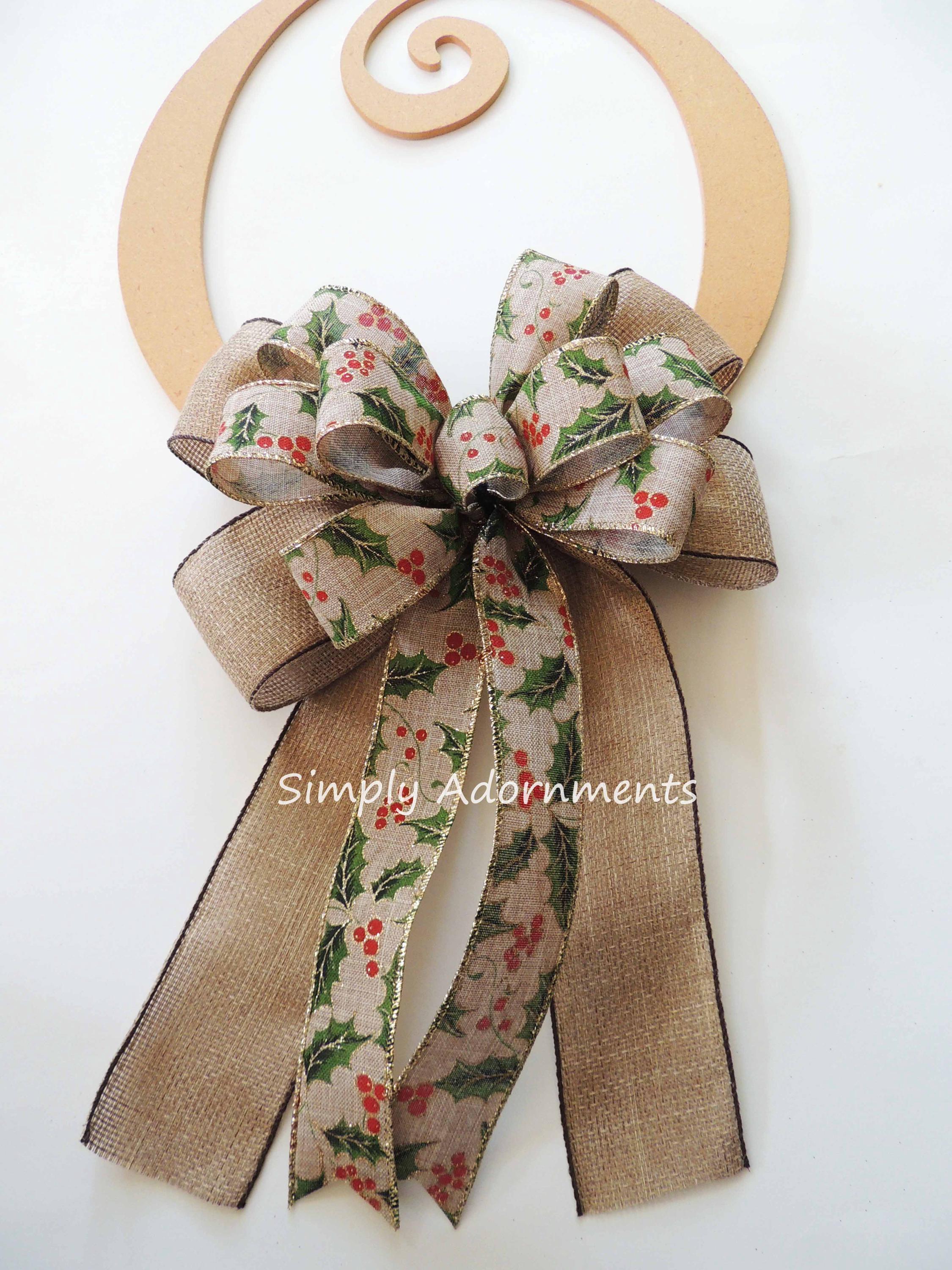 Farmhouse Christmas Bow, Farmhouse Christmas Plaid bow, Traditional Christmas Plaid Door Bow, Christmas Wreath Bow, Farmhouse Swag Bow