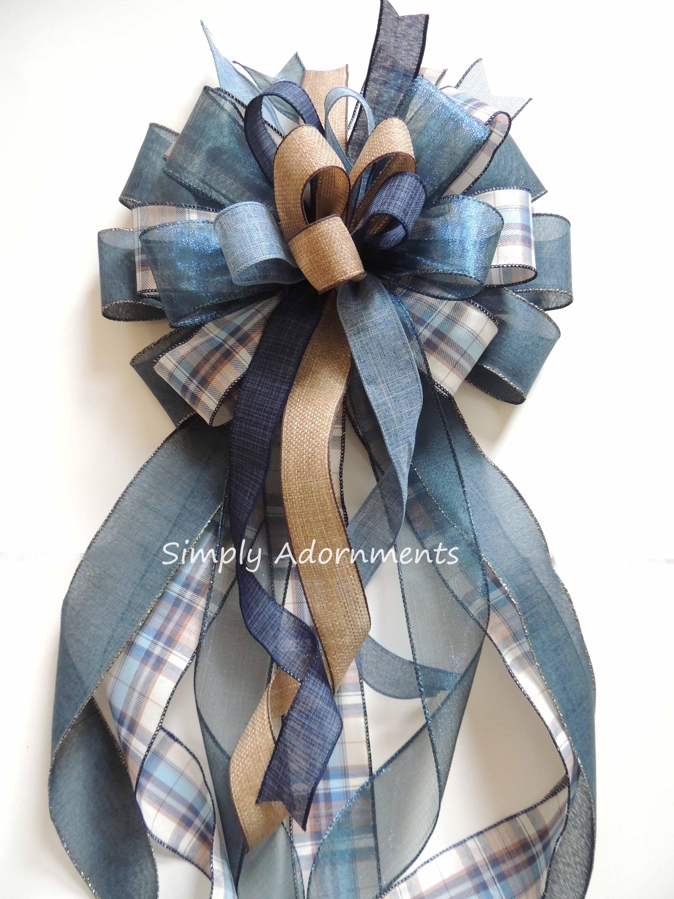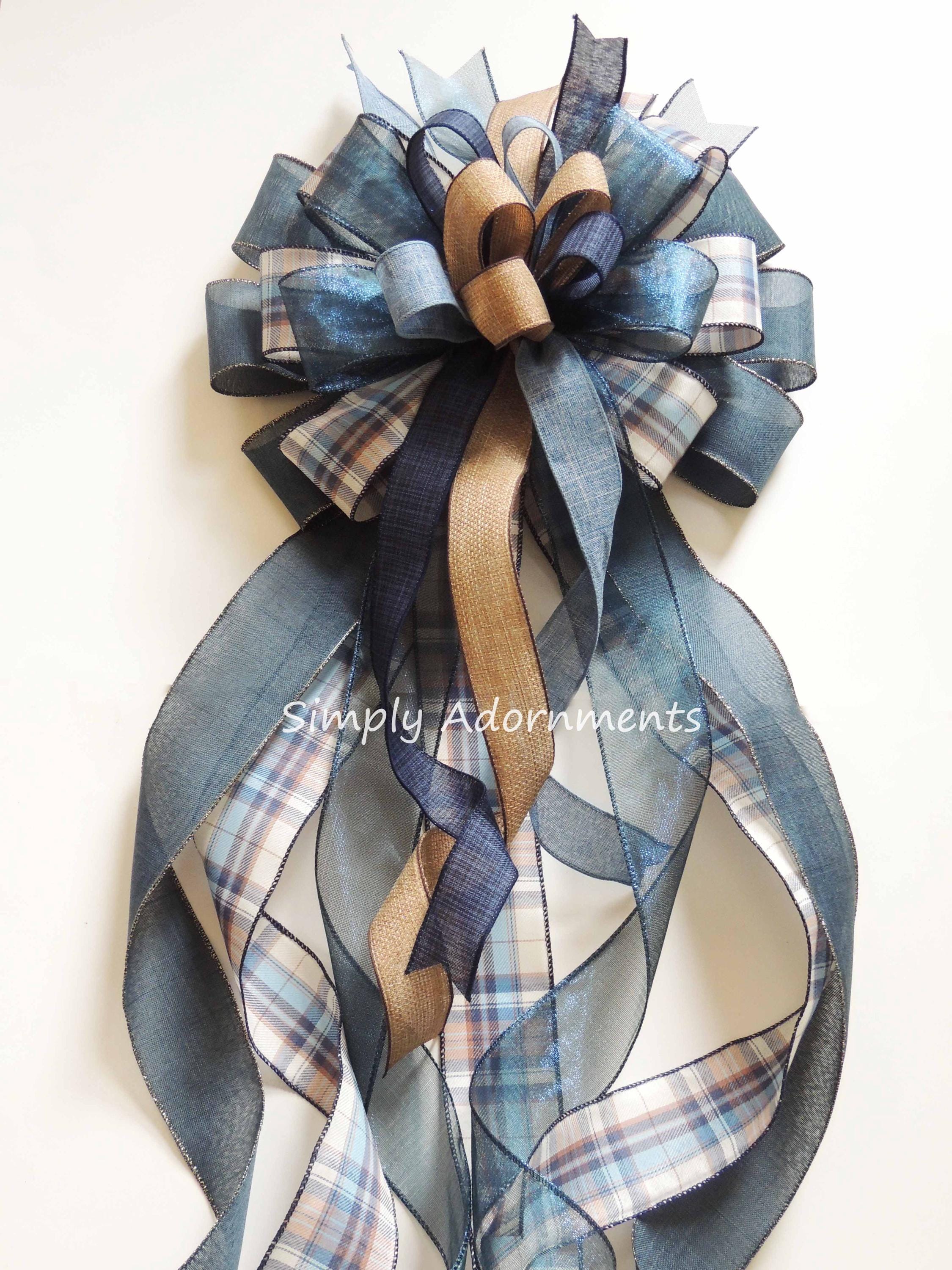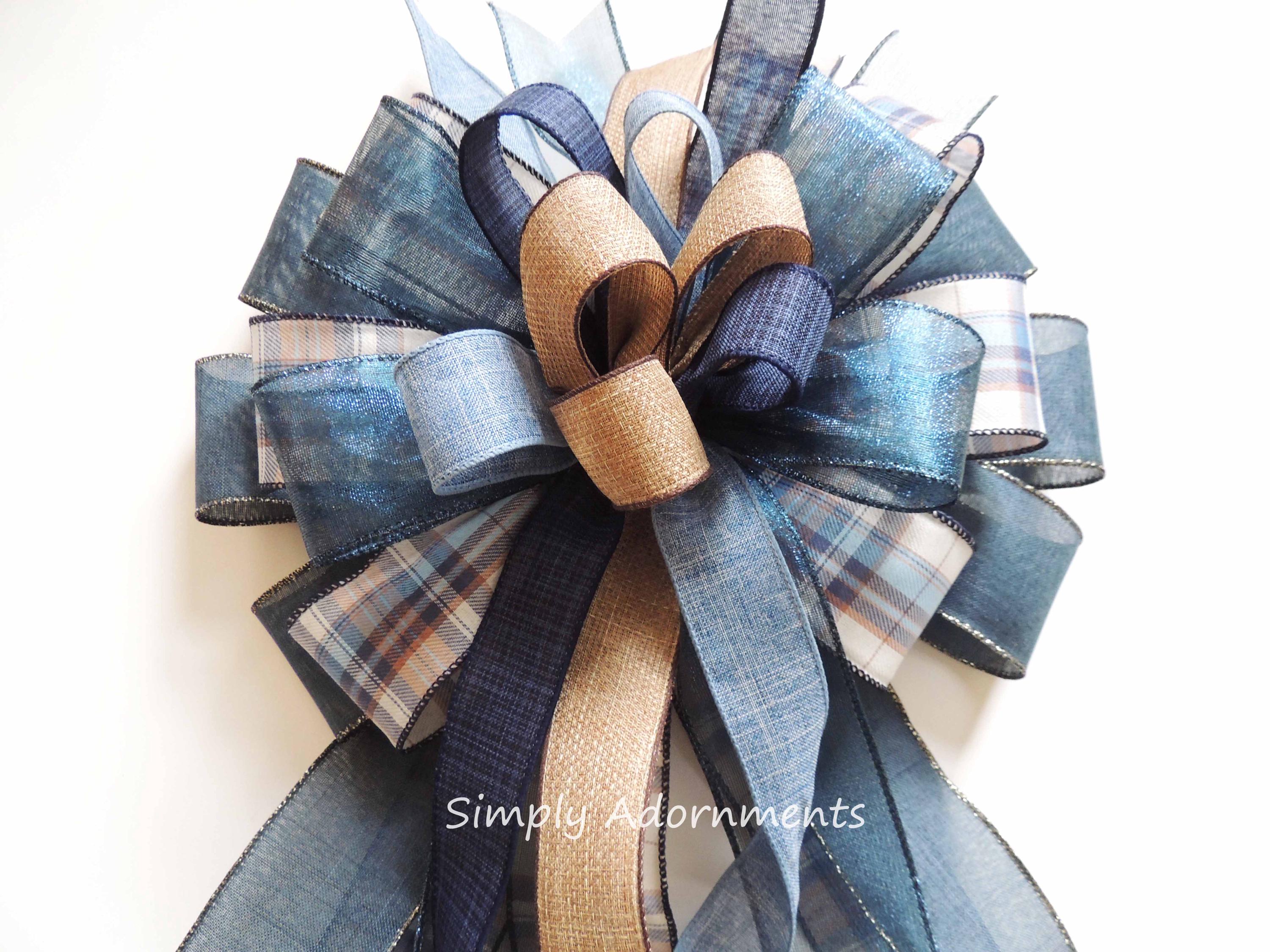 This navy farmhouse plaid bow is perfect for any Christmas decorations, Tree toppers, Large wreaths, Door hanger bow, staircase, fireplaces, mantel, Large presents, etc...during this holiday season. Also, this Christmas wire-edged ribbon bow can be easily stored and reshaped.