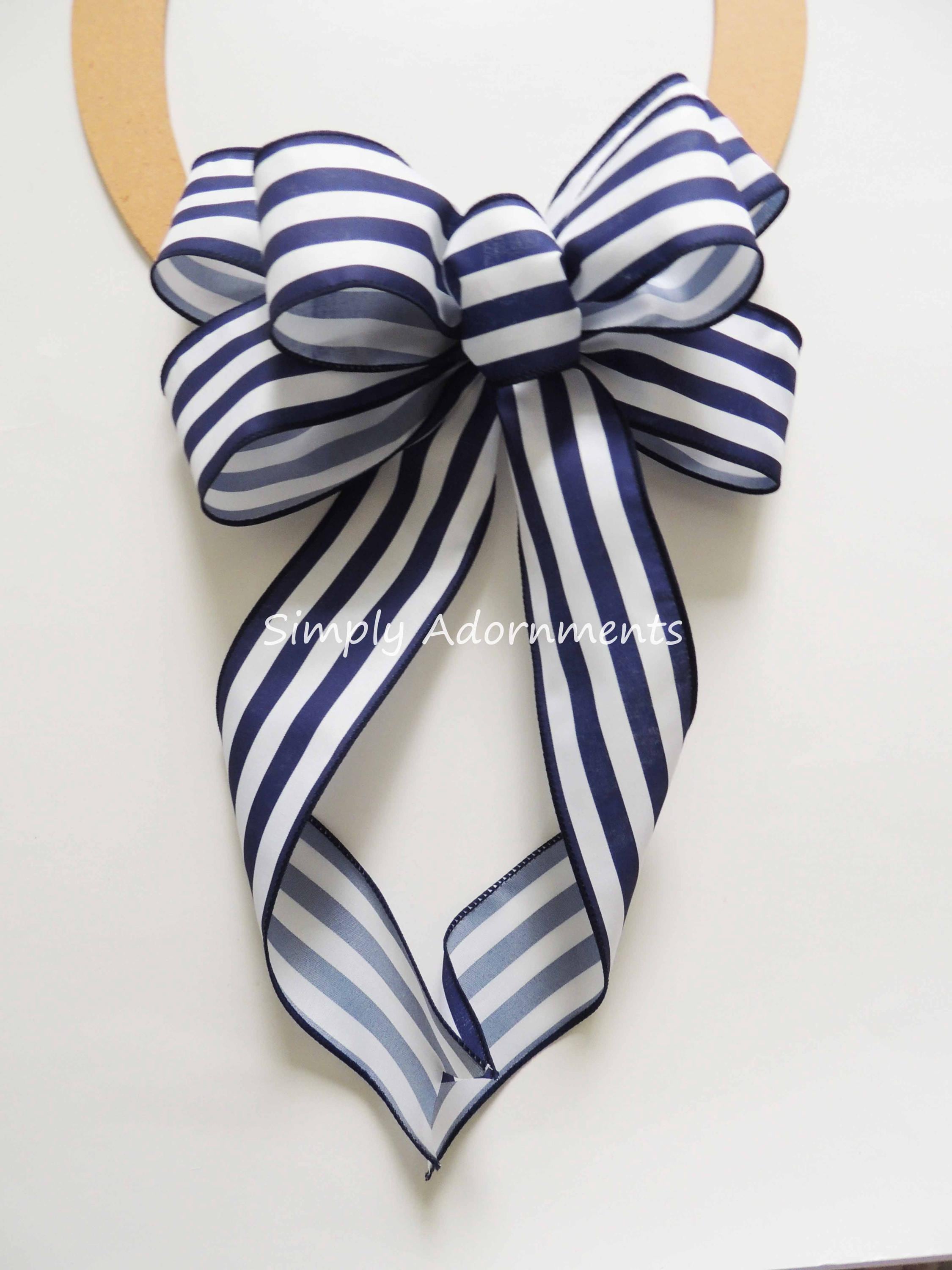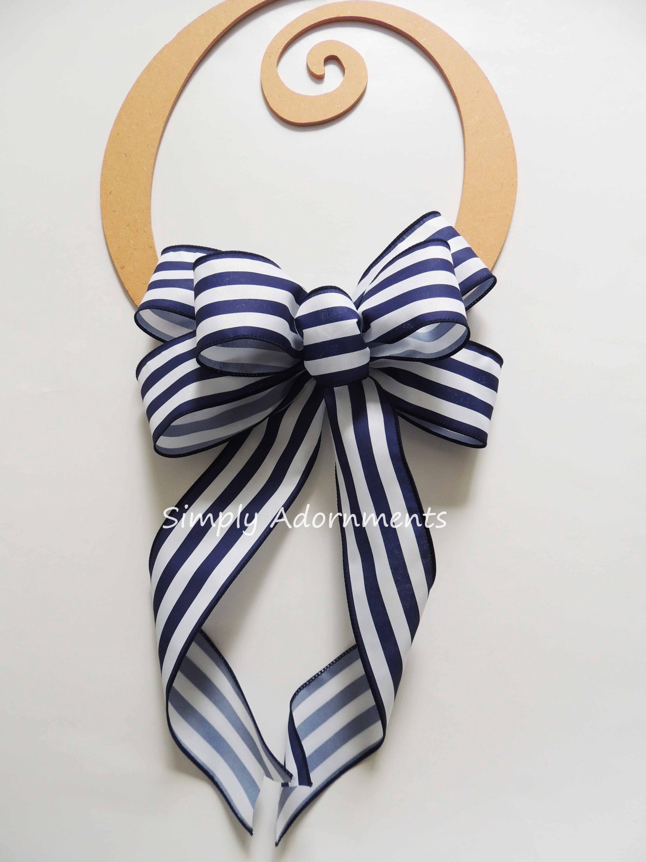 Farmhouse style Navy white Stripes bow, Navy Stripes Wreath Bow, Farmhouse Navy lantern Bow, Farmhouse Navy Stripes Bow, Navy Sign Door bow