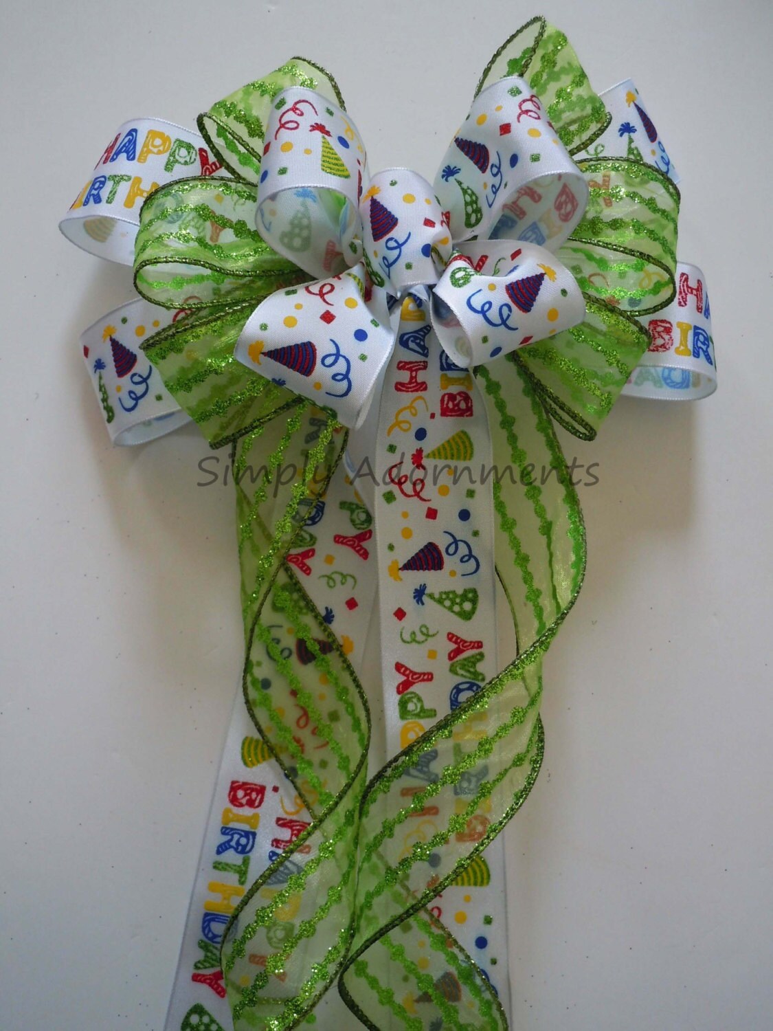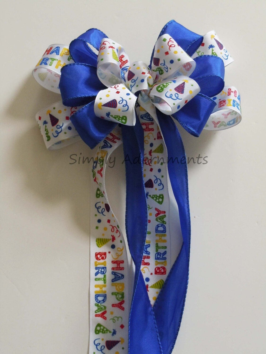 Blue, Red or Green Birthday Bow, Multi-colored Happy Birthday Bow, Handmade Birthday Party Decoration Bow, Birthday Wreath Gift Wrap Bow.