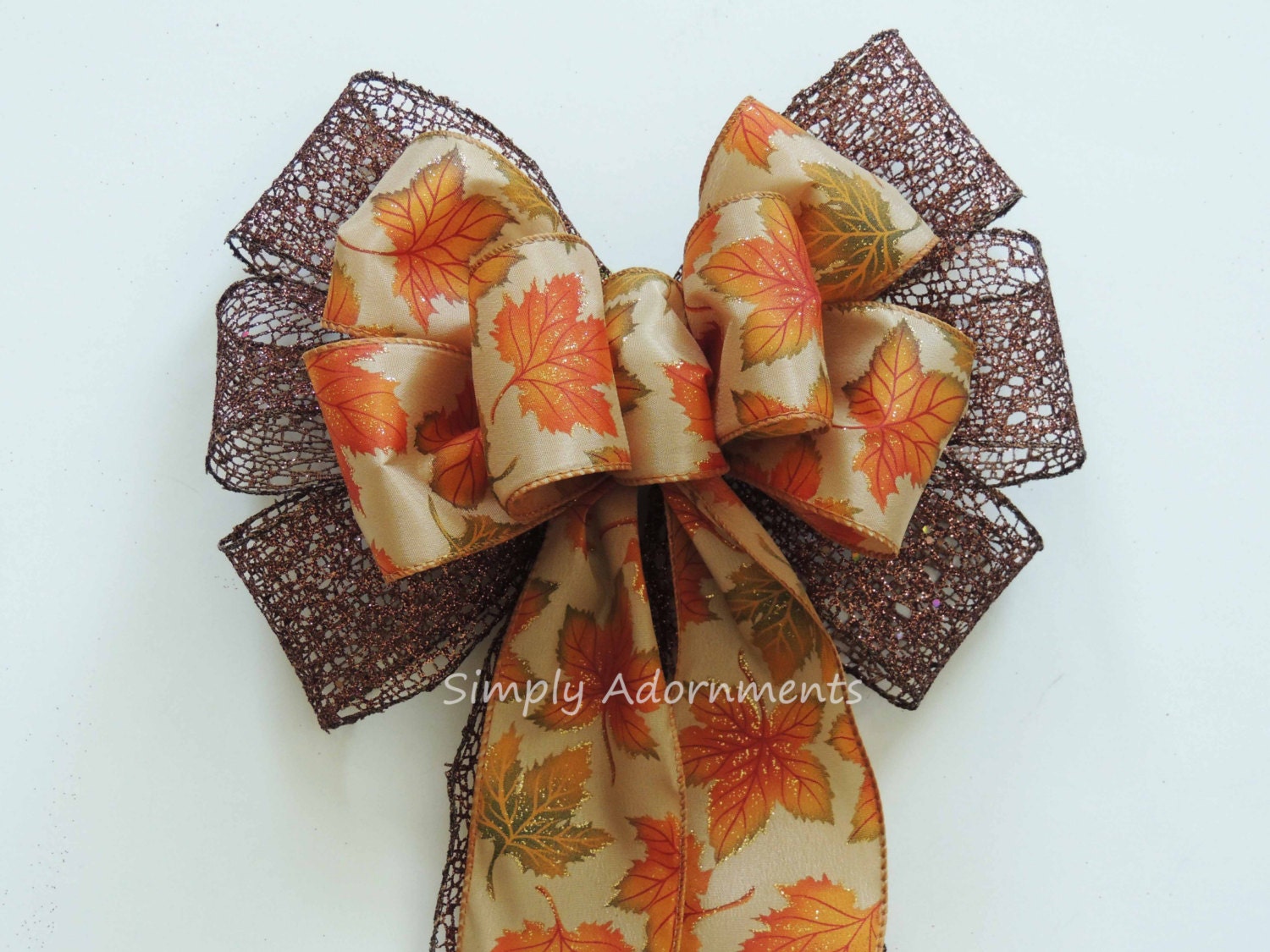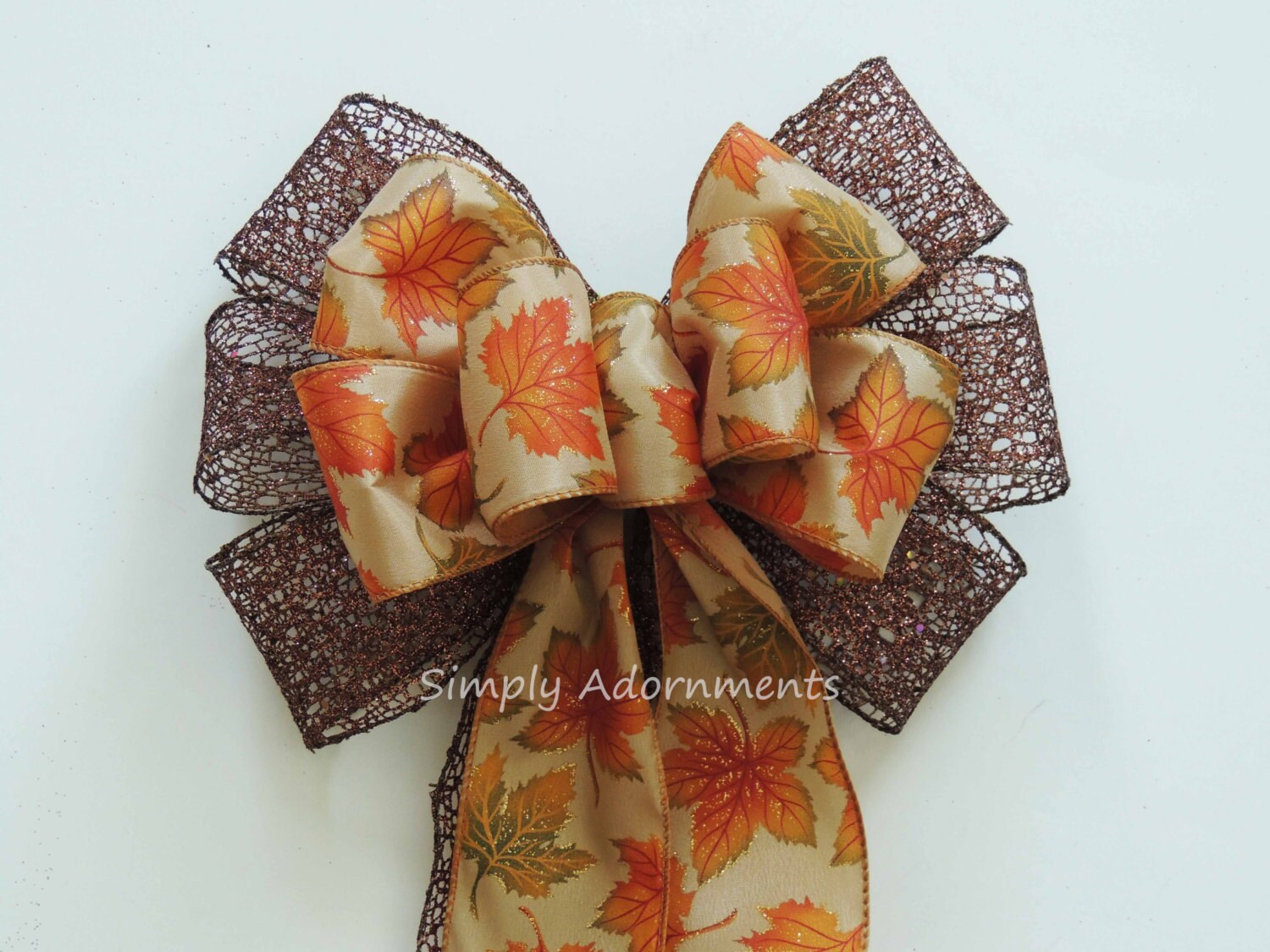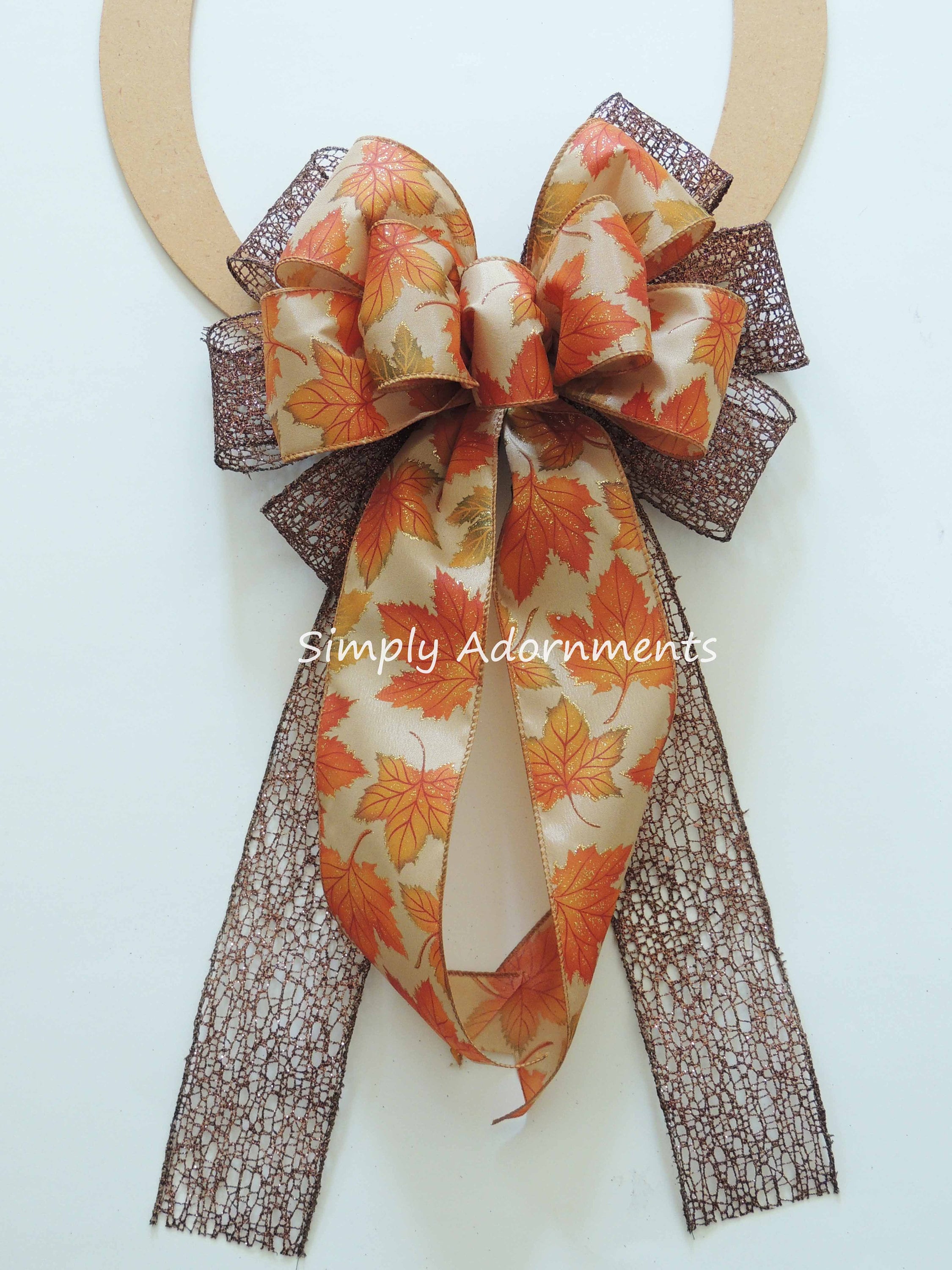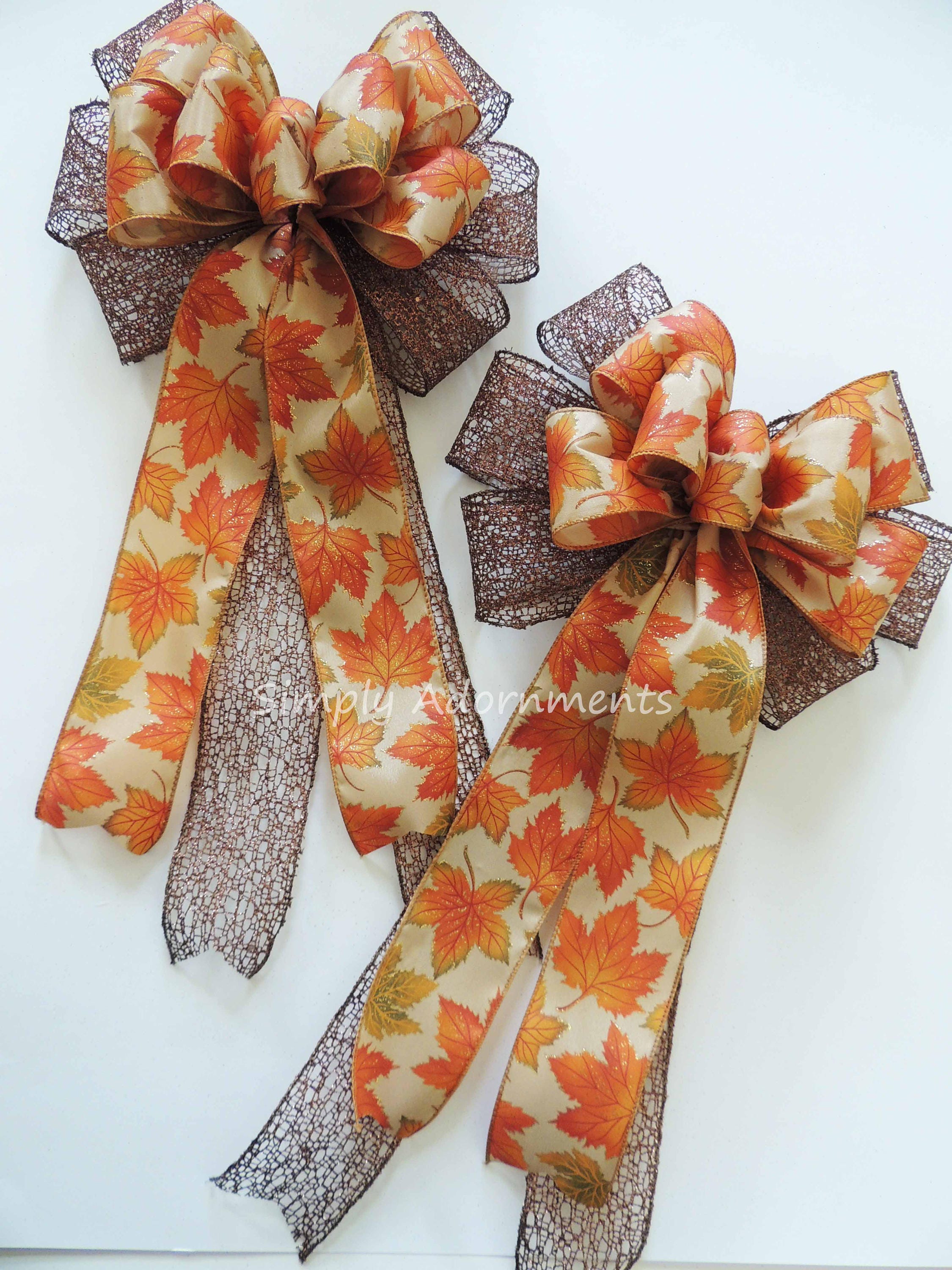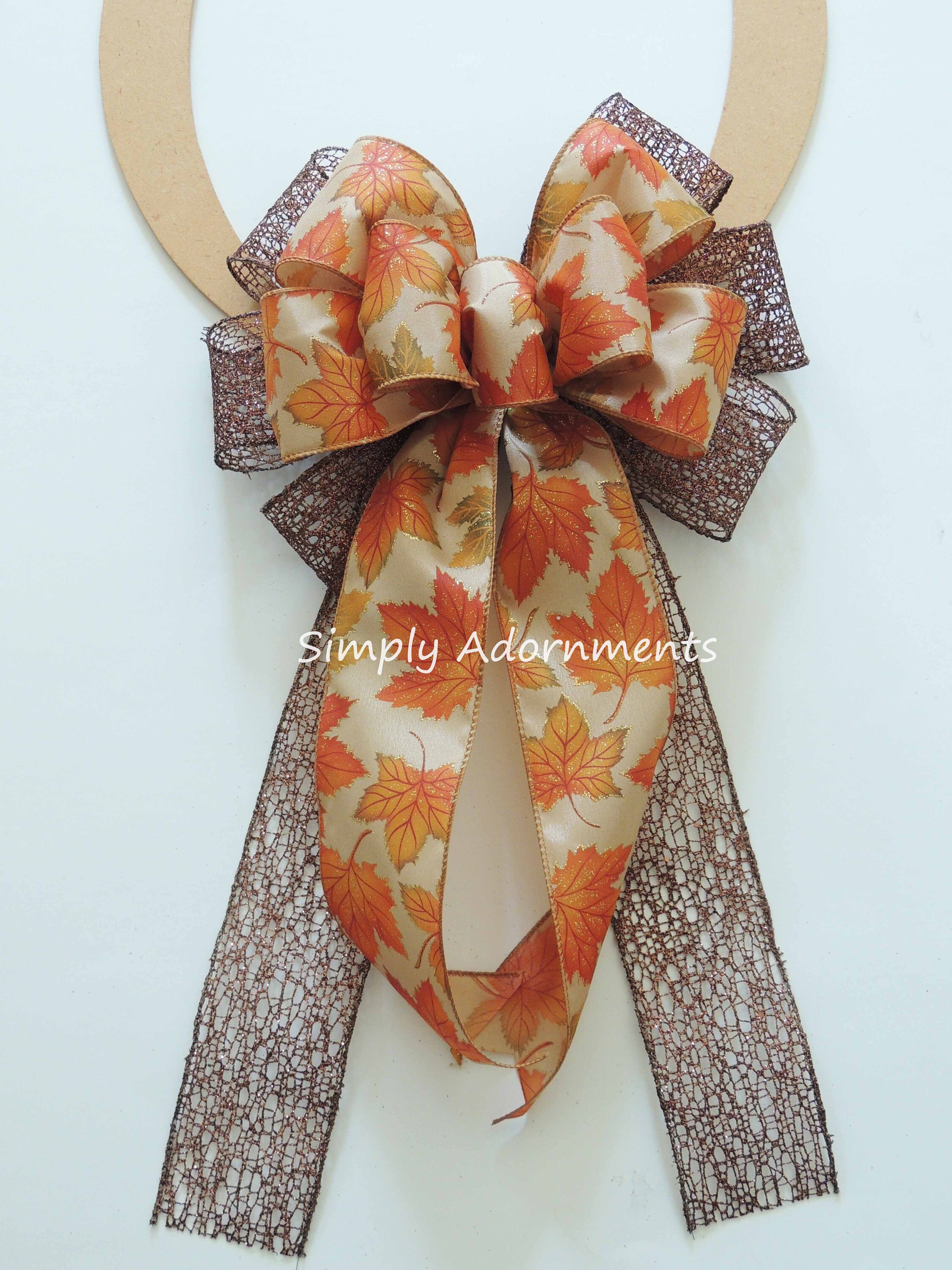 Autumn Leaves Bow, Thanksgiving Wreath Bow, Rustic Fall Leaves pew Bow, Fall Autumn Leaves Door bow, Fall Leave Wreath Bow, Autumn door bow
