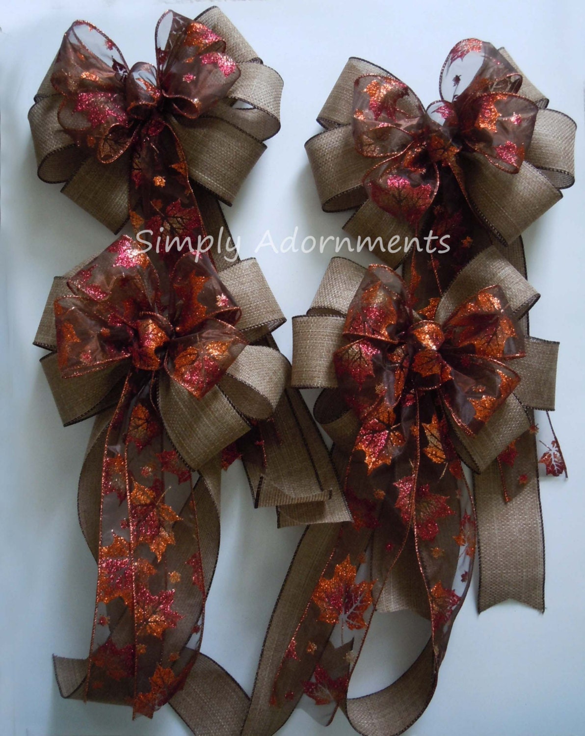 This beautiful bow would add an awesome touch to decorate at any fall wedding, parties, receptions, church pews, fall home decor, etc.