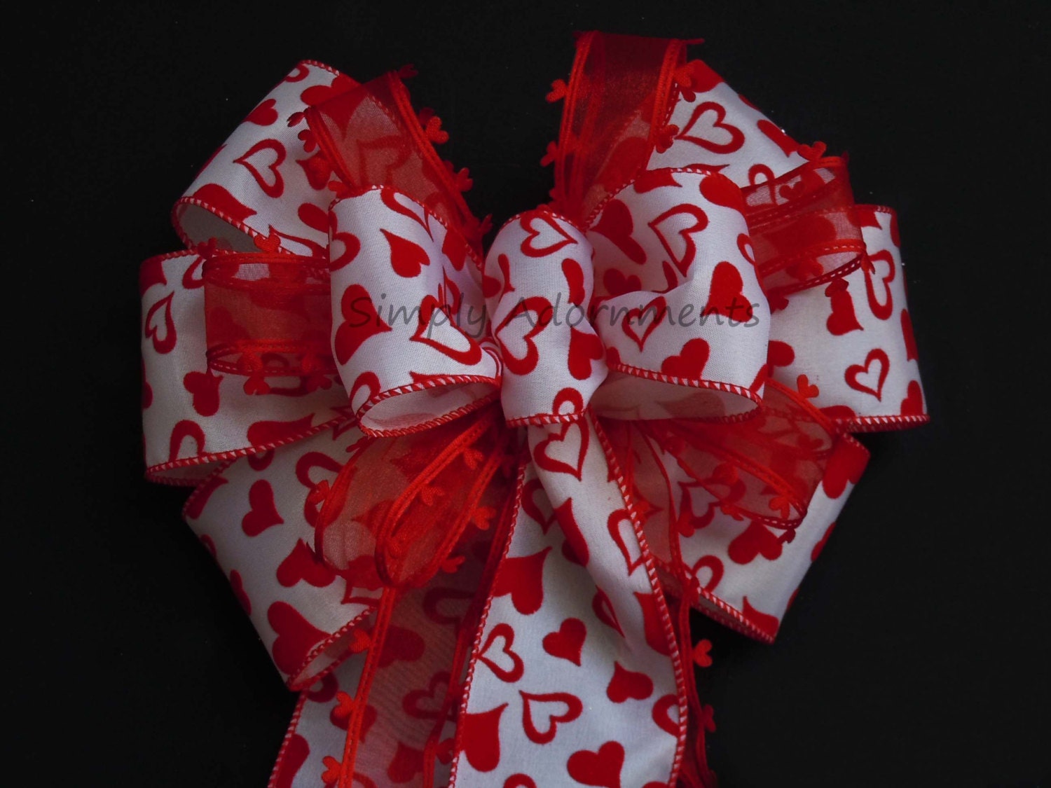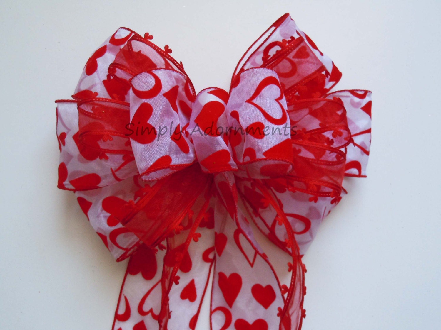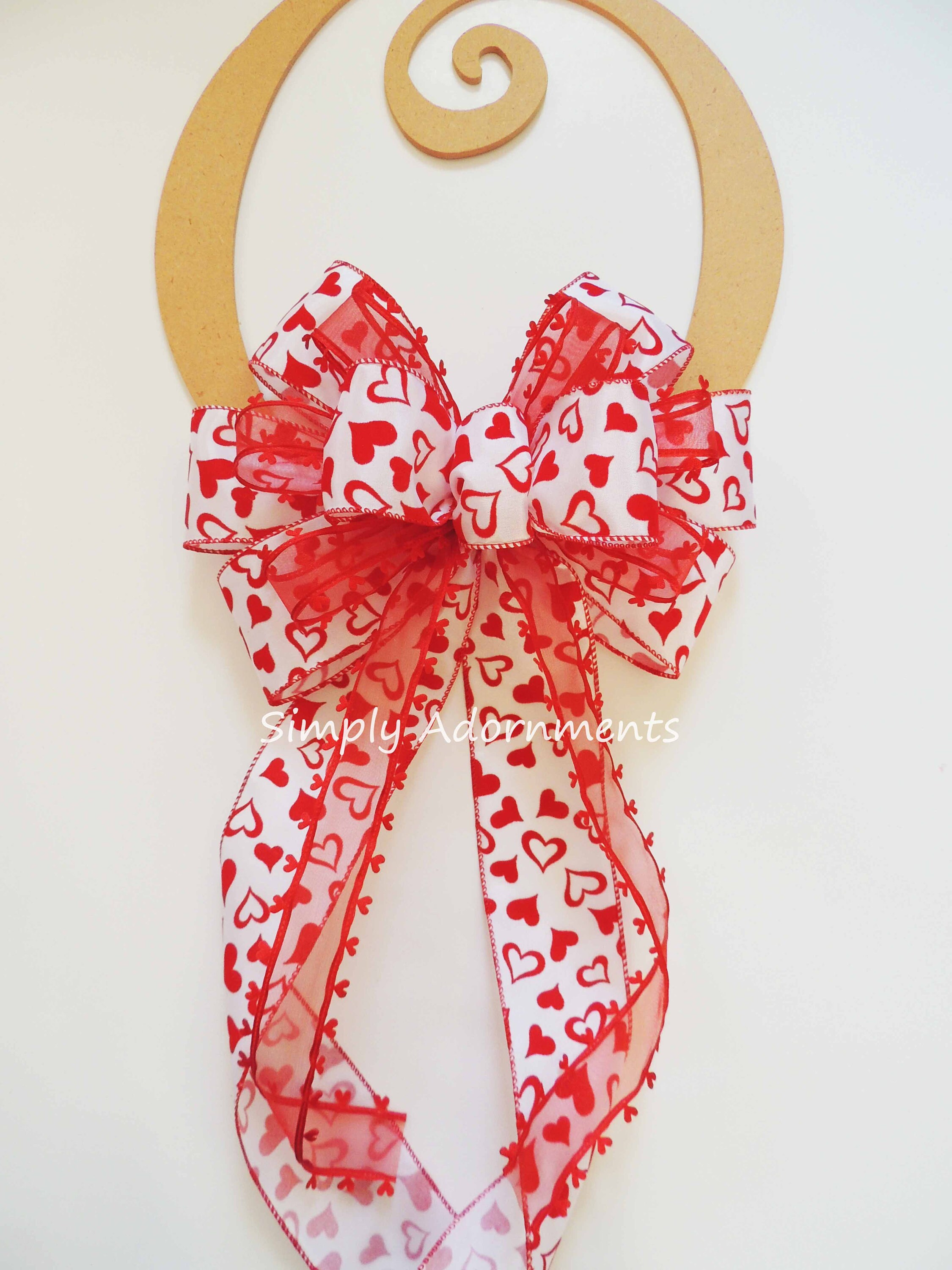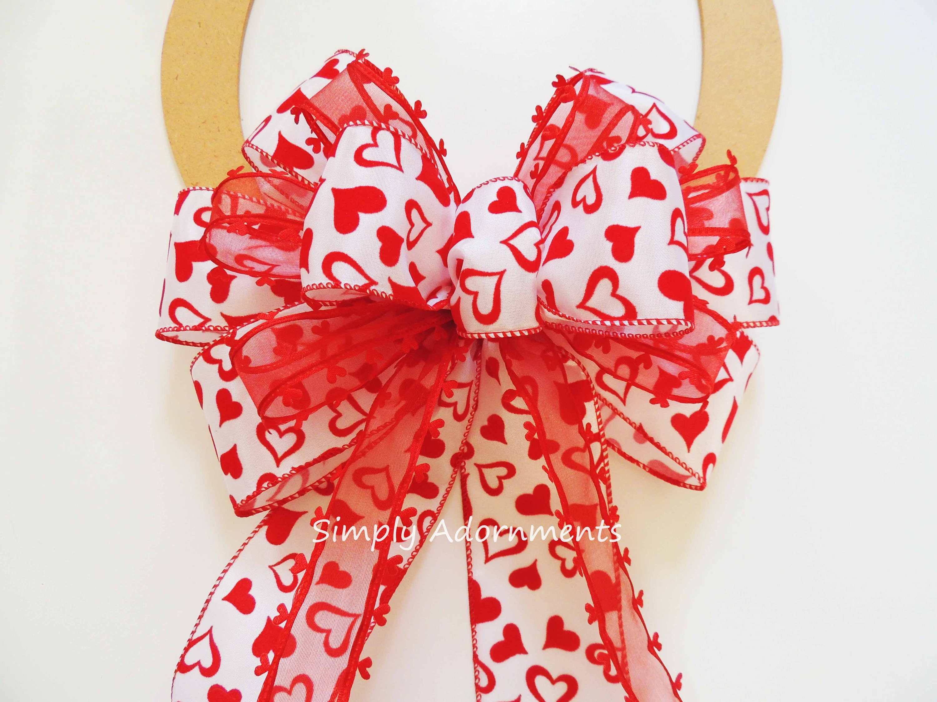 Valentine Christmas Tree Topper bow Bright Red Heart Valentines Christmas Wreath Bow Valentine Red Hearts Wedding Pew Bow Valentine Gift Bow.