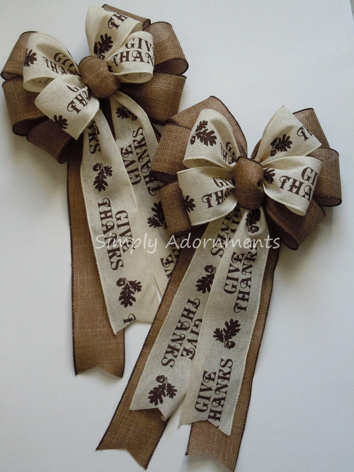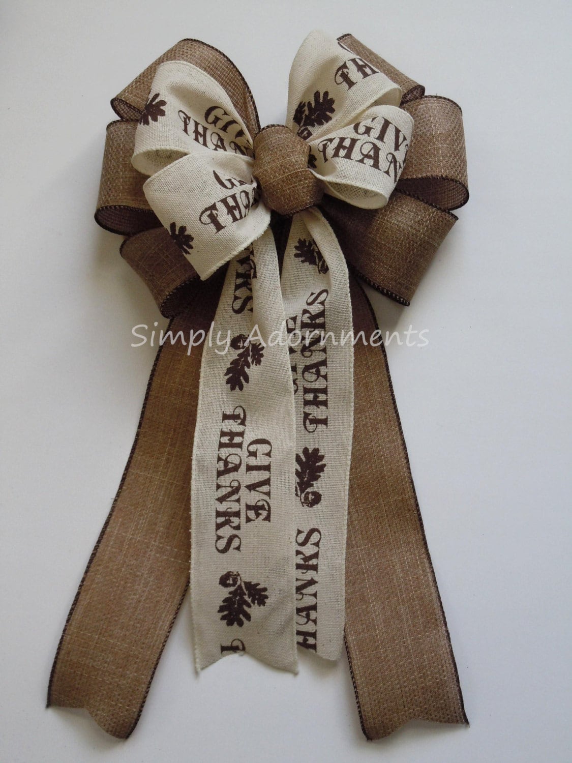 Fall Leaves Burlap Bow, Give Thanks Scripts Bow, Fall Acorn Oak Leaf Bow, Farmhouse burlap Fall bow, Thanksgiving Wreath bow, Fall Door Bow.