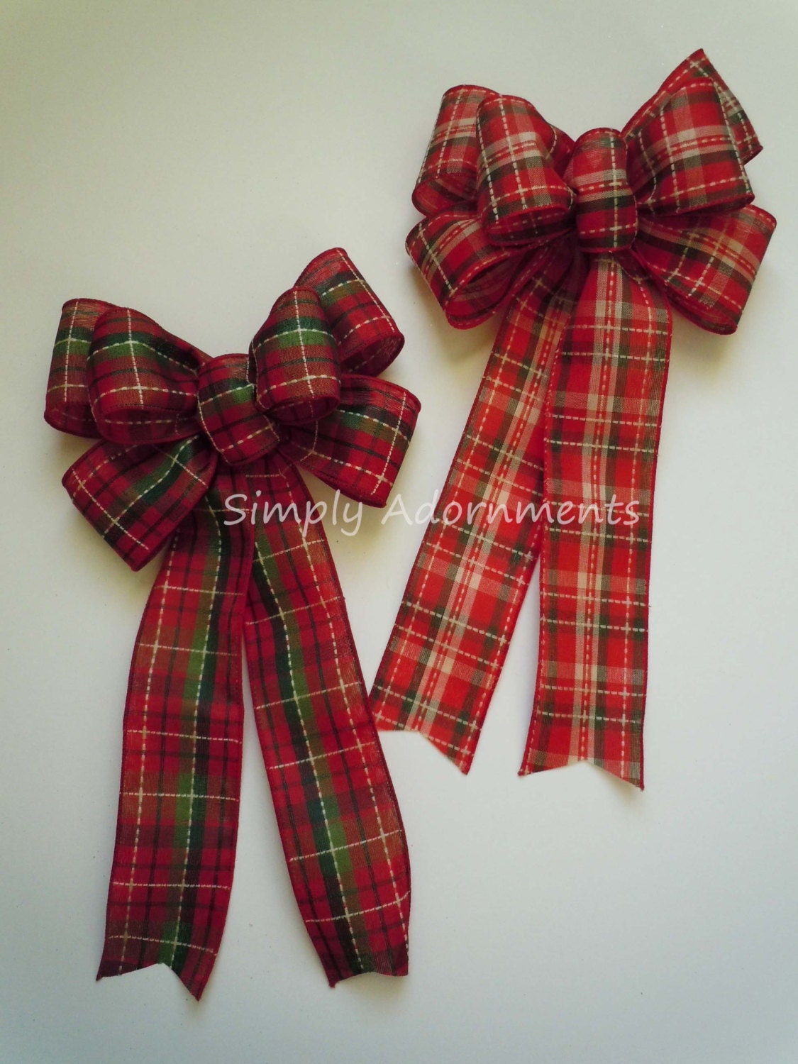 Farmhouse Christmas bow, Christmas plaid Wreath Bow, Country Plaid Christmas Bow, Red Green Vintage Christmas Plaid Bow, Holidays Plaid Bow