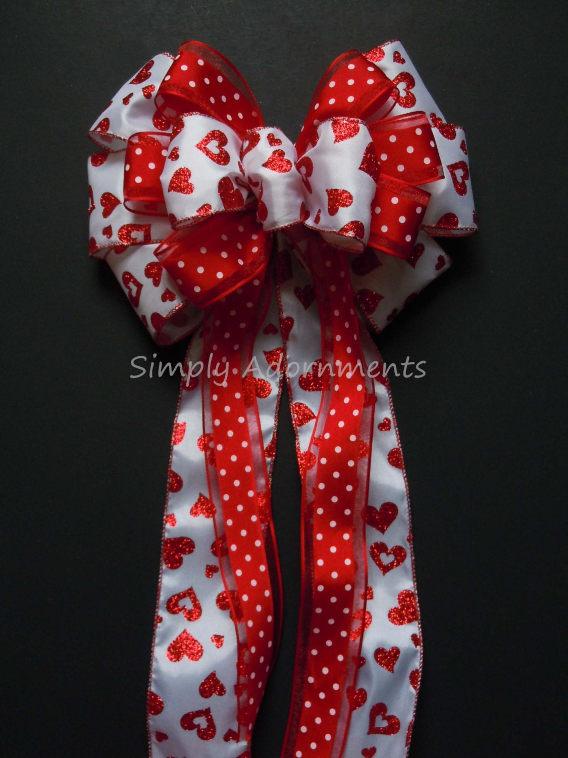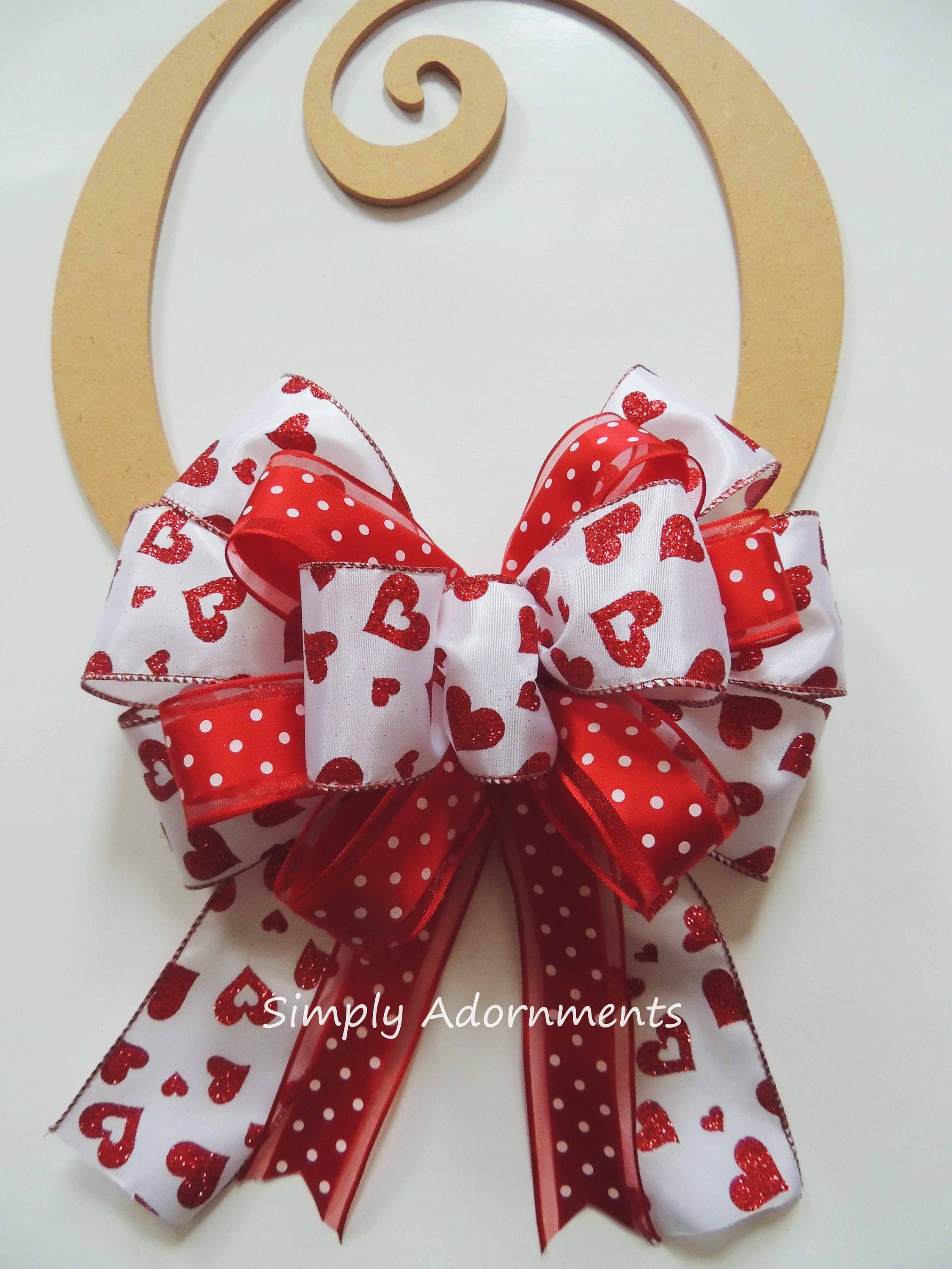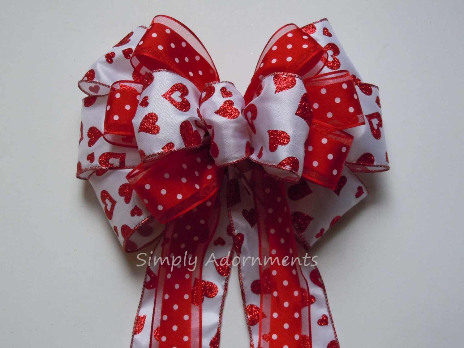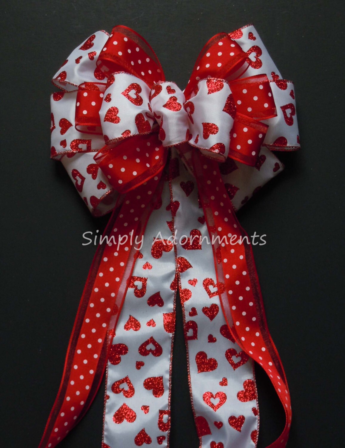 Valentine Red Heart Bow, Red Heart Wreath bow, Glitter Red Heart Valentine Bow, Red Valentine Heart Wreath Bow, Red Valentine Gift Bow.