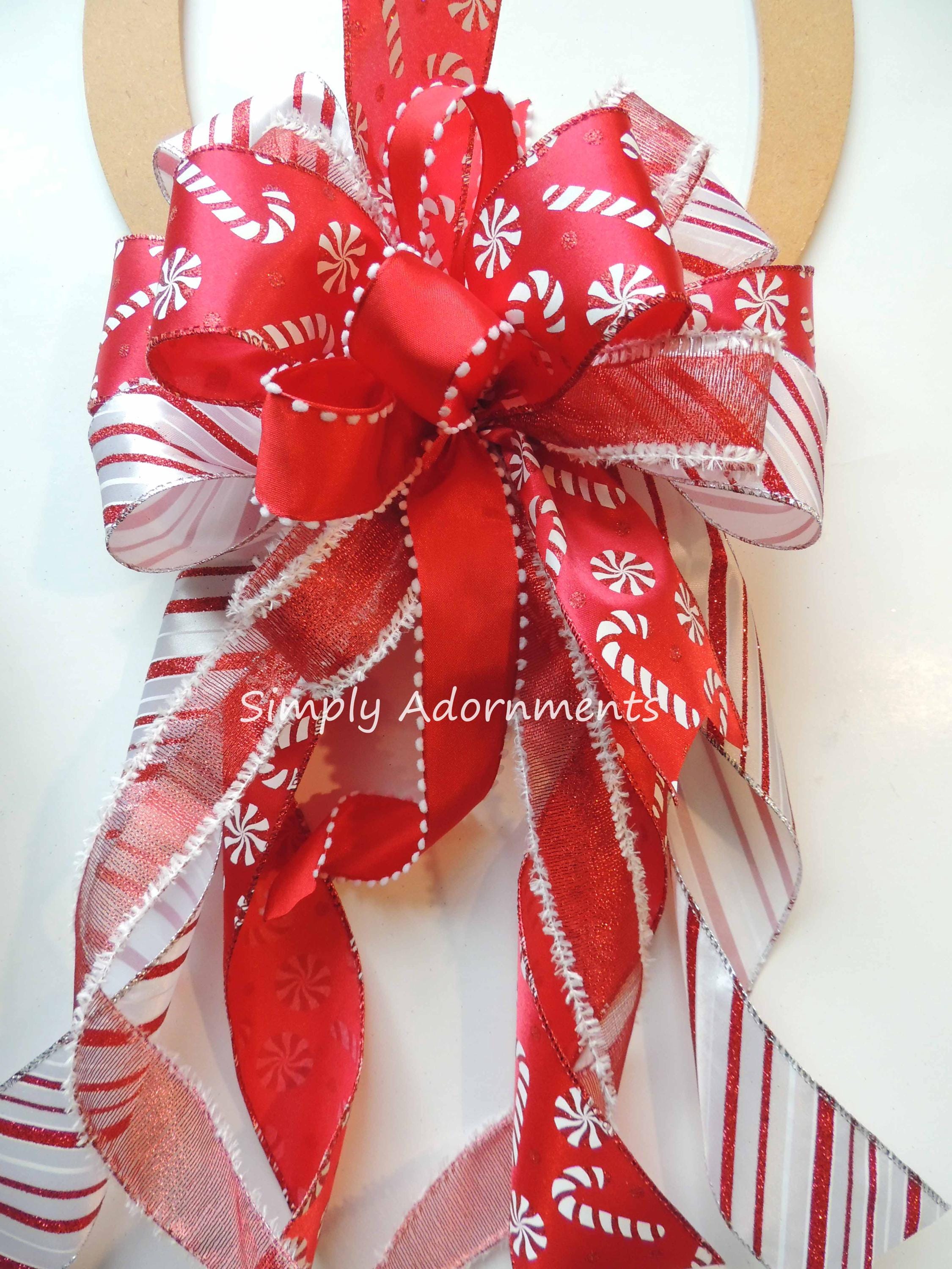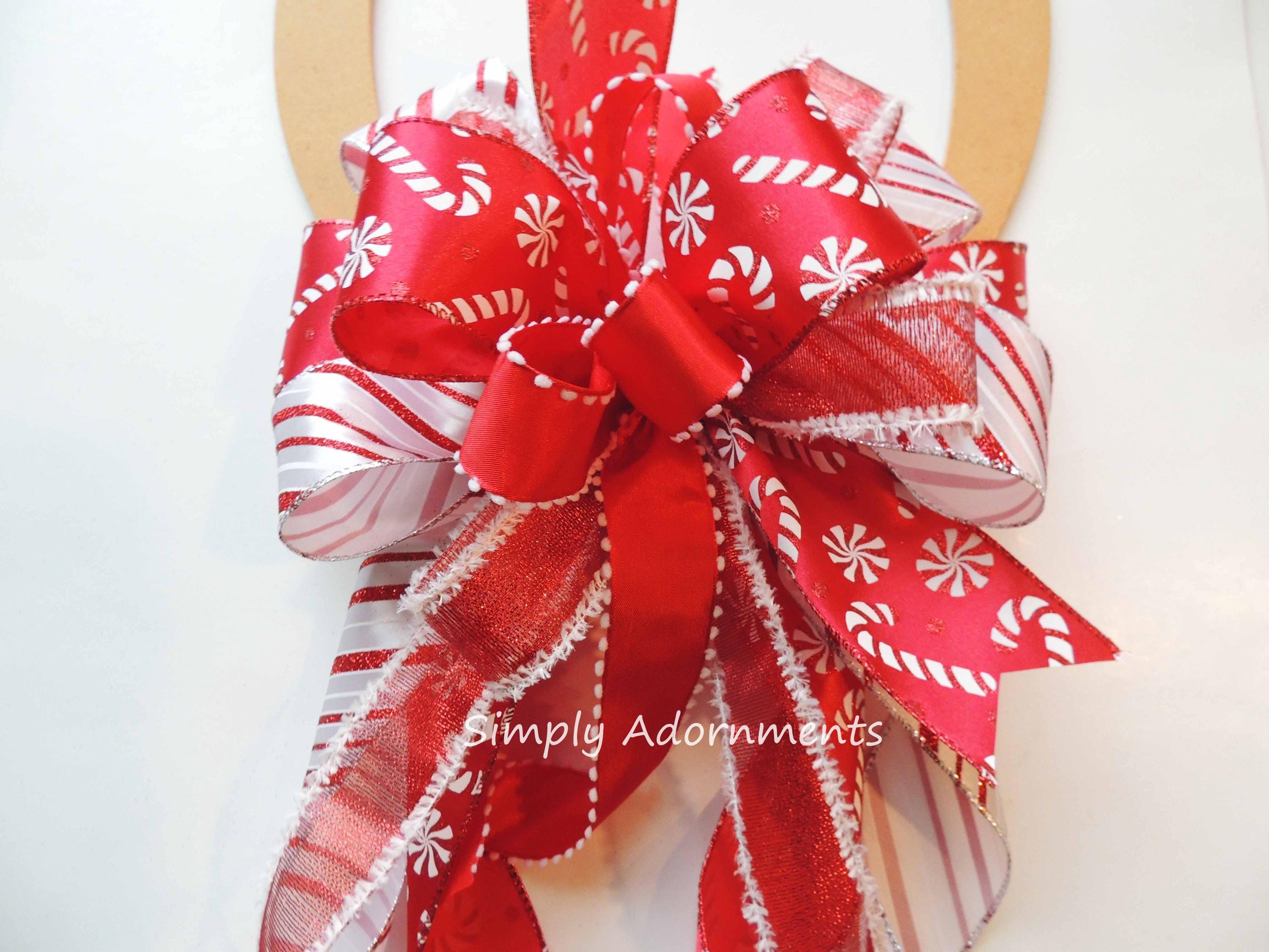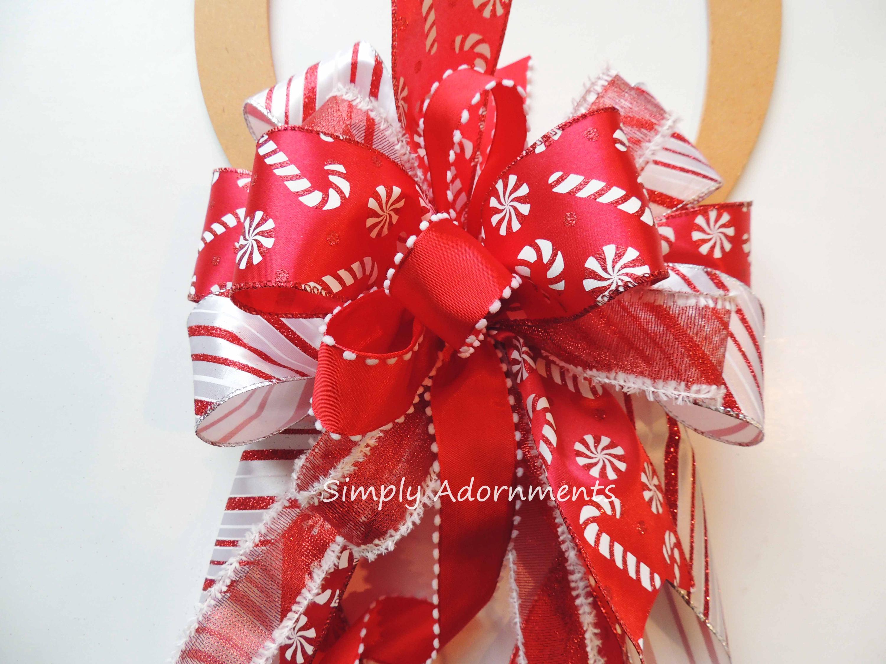 Christmas Candy Bow, Candy Cane Tree Topper, Red Christmas Wreath Bow, Christmas Tree Topper Bow, Red Mint Christmas Lantern Bow