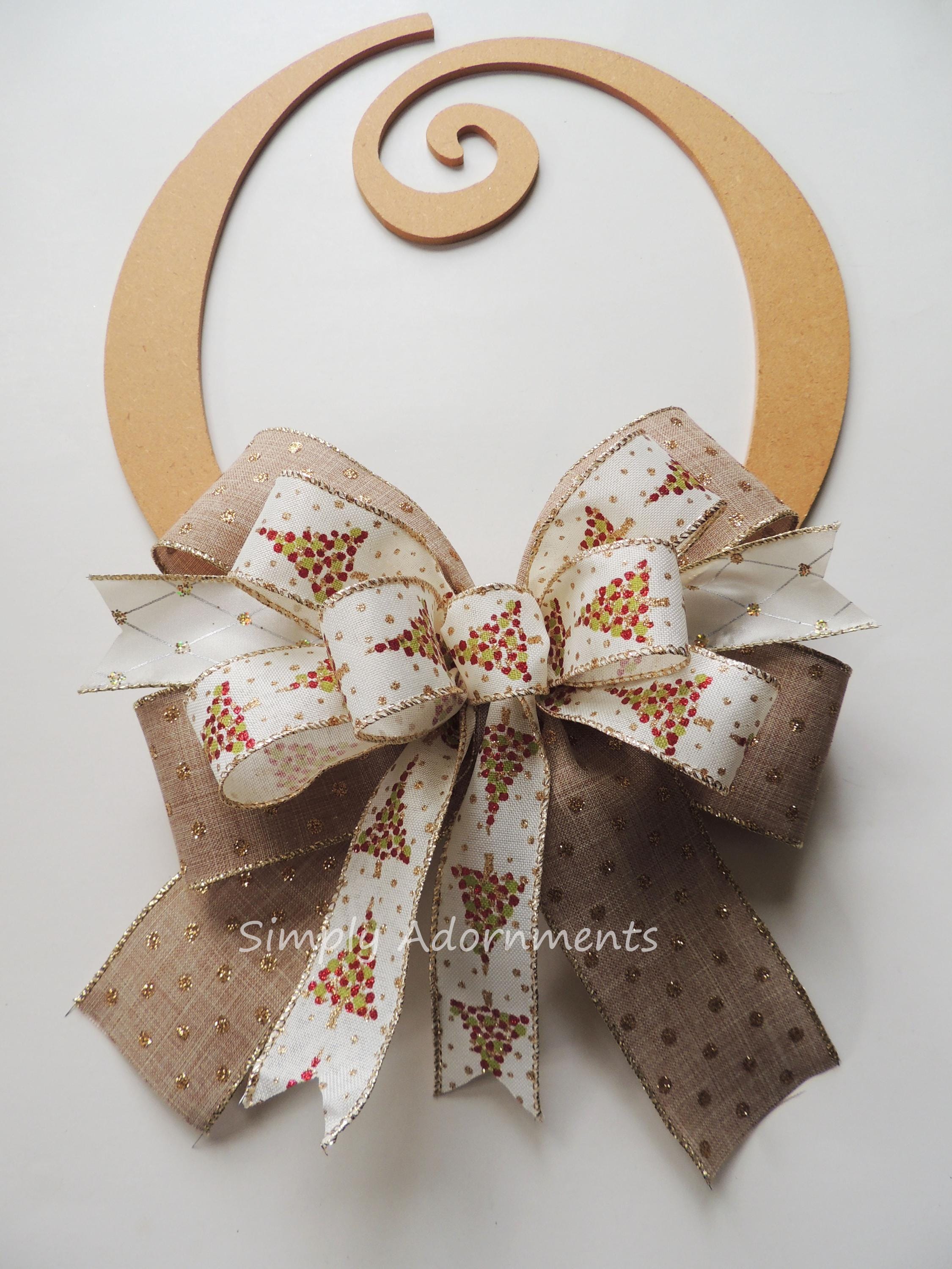 This rustic Neutral ribbon bow is created with two 1.5" wide and one 2.5" wired ribbons. Please select the bow size option before checking out.