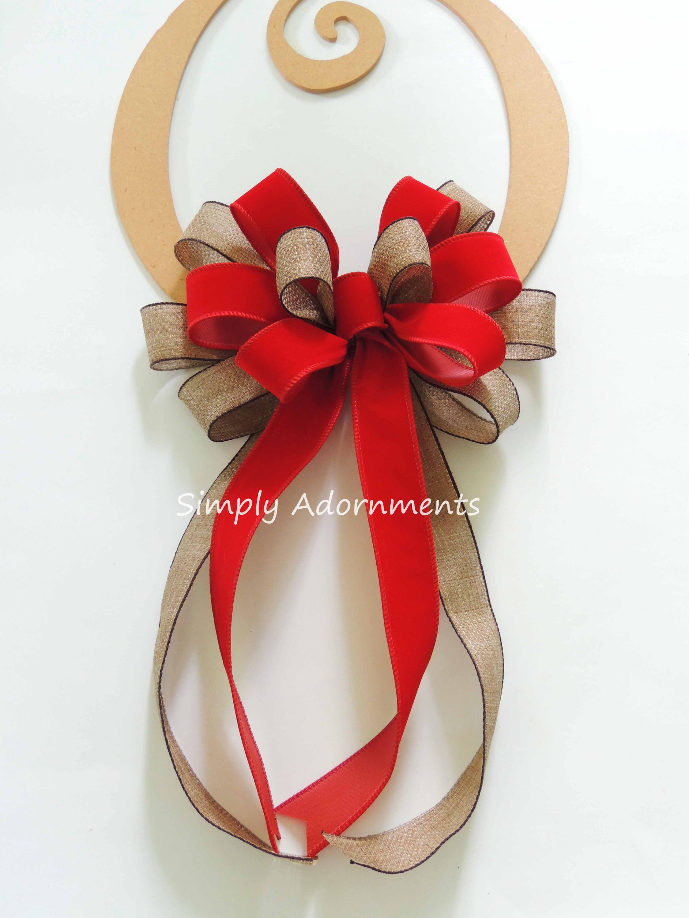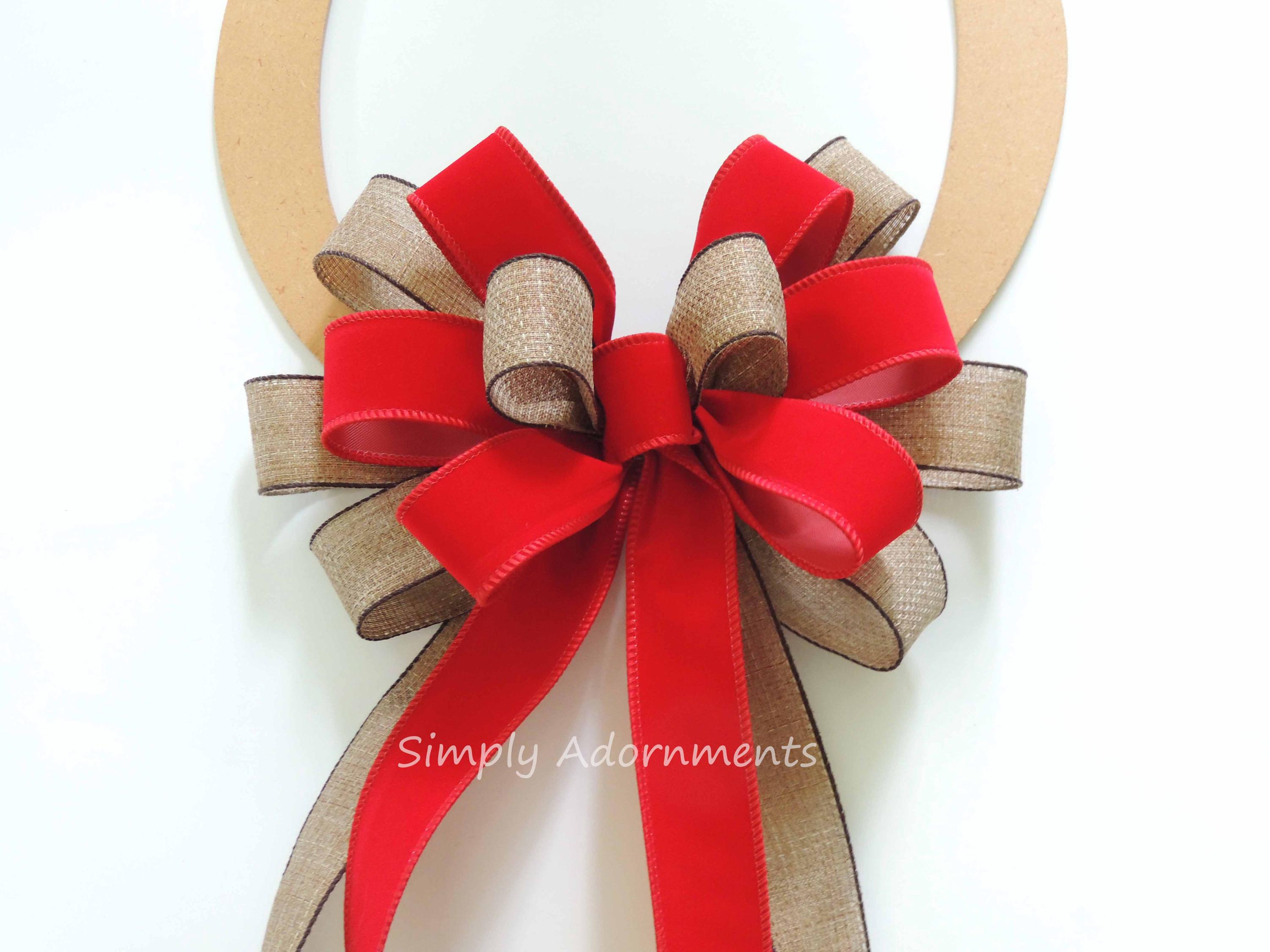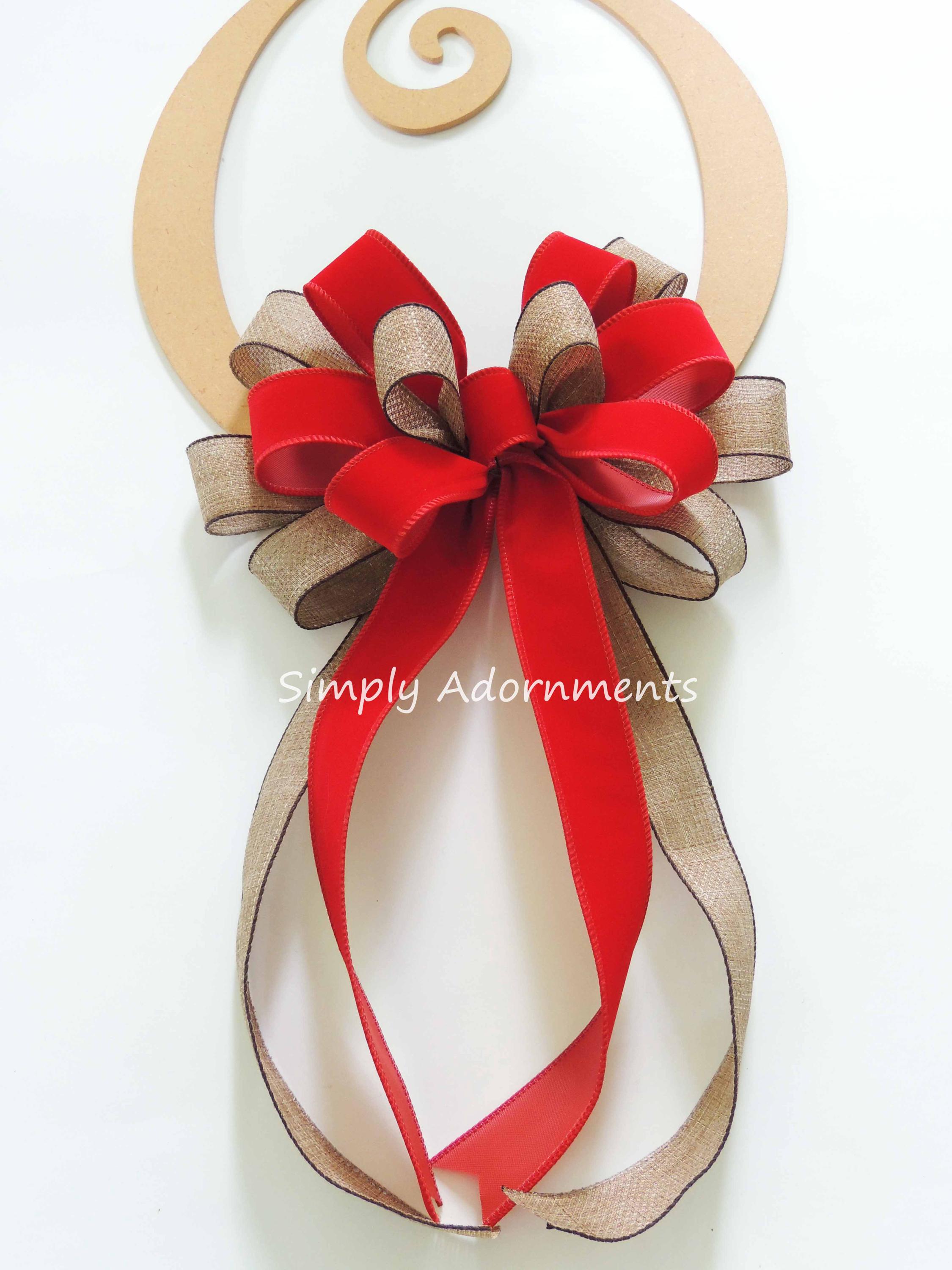Red Velvet Christmas Bow, Velvet Burlap Wreath bow, Candy Cane Bow, Ho Ho Bow, Lamp Post Accent, Mailbox Decor
