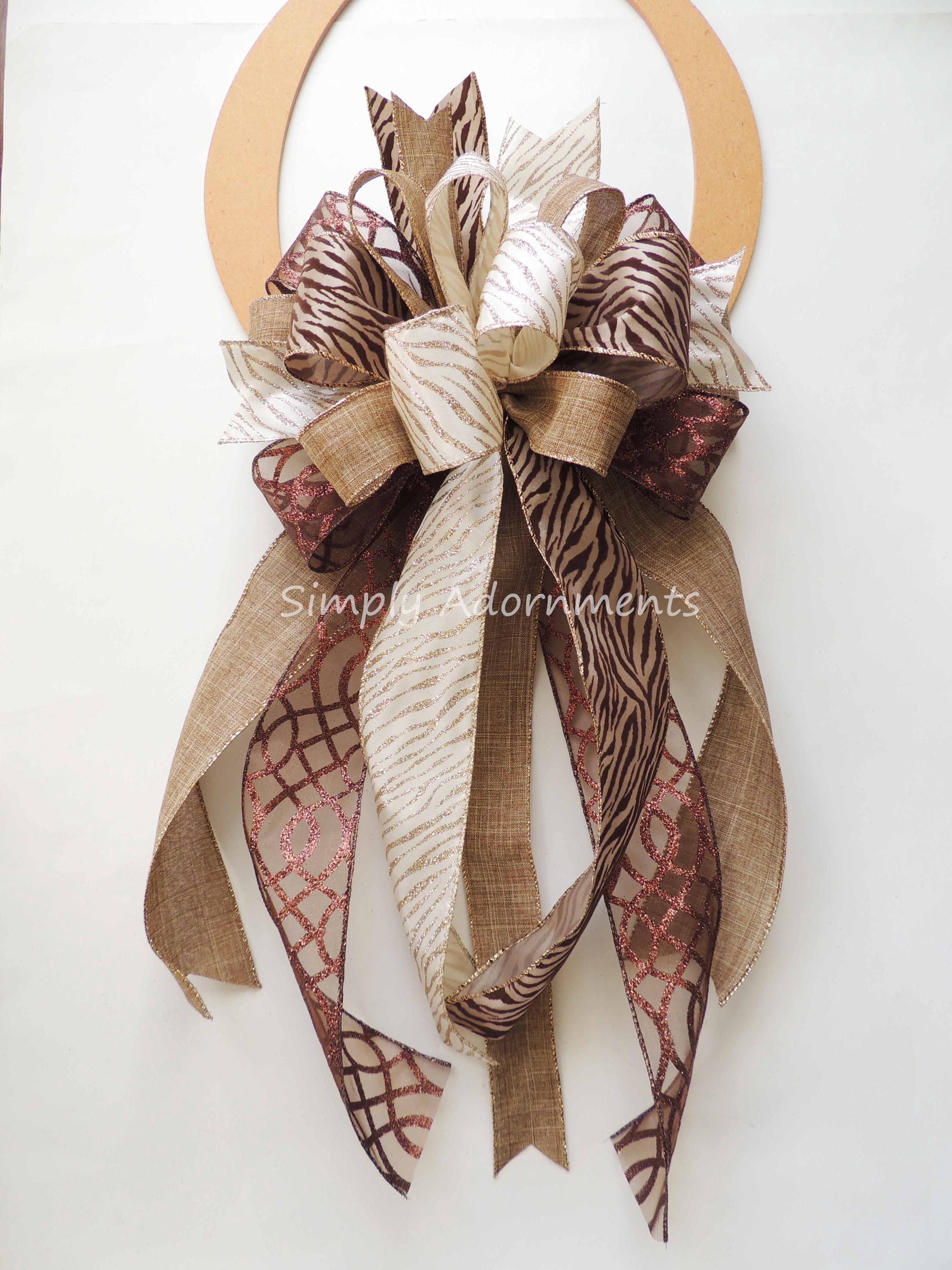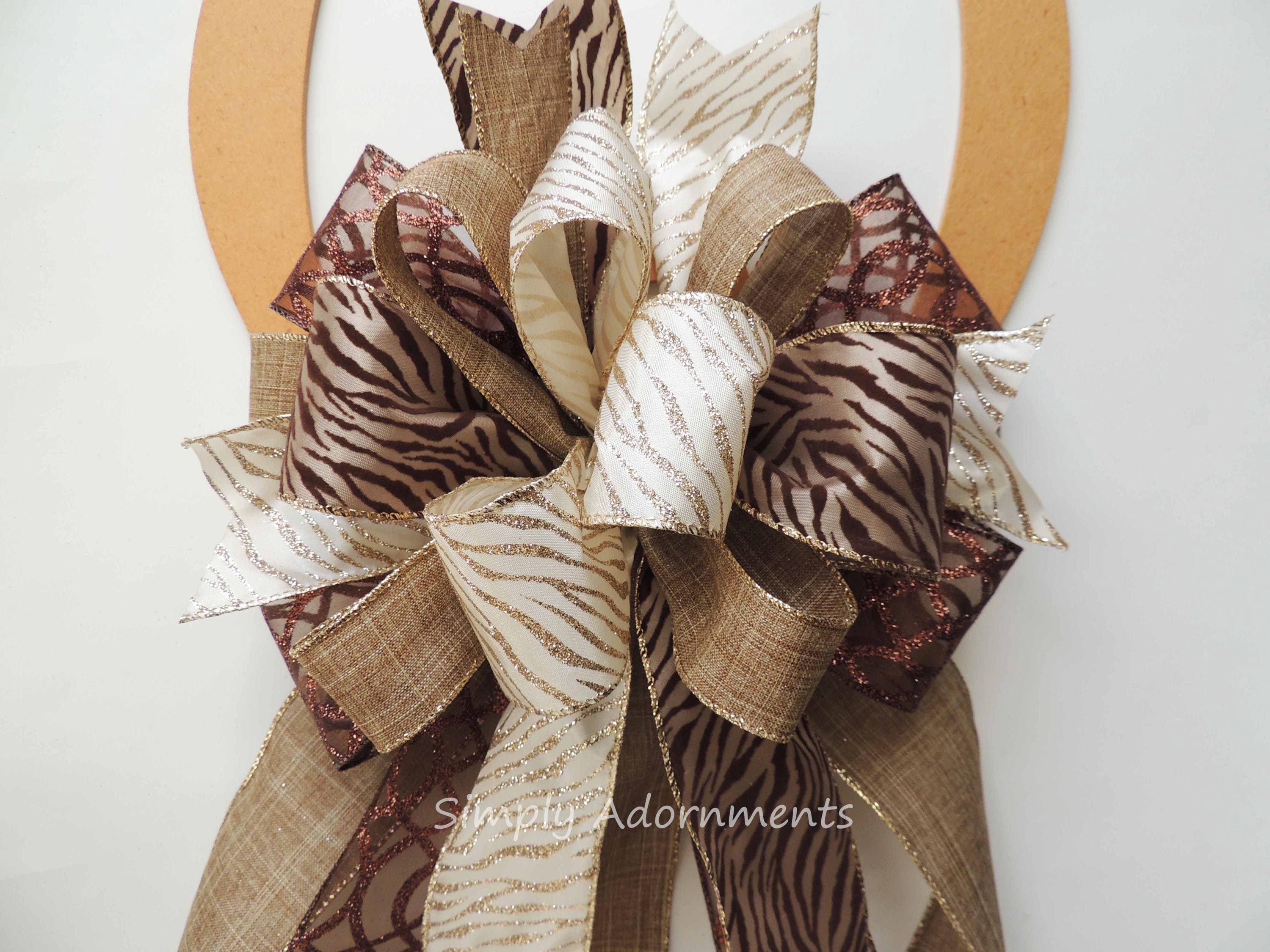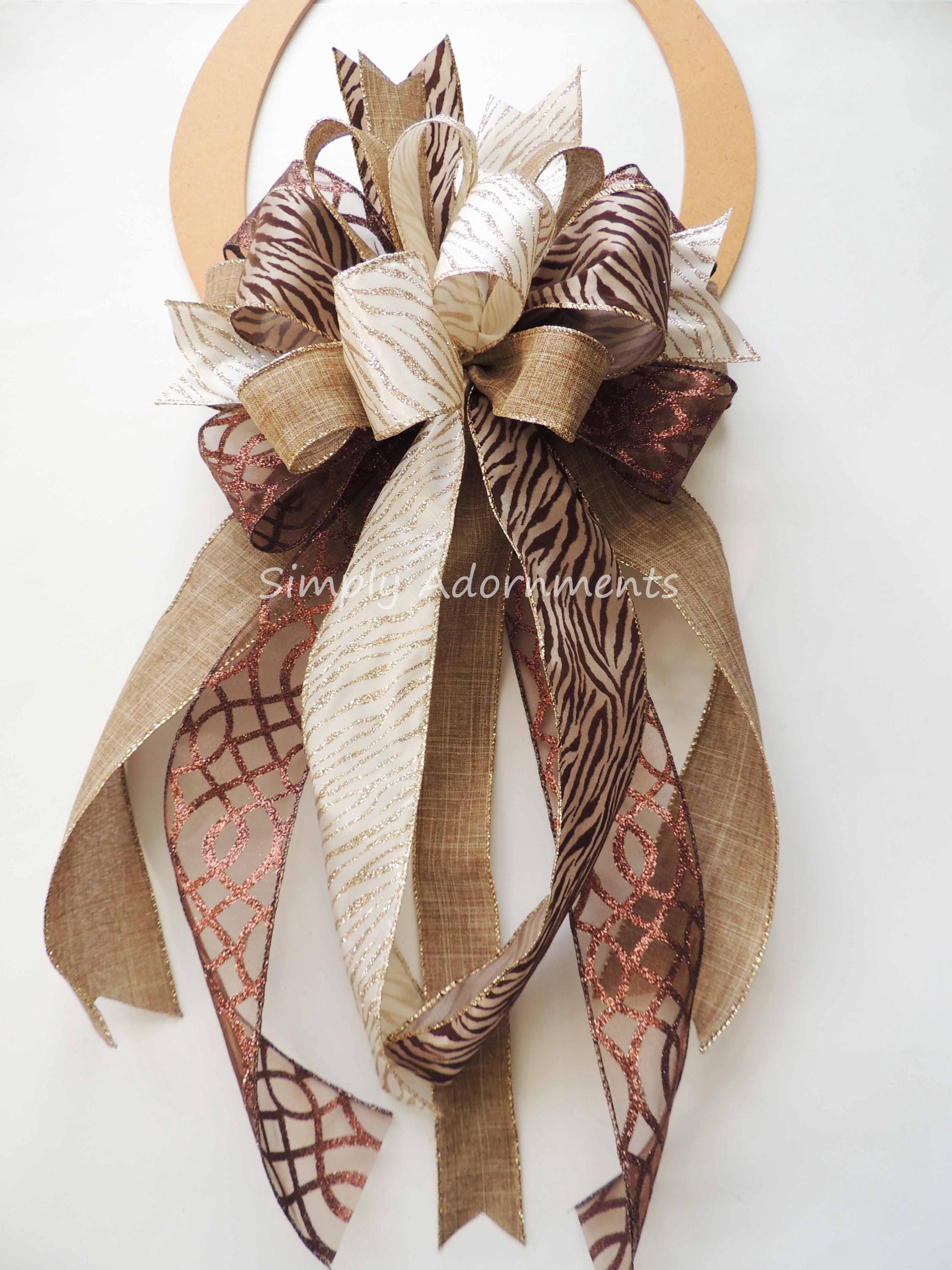Zebra Christmas Bow, Brown Tan Safari Christmas Decor, Christmas Animal Tree topper, Wreath bow