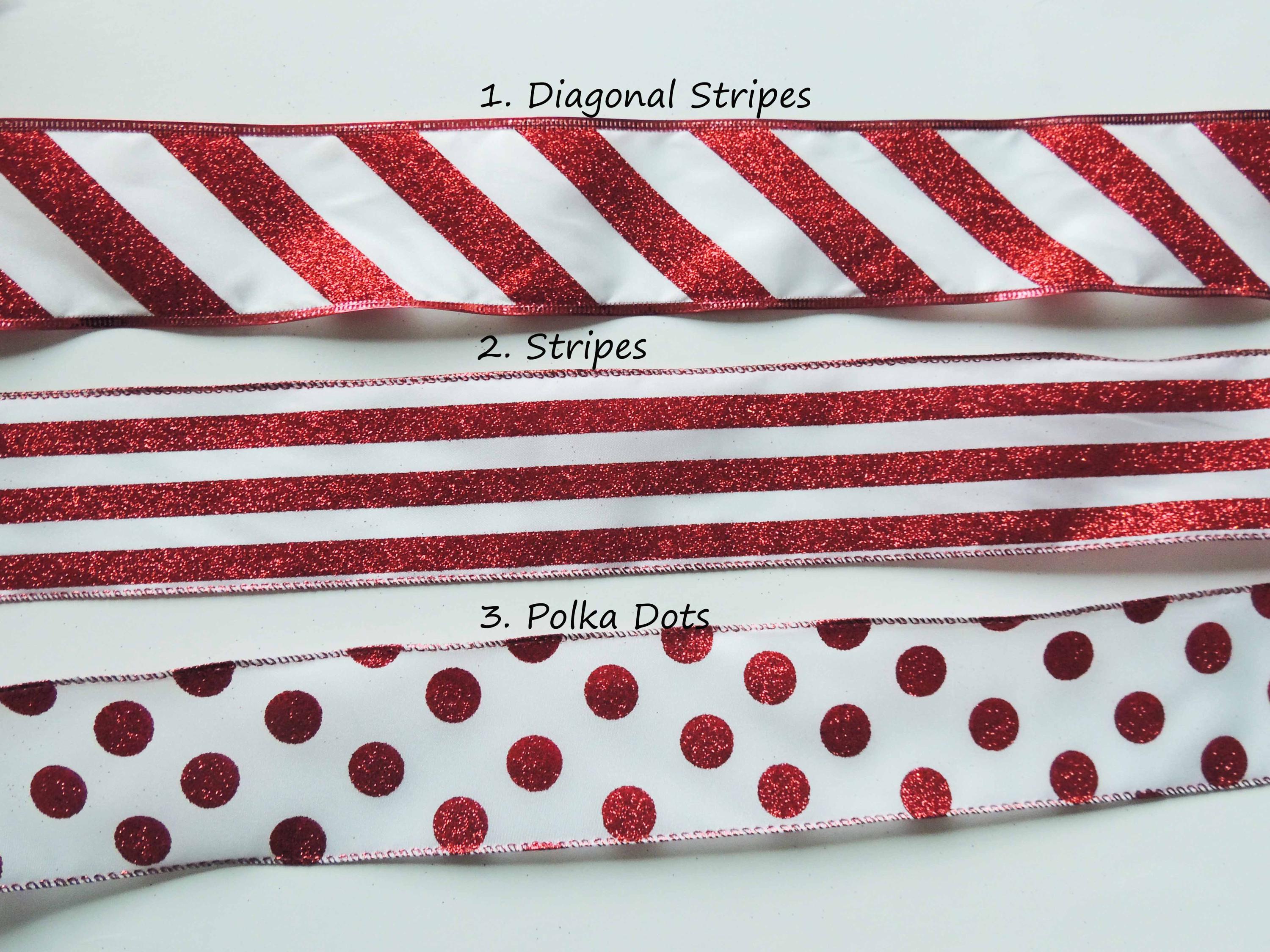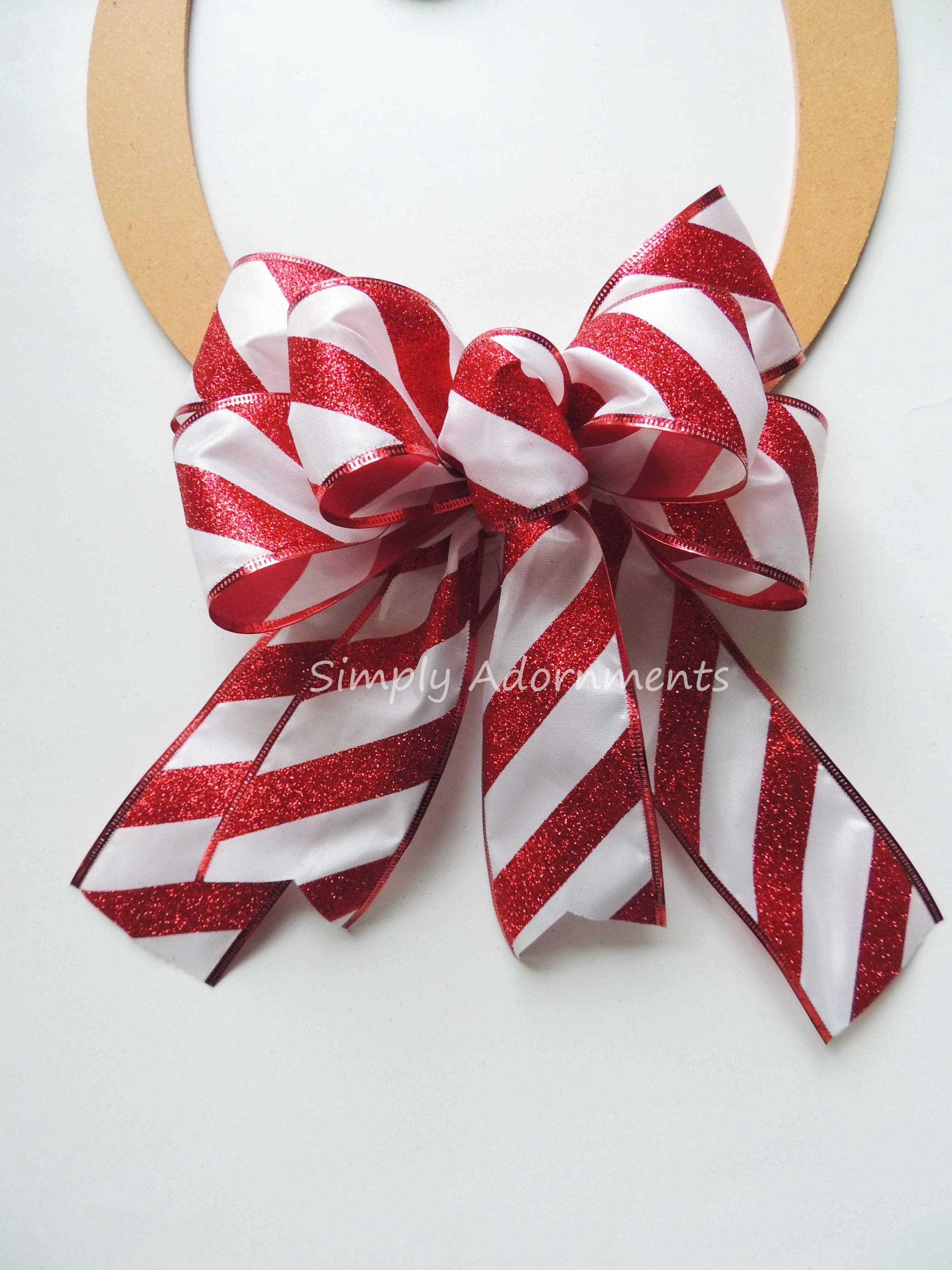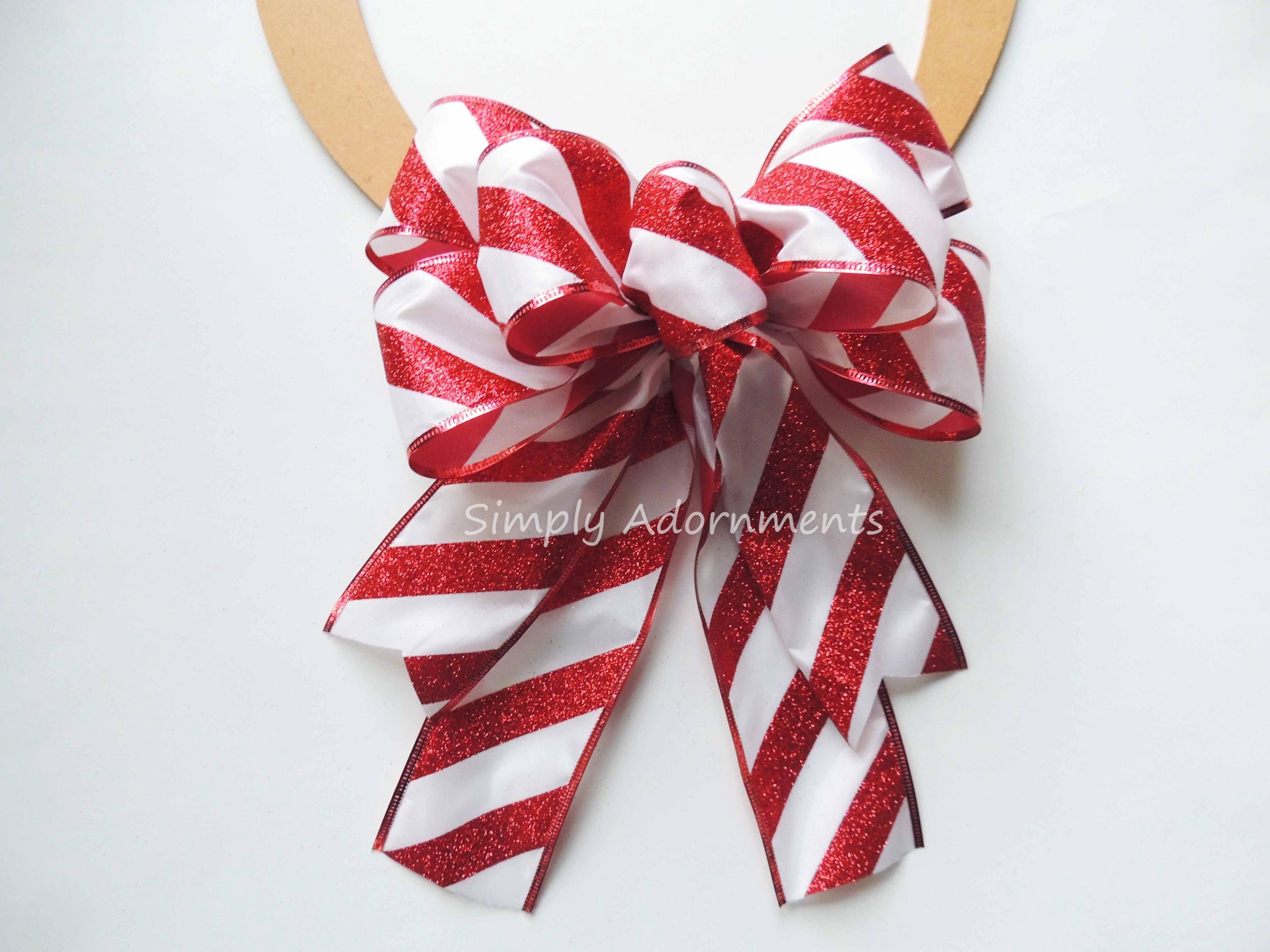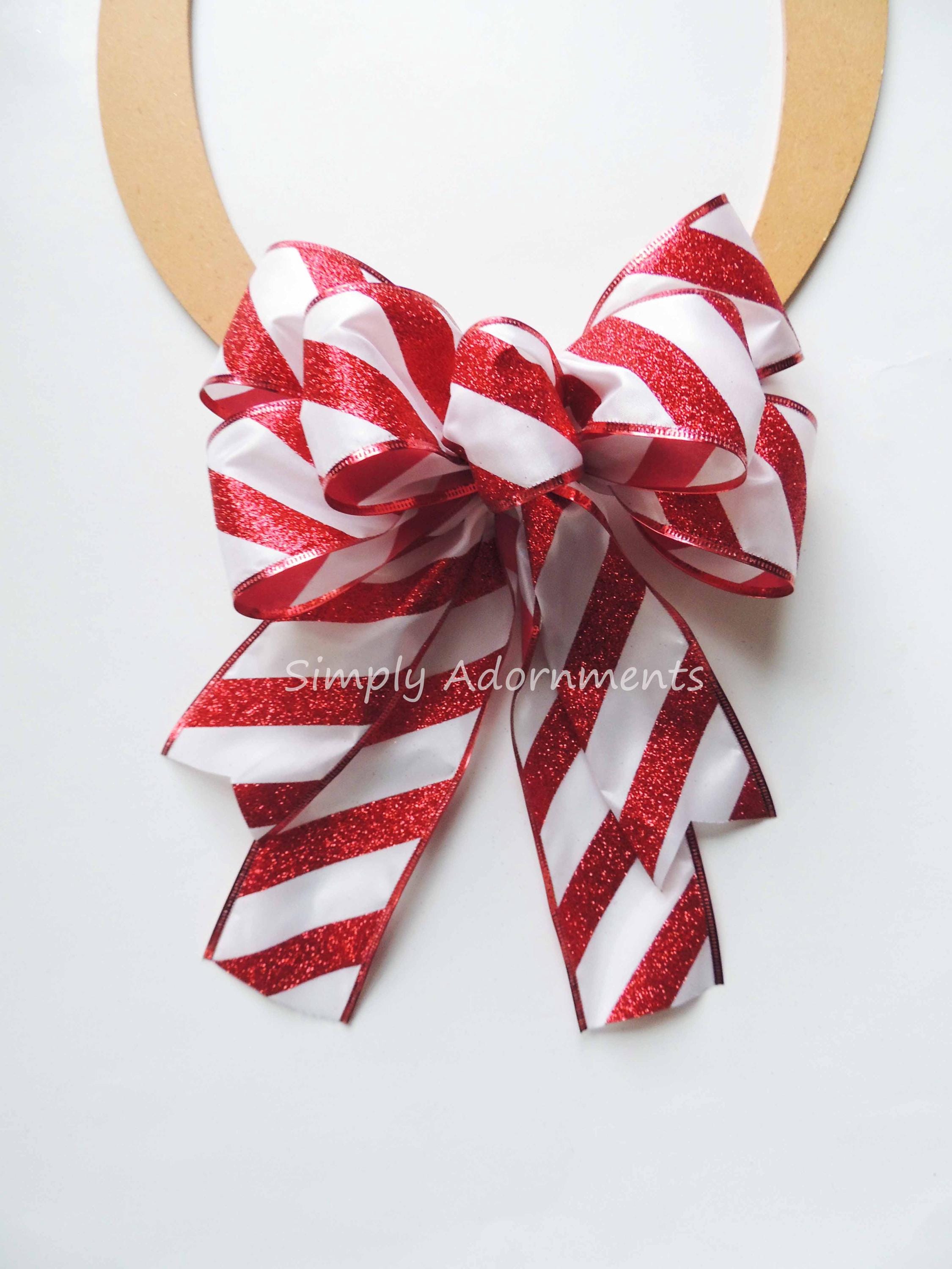 Traditional Candy Cane Christmas Bow, Wreath Decor, Red white Diagonal striped bow, Tree topper, Xmas gift bow