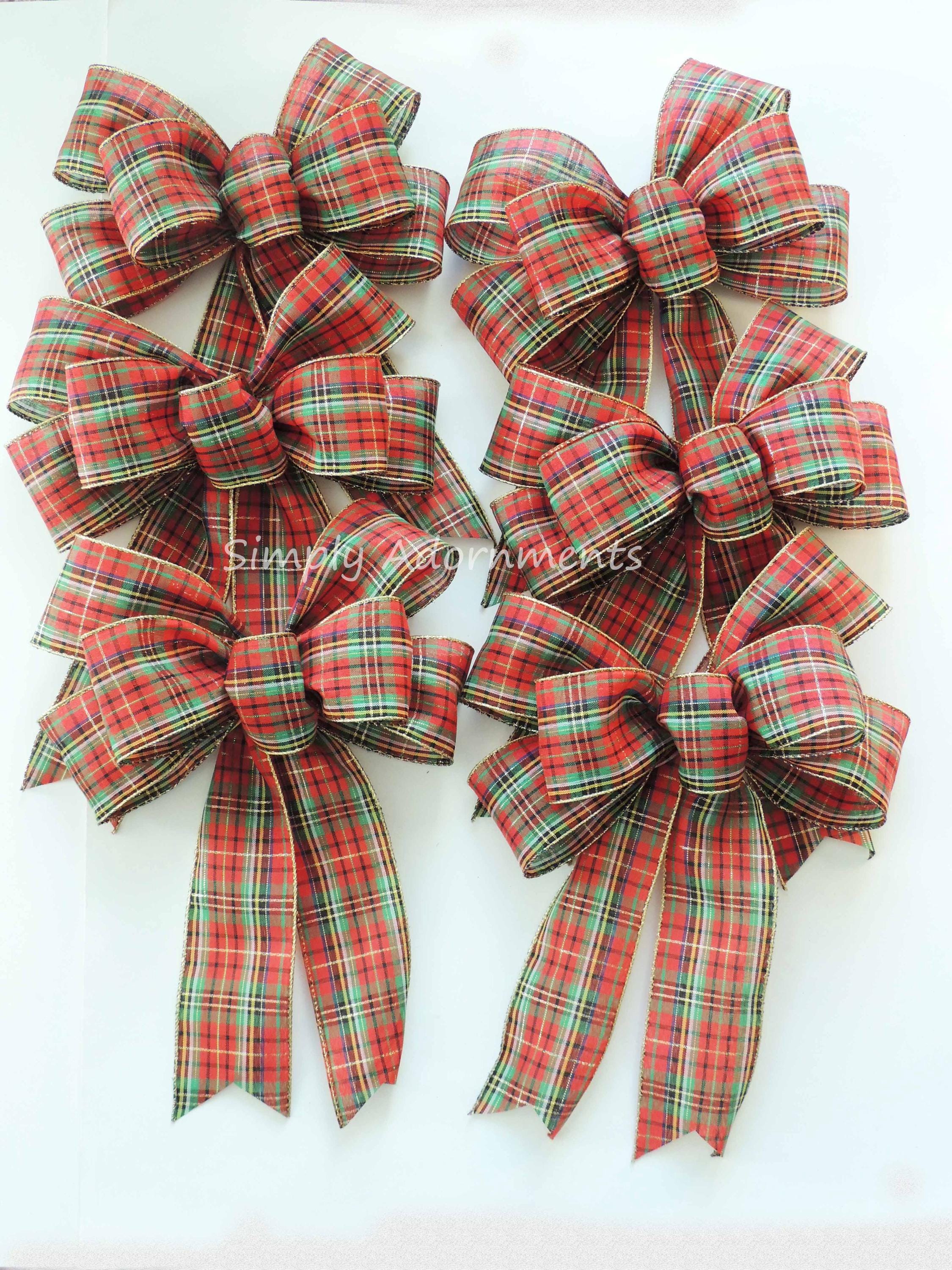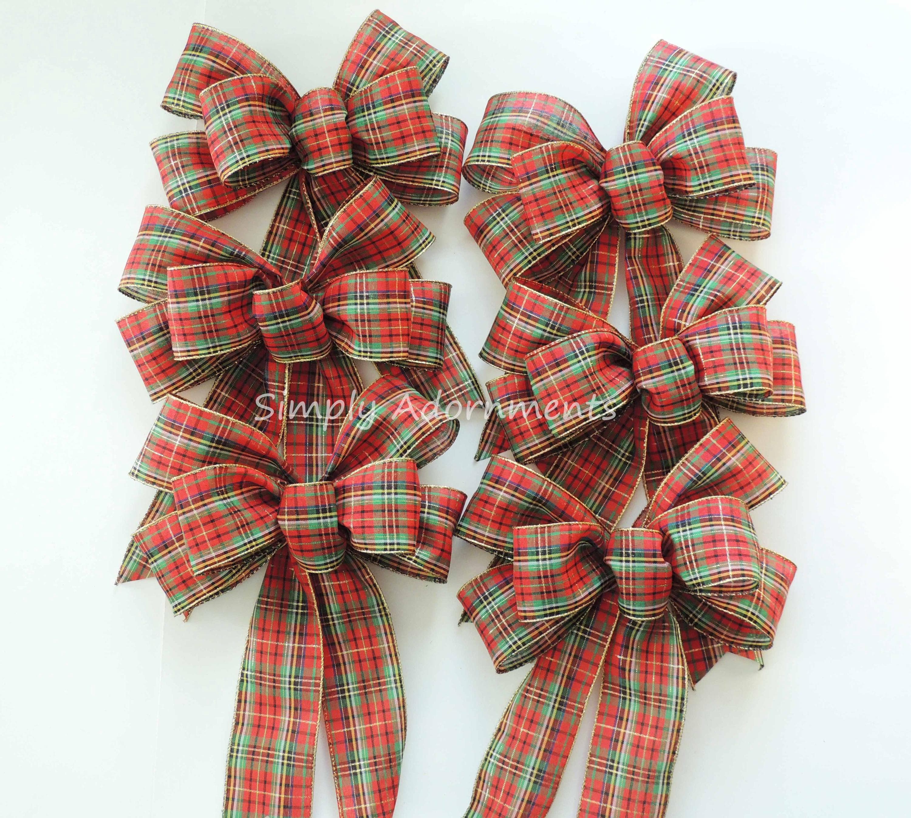 Set of 6 Christmas Plaid Bow, Christmas Door bow, Tartan Christmas Bow, Christmas Plaid Bow, Plaid Wreath Bow, Holidays Plaid Swag Bow