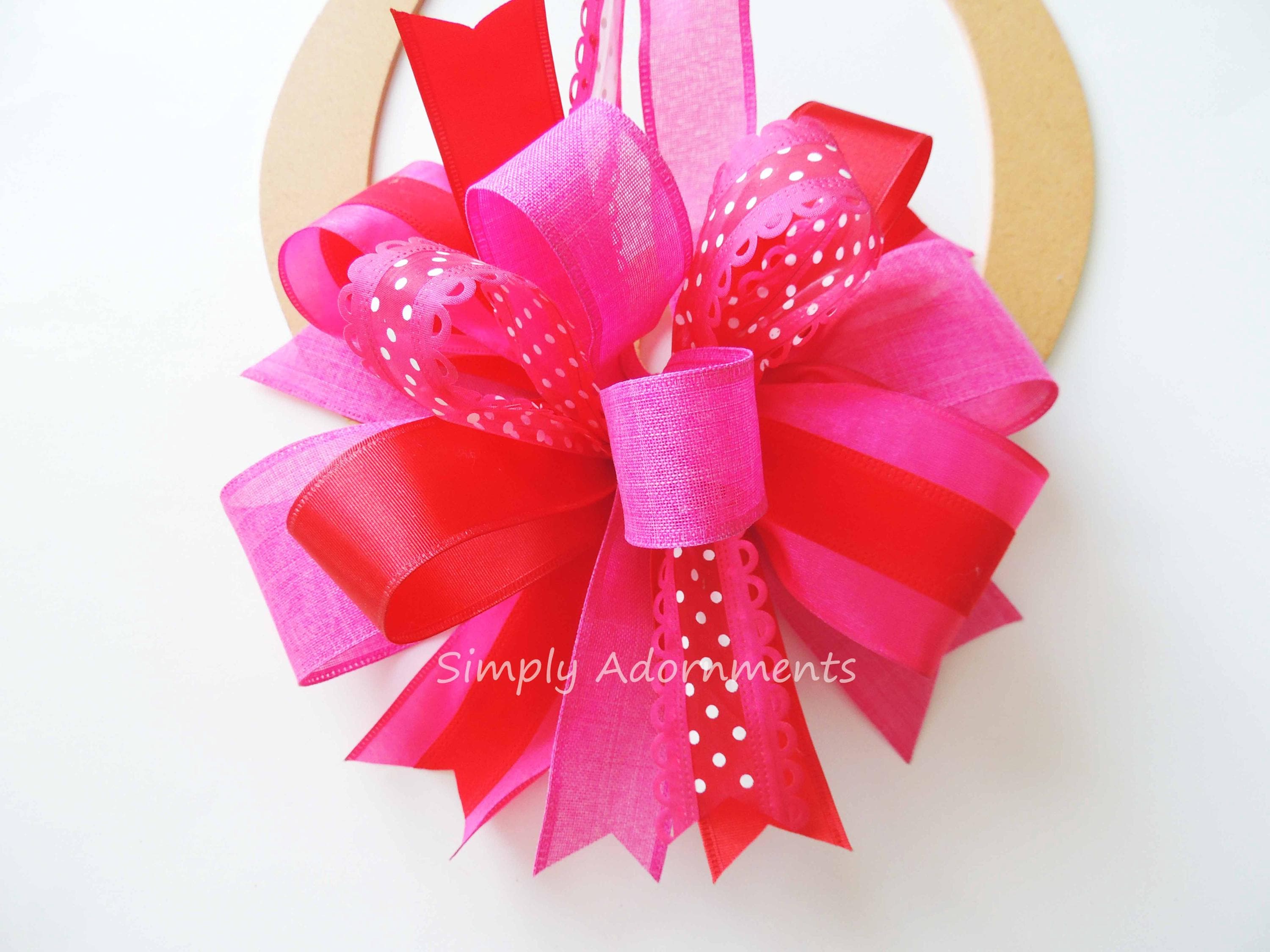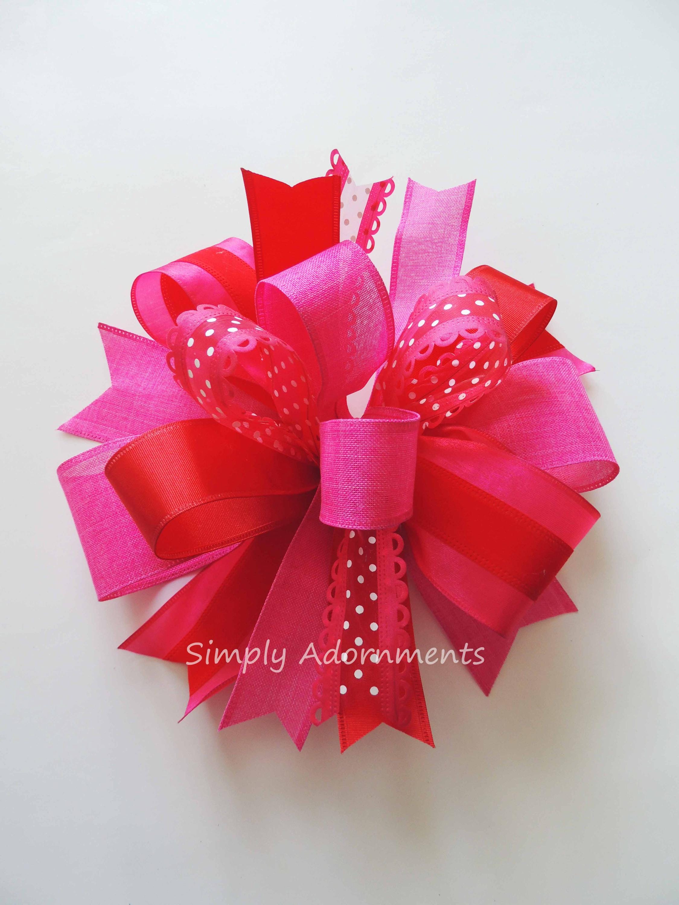 Valentines Day Bow, Red and Pink Bow, Valentines Decor Bow, Lantern Bow, Door Hanger Bow, Wreath Embellishment, Gift bow